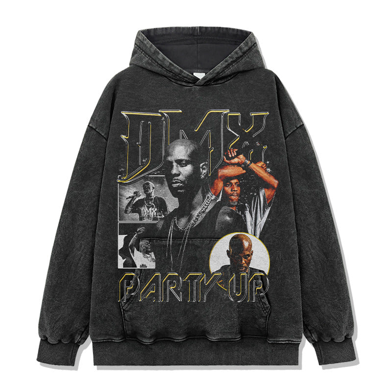 DMX Earl Simmons Printed Short Sleeve T-Shirt Washed Long Sleeve Loose Casual Hooded Sweater