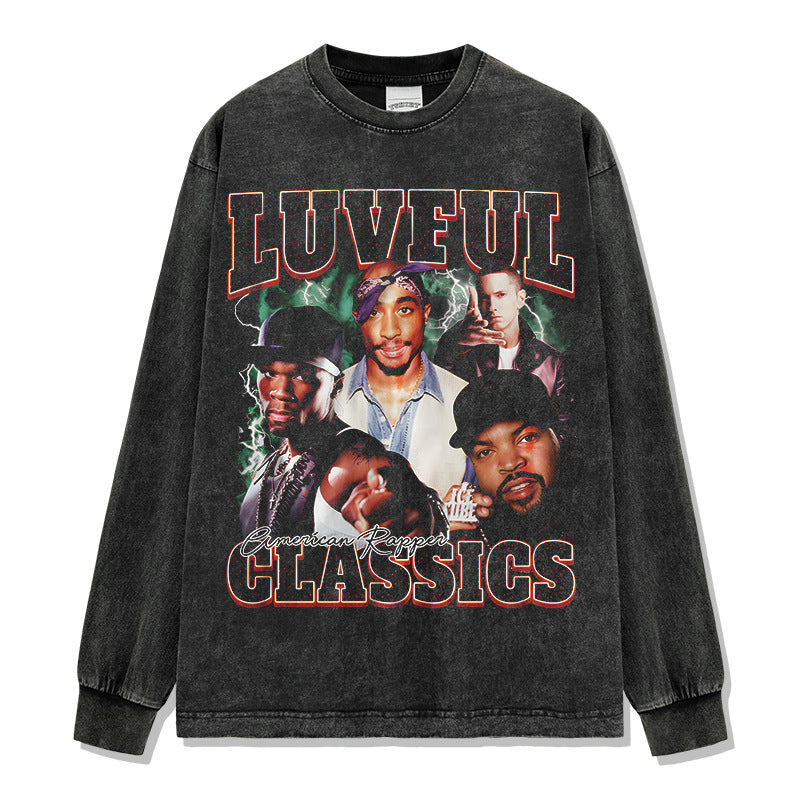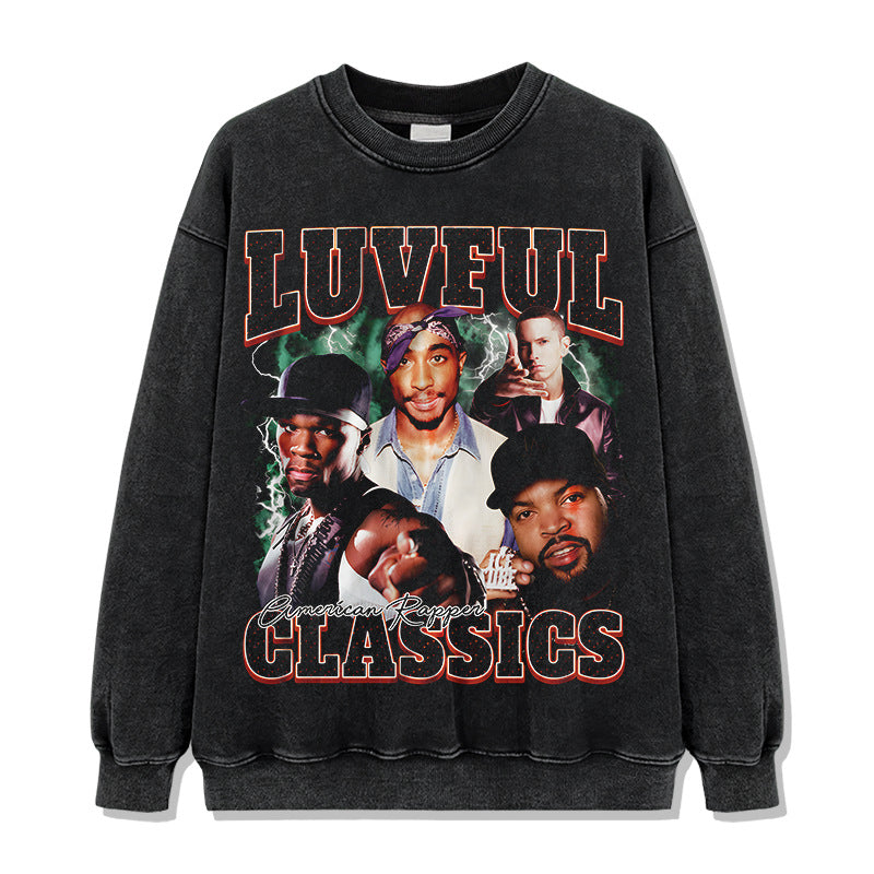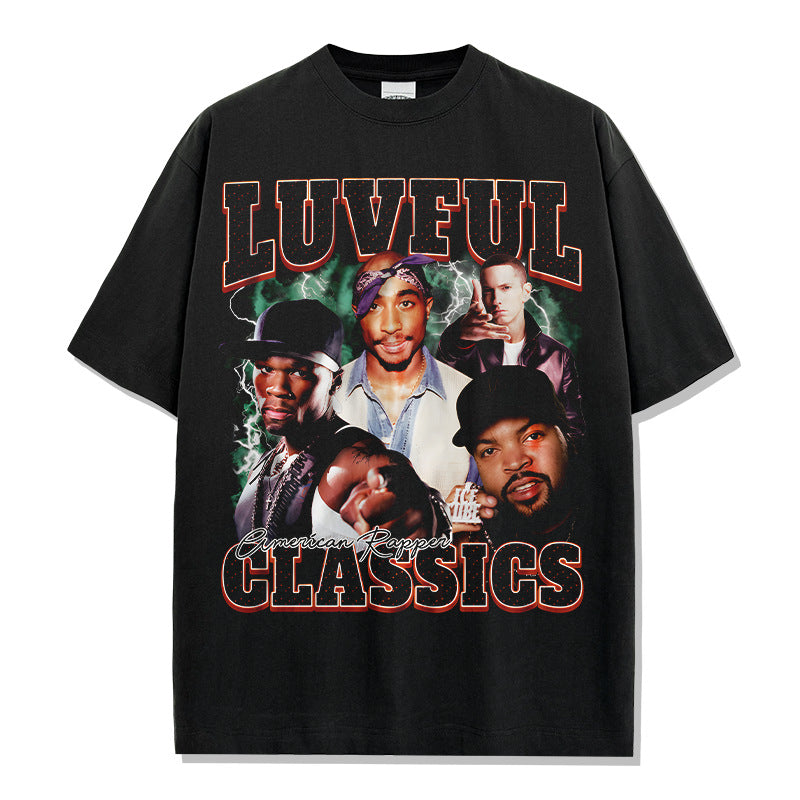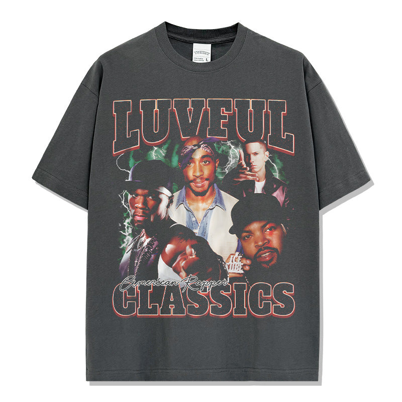 High Street vintage2 PAC TUPAC Hip Hop Character Short Sleeve T-Shirt Vintage Wash Tide