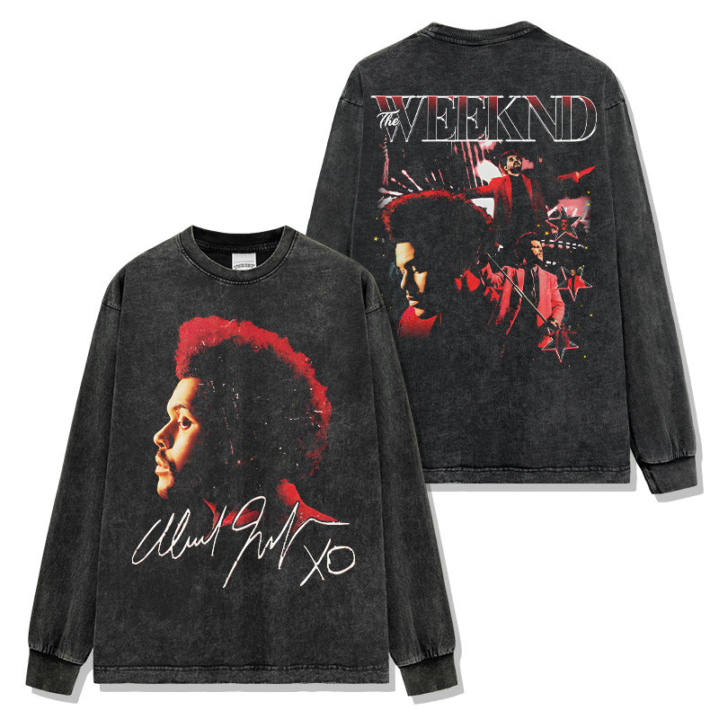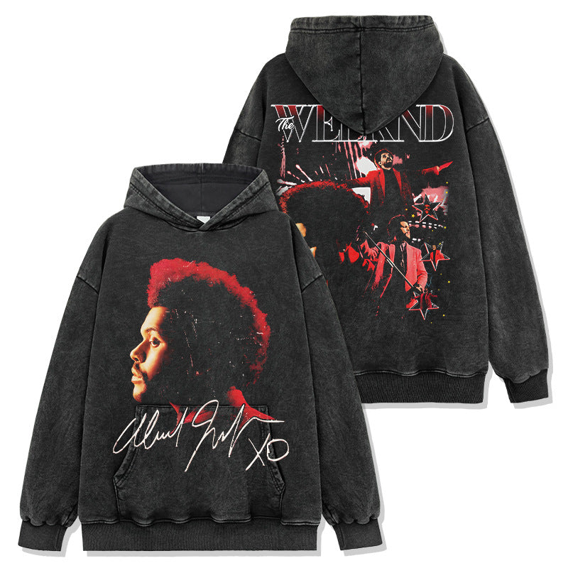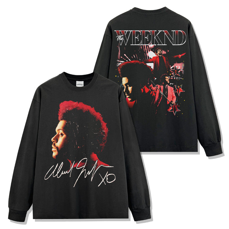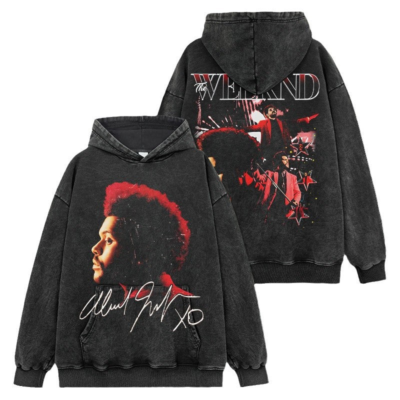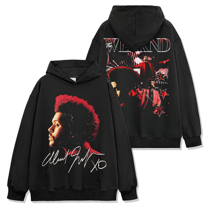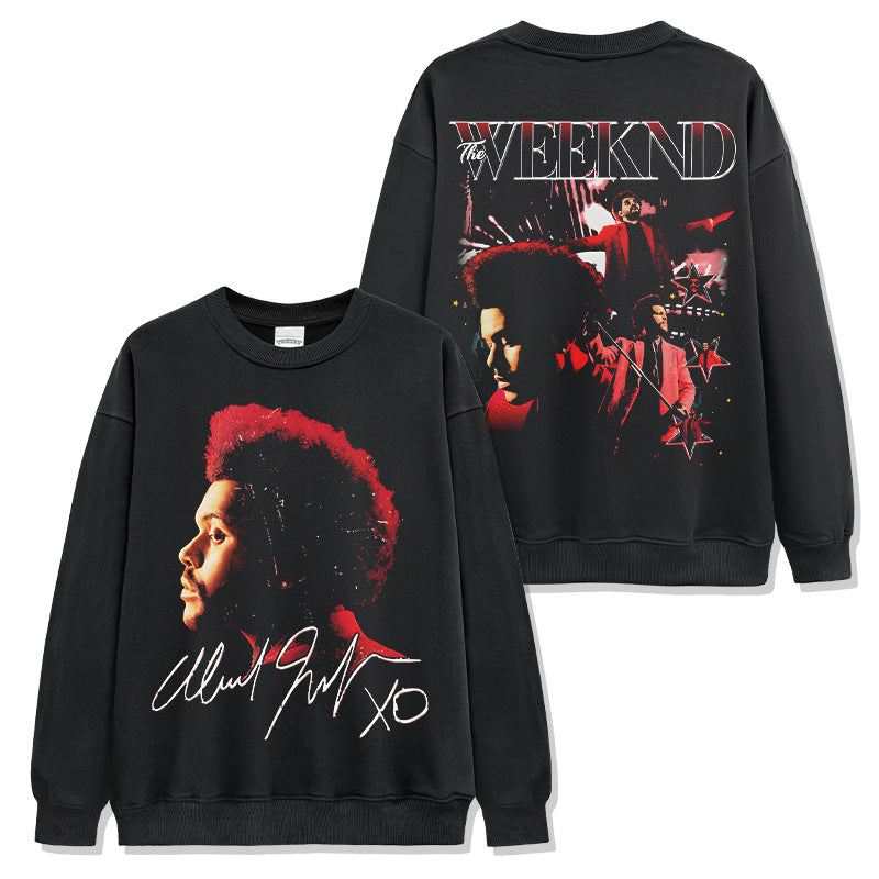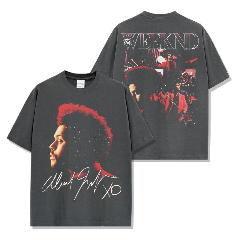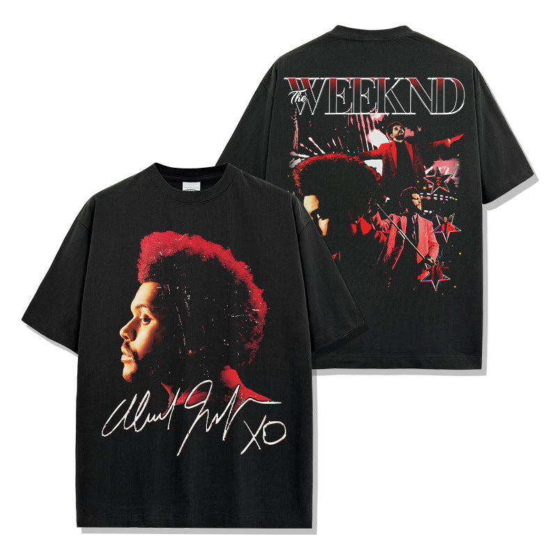 Hip Hop Bonsai Brother The Weeknd Double Sided Printed Short Sleeve T-Shirt Loose Crew Neck Hooded Sweater
