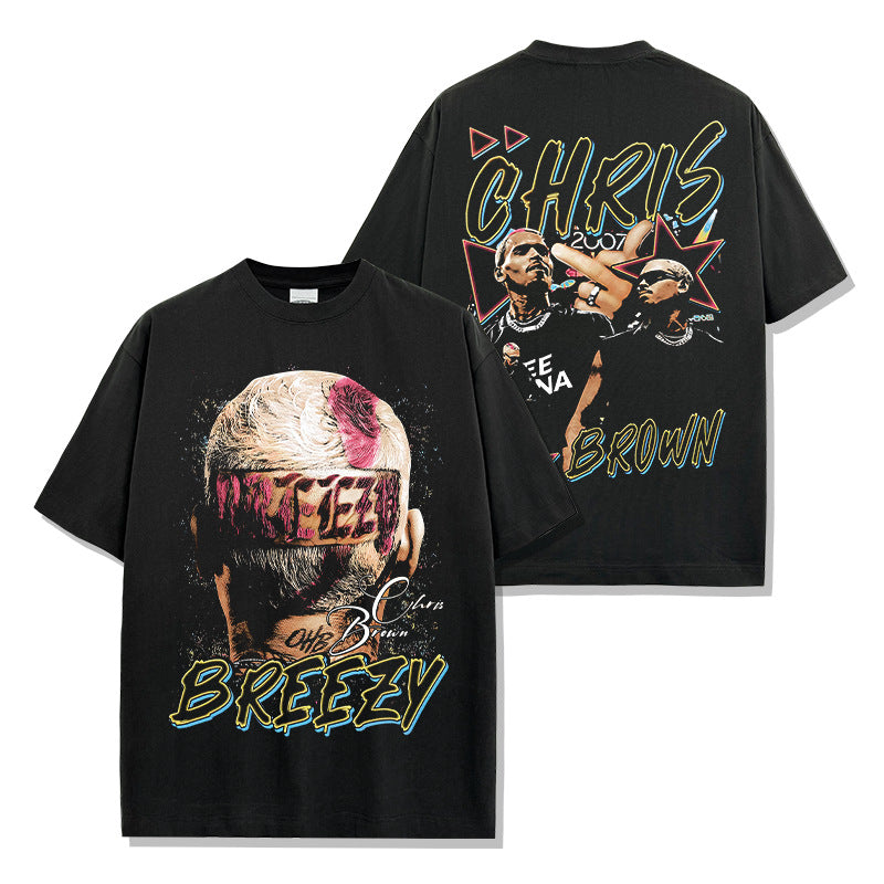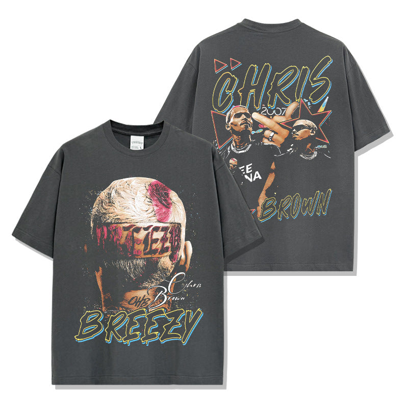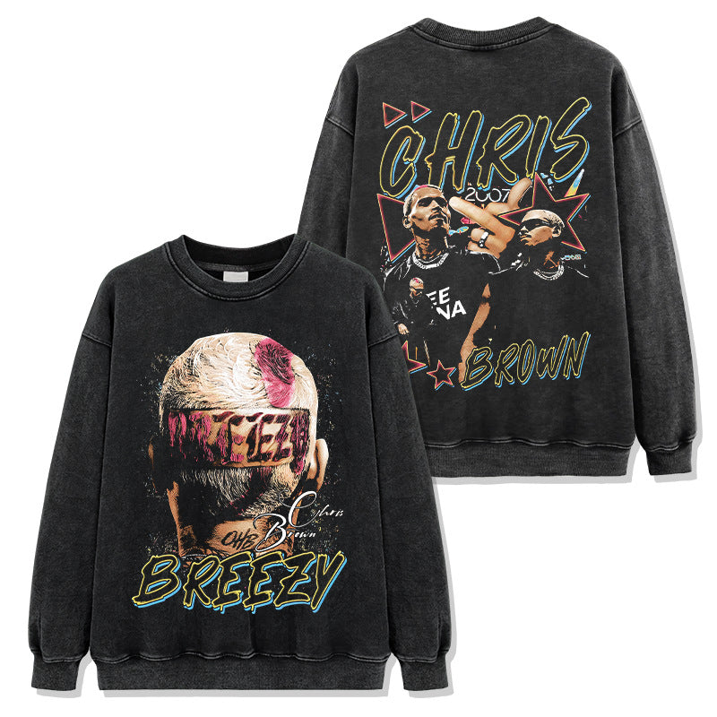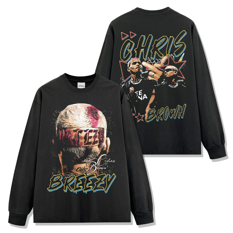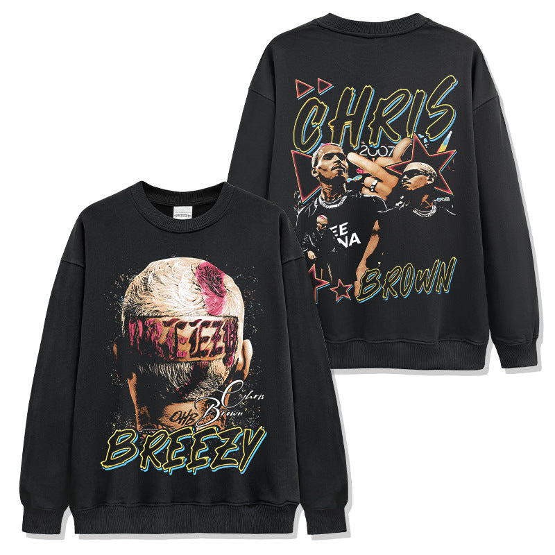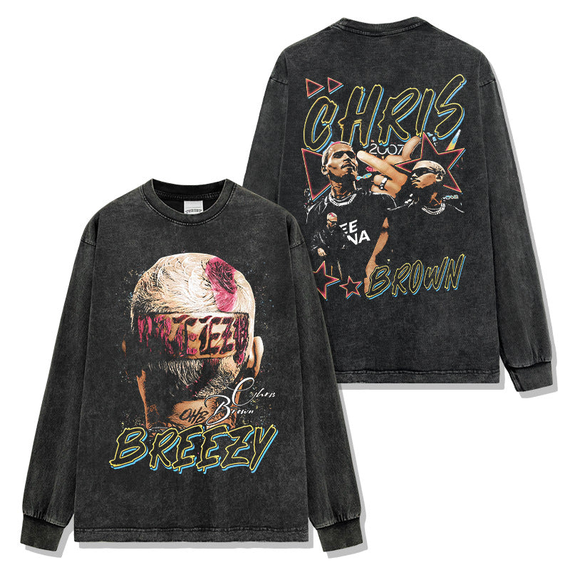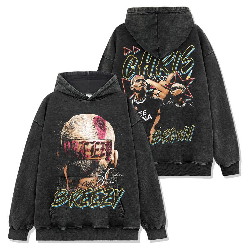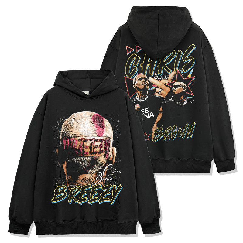 Hip Hop Brown Chris Brown Printed Short Sleeve T-Shirt Washed Long Sleeve Loose Hooded Sweater Men