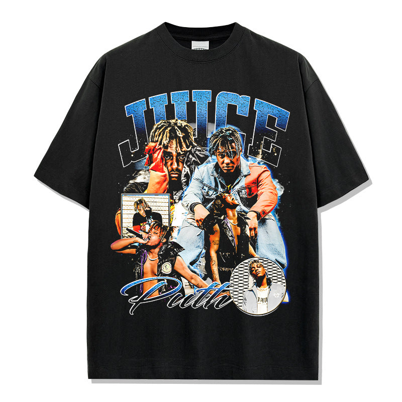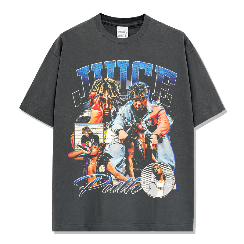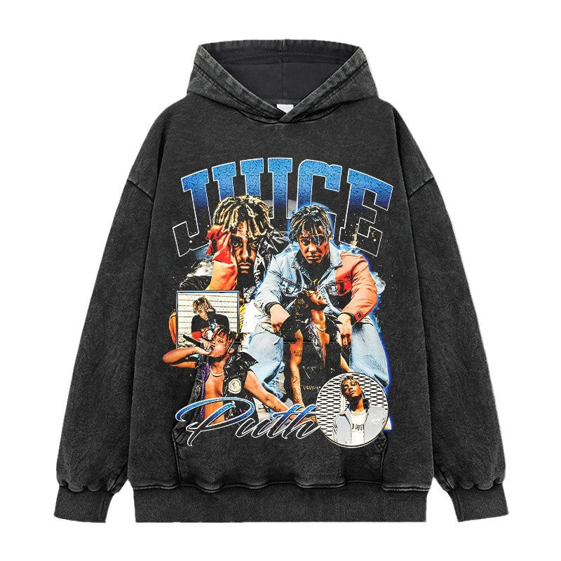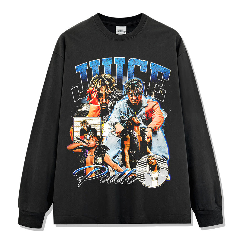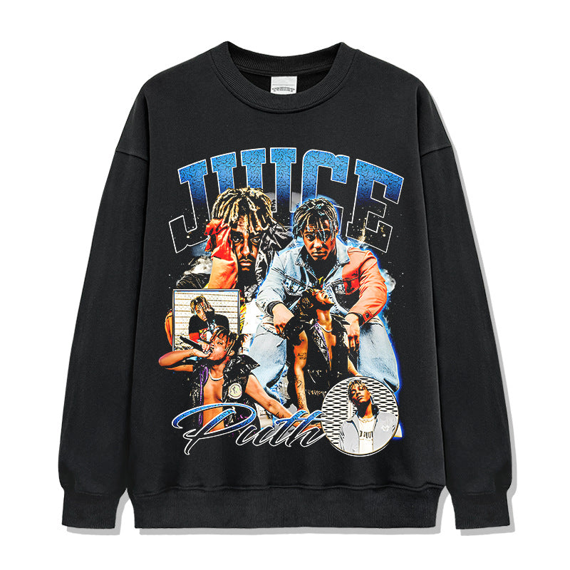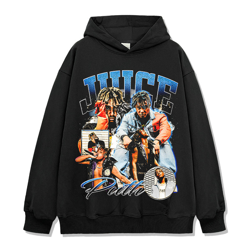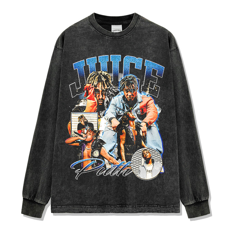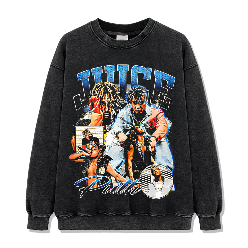Hip Hop JUICE WRLD Printed Short Sleeve T-Shirt Washed Long Sleeve Loose Casual Hooded Sweater Men