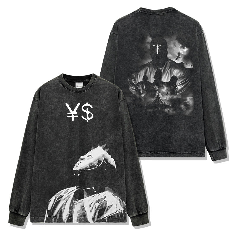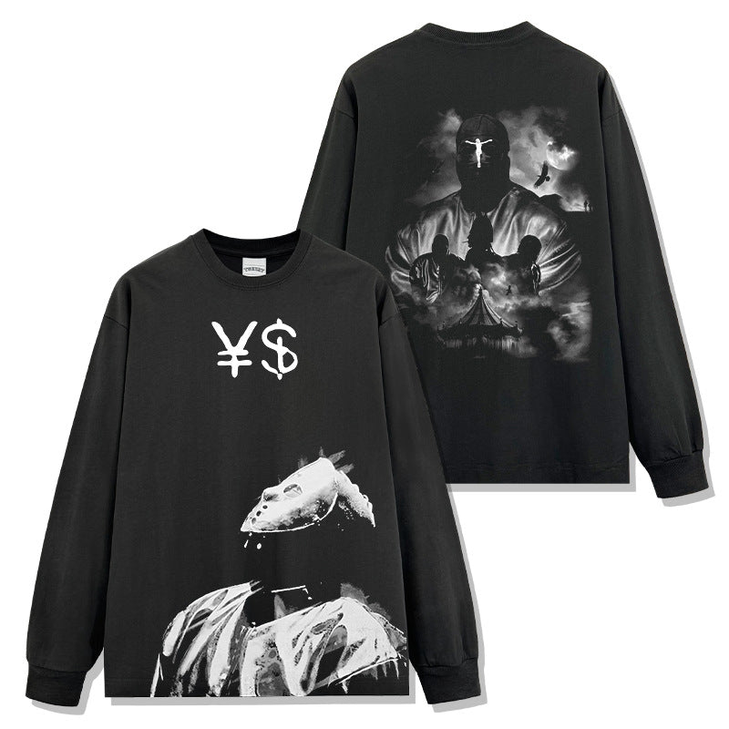 Hip Hop Kanye Kanye West Printed Short Sleeve T-Shirt Heavy Long Sleeve Crew Neck Hooded Sweater Men