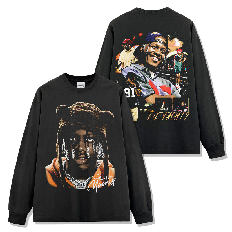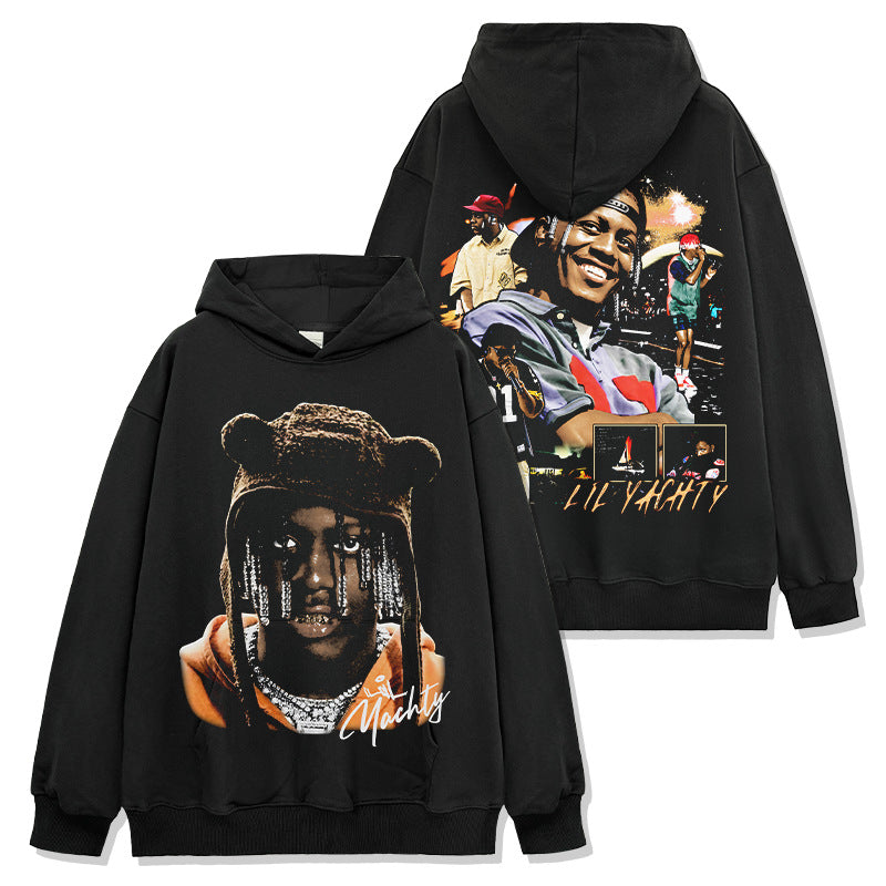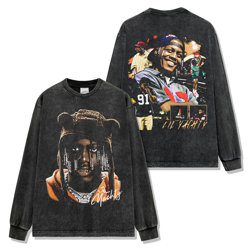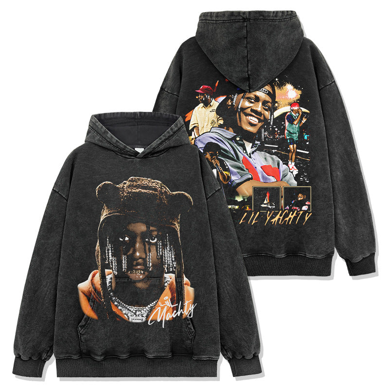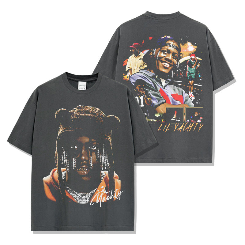 Hip Hop Lil Yachty Printed Washed Short Sleeve T-Shirt Casual Crew Neck Loose Hooded Sweater Men