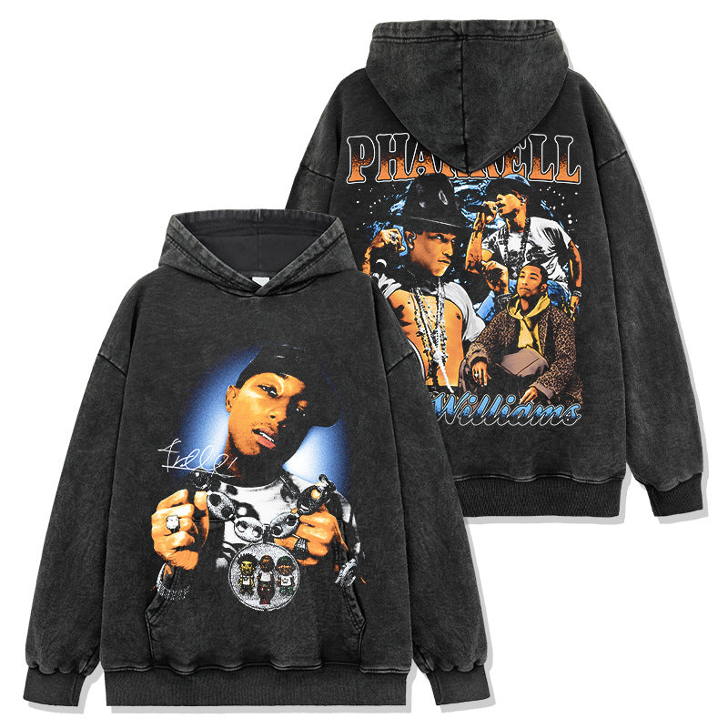 Hip Hop Neptune Pharrell Williams Printed Washed Short Sleeve T-Shirt Crew Neck Hooded Sweater Men