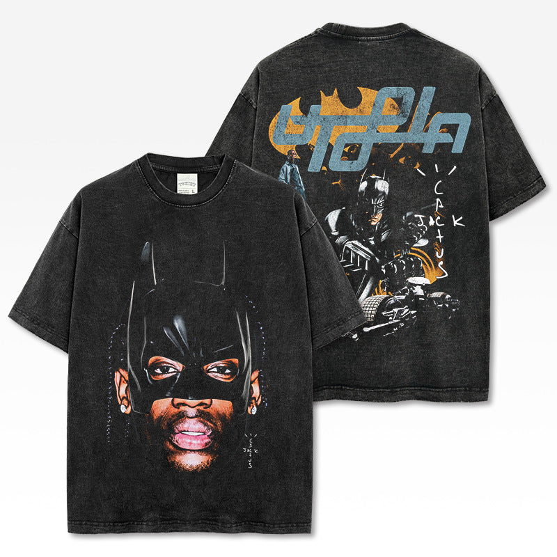 Hip Hop Rap Travis Scott Double Sided Printed Short Sleeve T-Shirt Washed High Street Heavy Cotton T