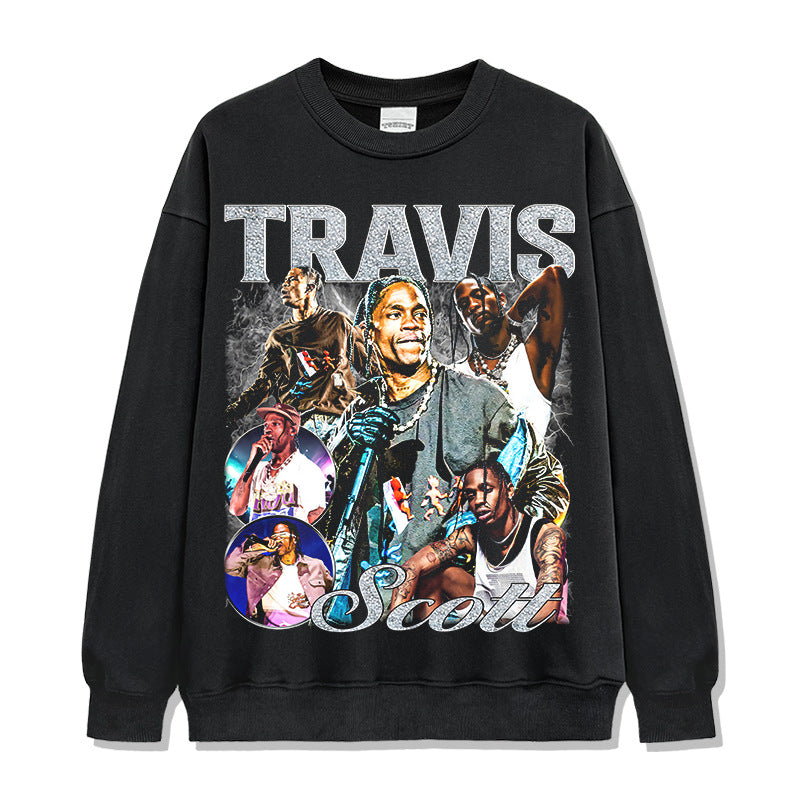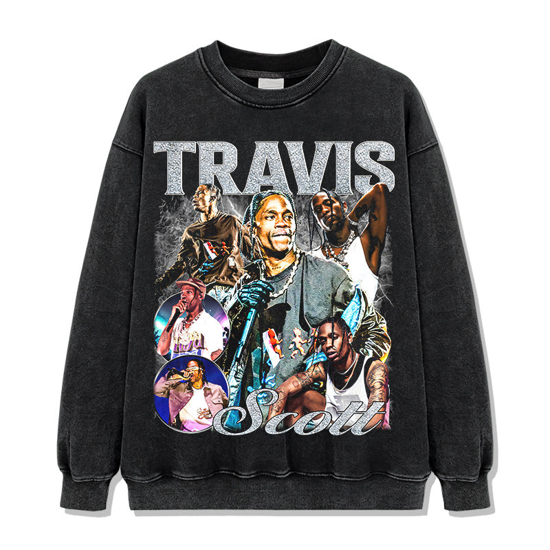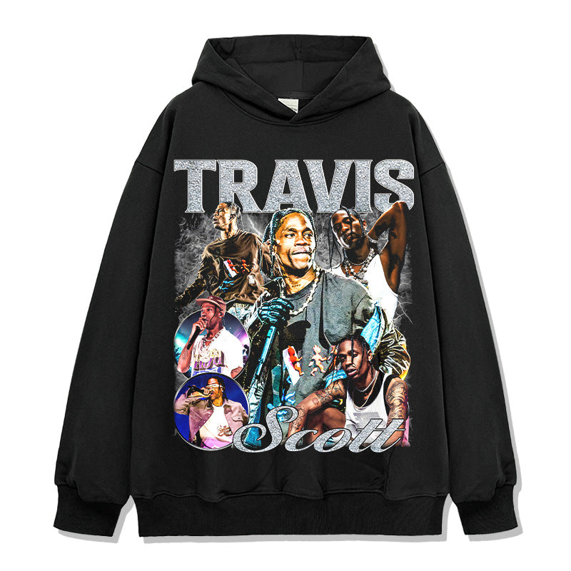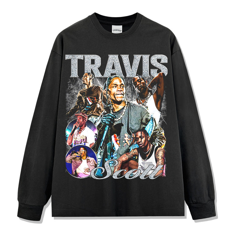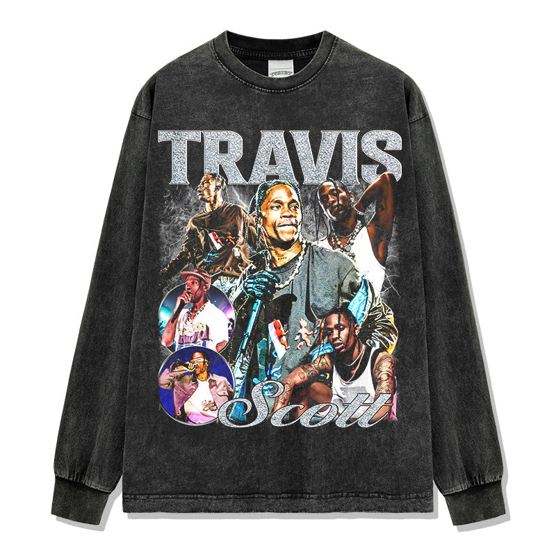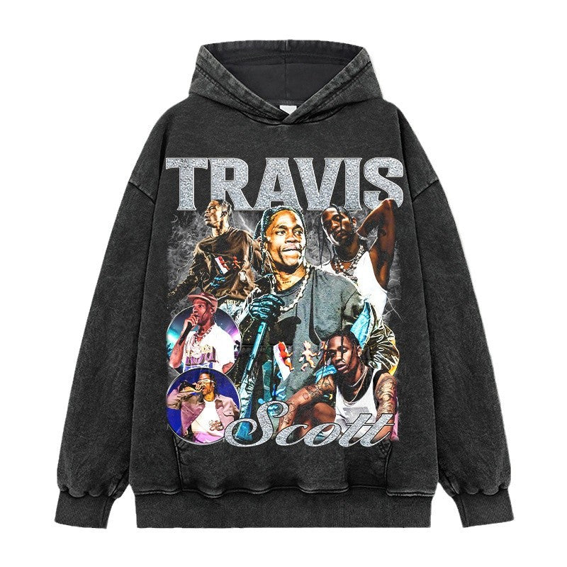 Hip Hop TRAVIS SCOTT Printed Short Sleeve T-Shirt Washed Long Sleeve Loose Casual Hooded Sweater