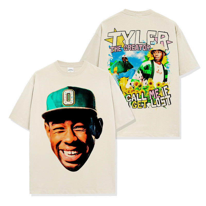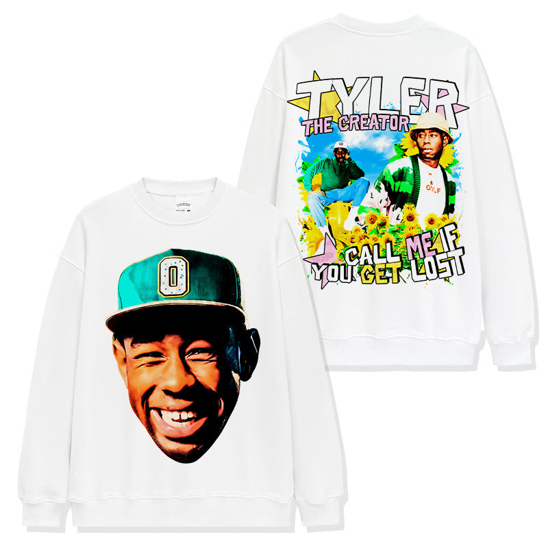 Hip Hop Tyler the Creator Printed Short Sleeve T-Shirt Long Sleeve Crew Neck Washed Hooded Sweater