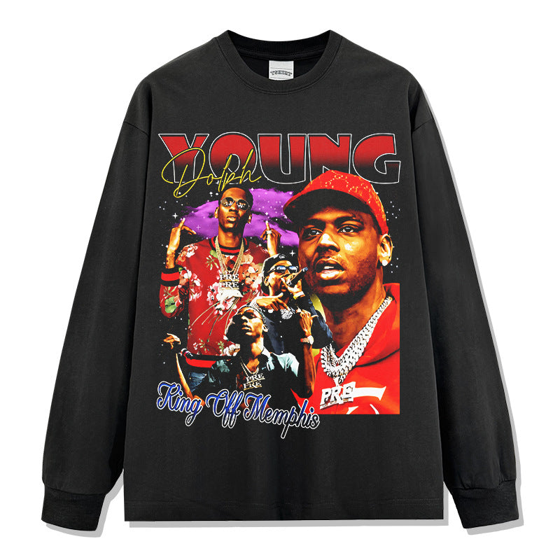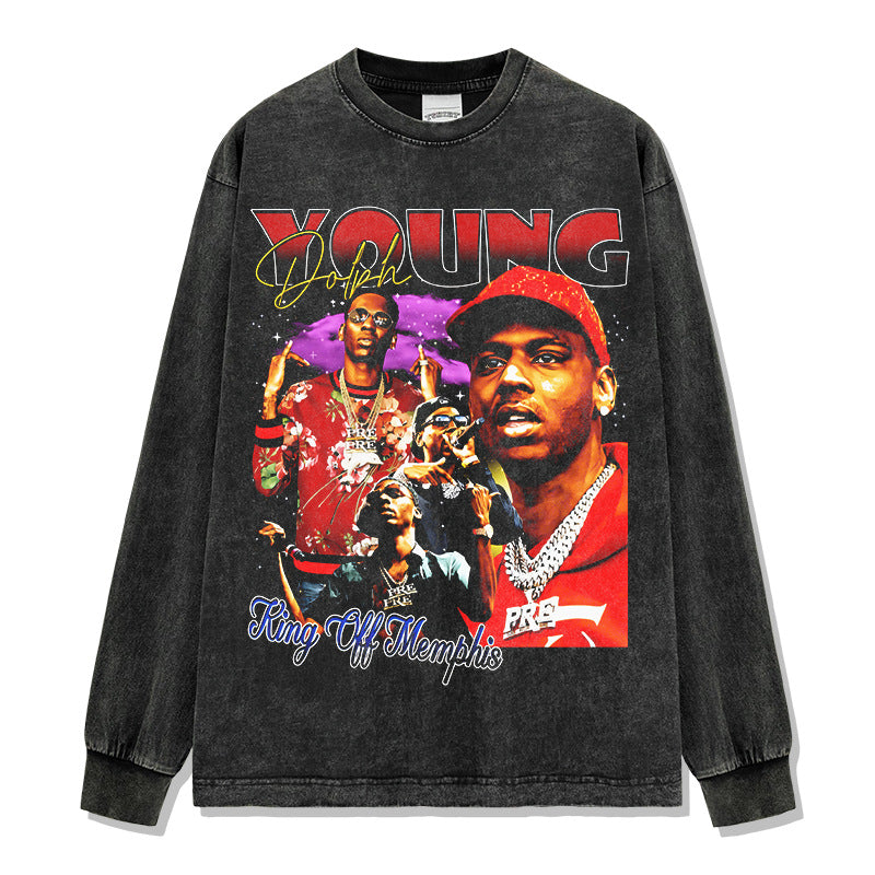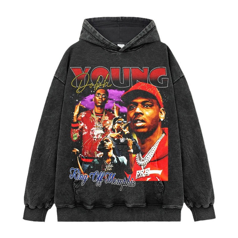 Hip Hop Young Thug Print Washed Crew Neck Long Sleeve Loose Hooded Sweater Men's Couple Shirt Tide