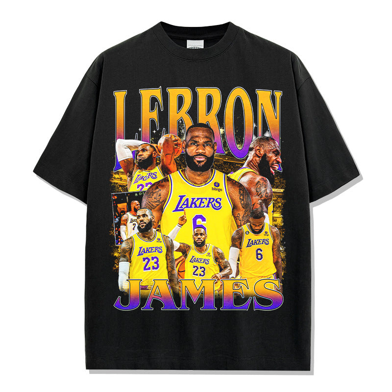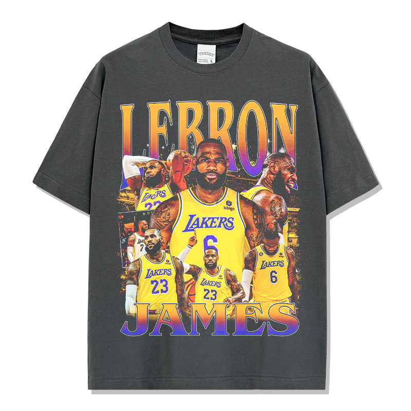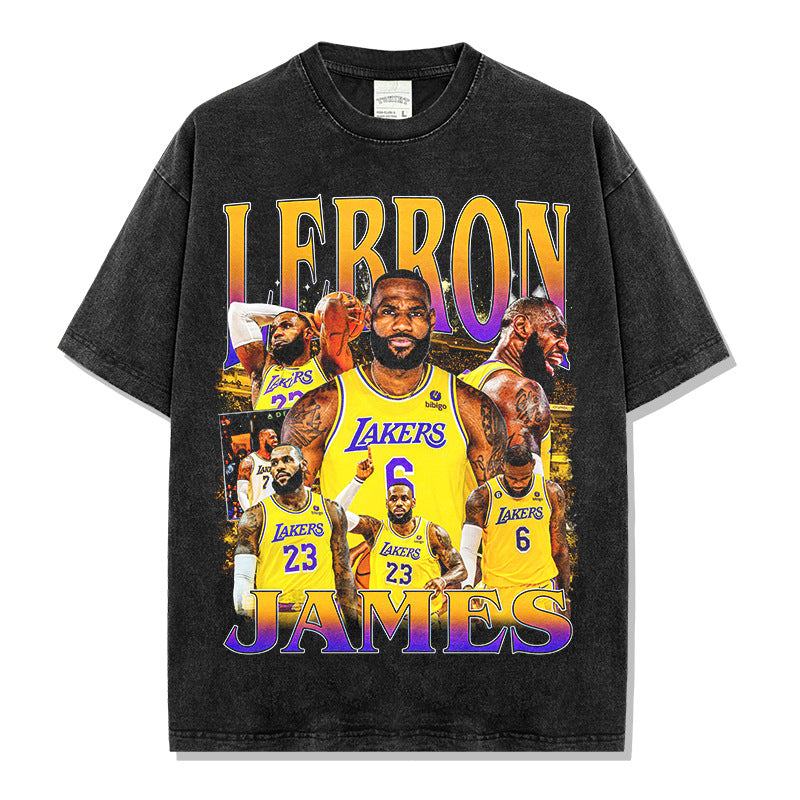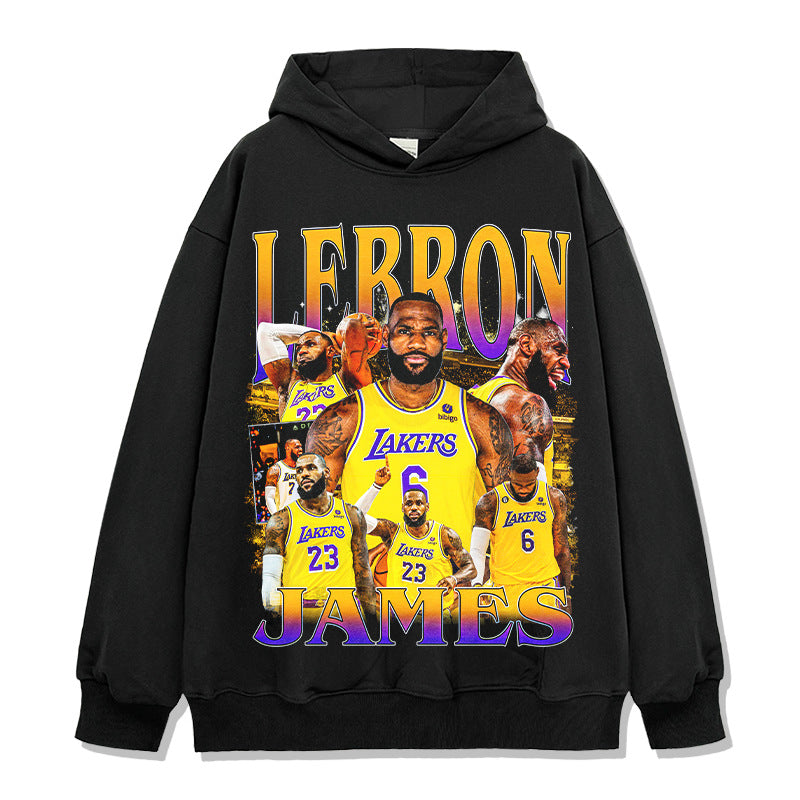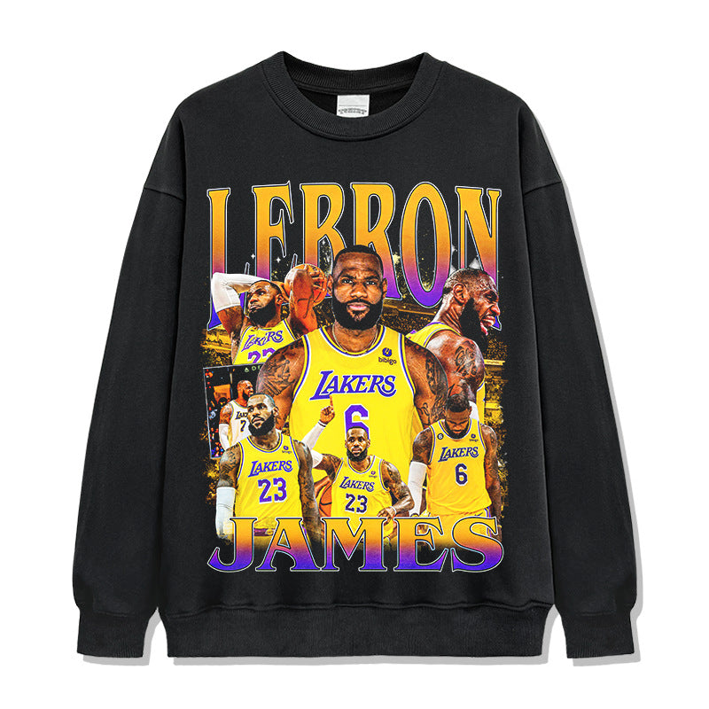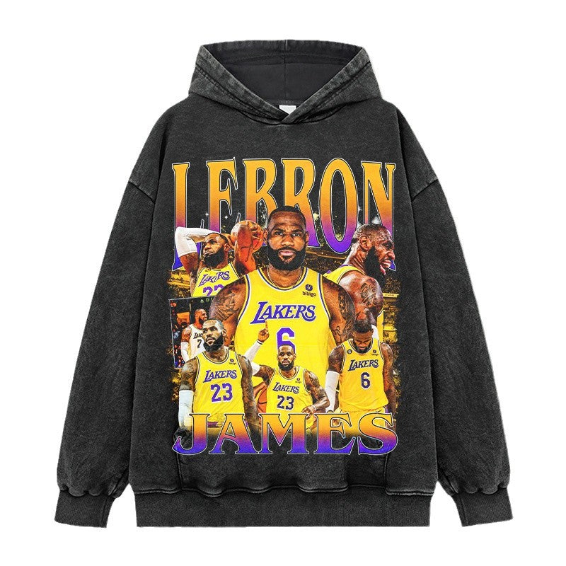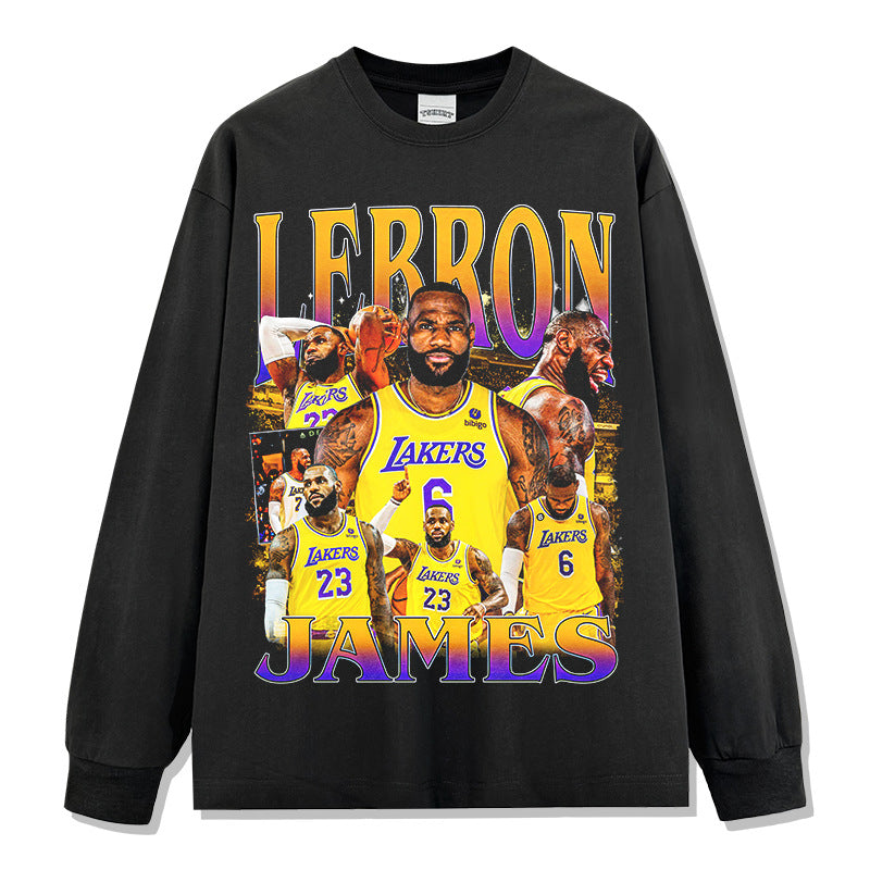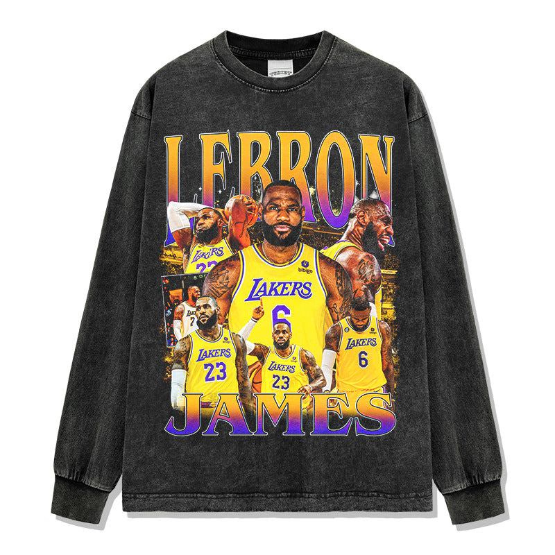 James James Printed Short Sleeve T-Shirt Old Washed Long Sleeve Crew Neck Loose Hooded Sweater Men