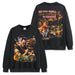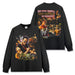 Retro-inspired graffiti letter prints and patch decoration at hem.