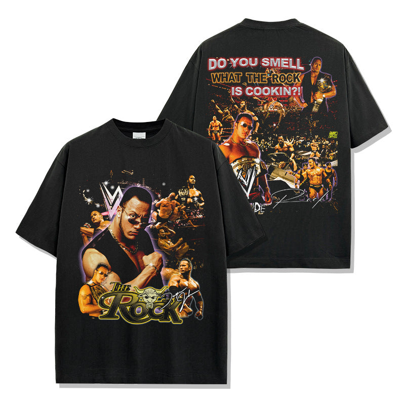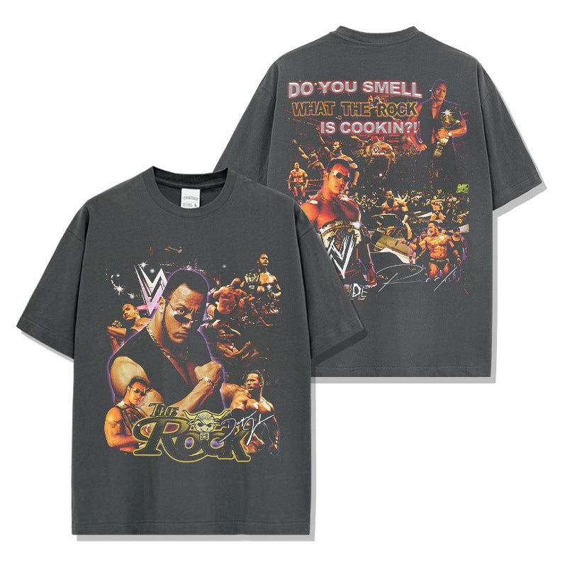 Johnson Johnson print washed short sleeve t-shirt round neck heavy loose hooded hoodie men