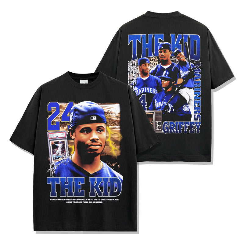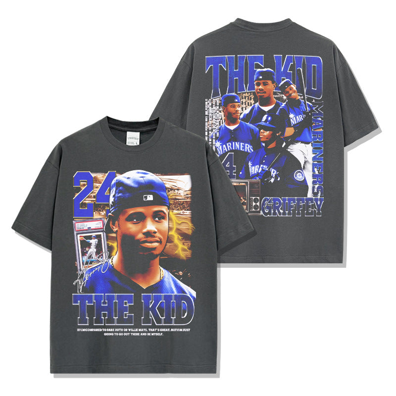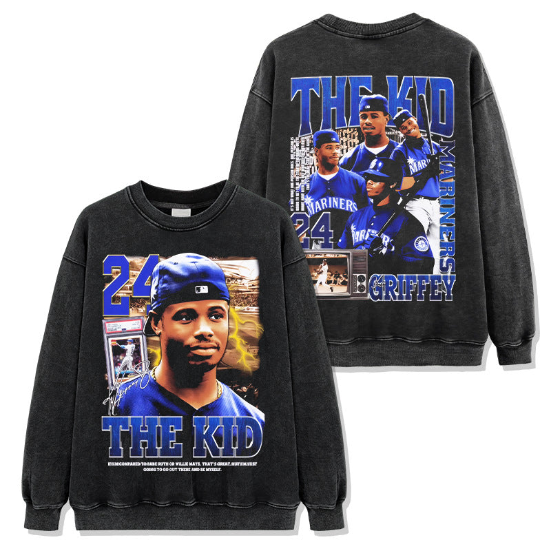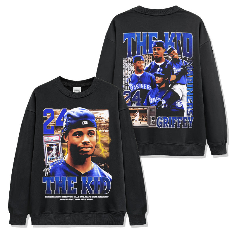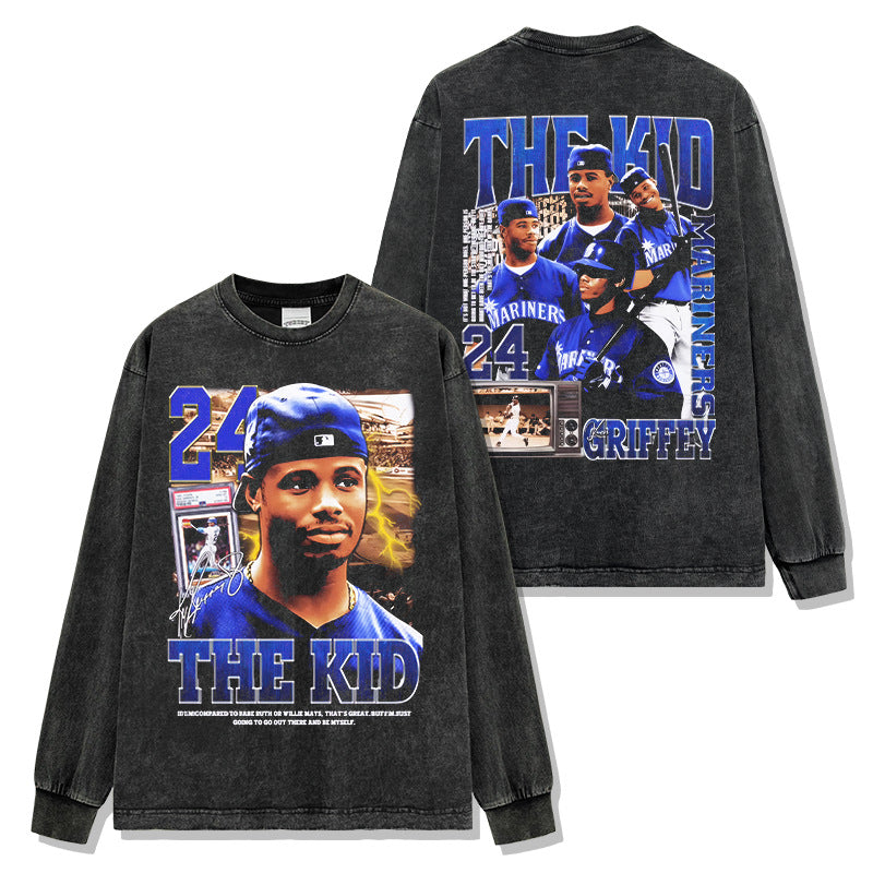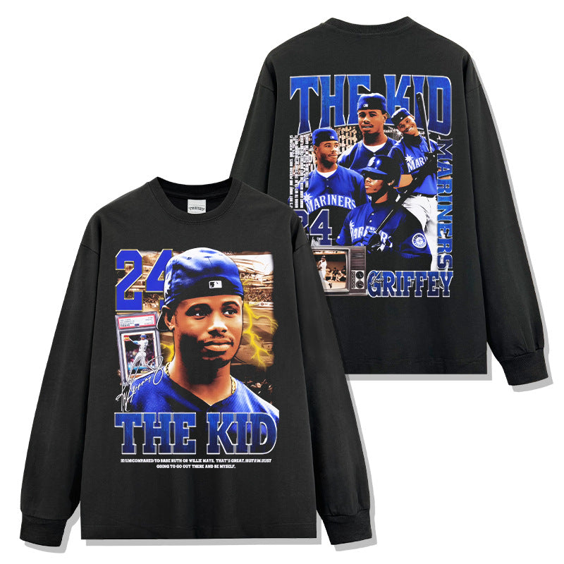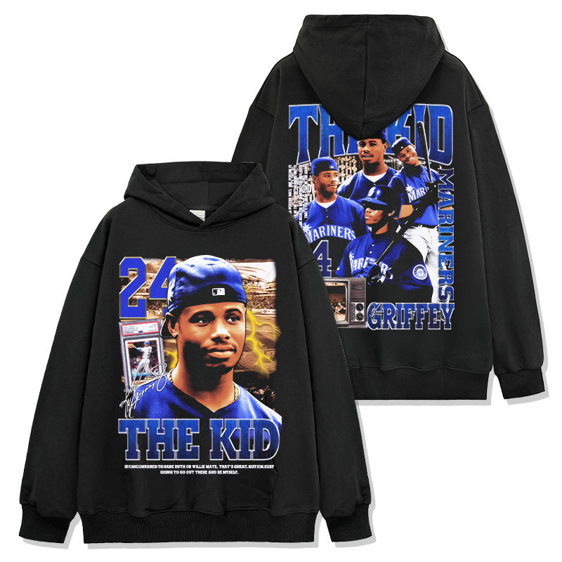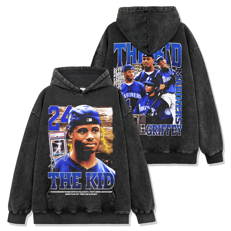 Ken Griffey Jr Printed Short Sleeve T-Shirt Washed Long Sleeve Loose Hooded Sweater Men
