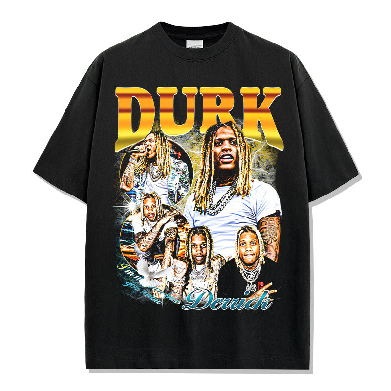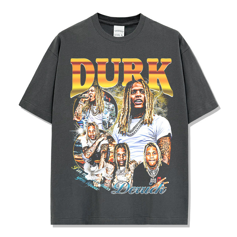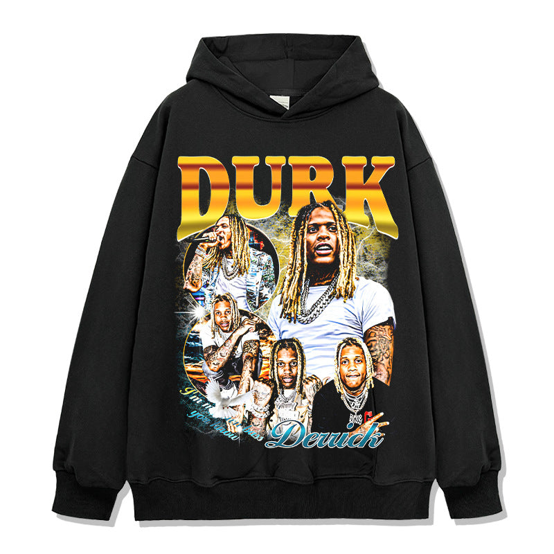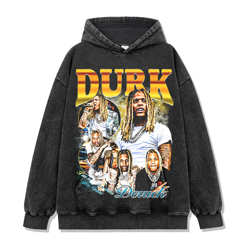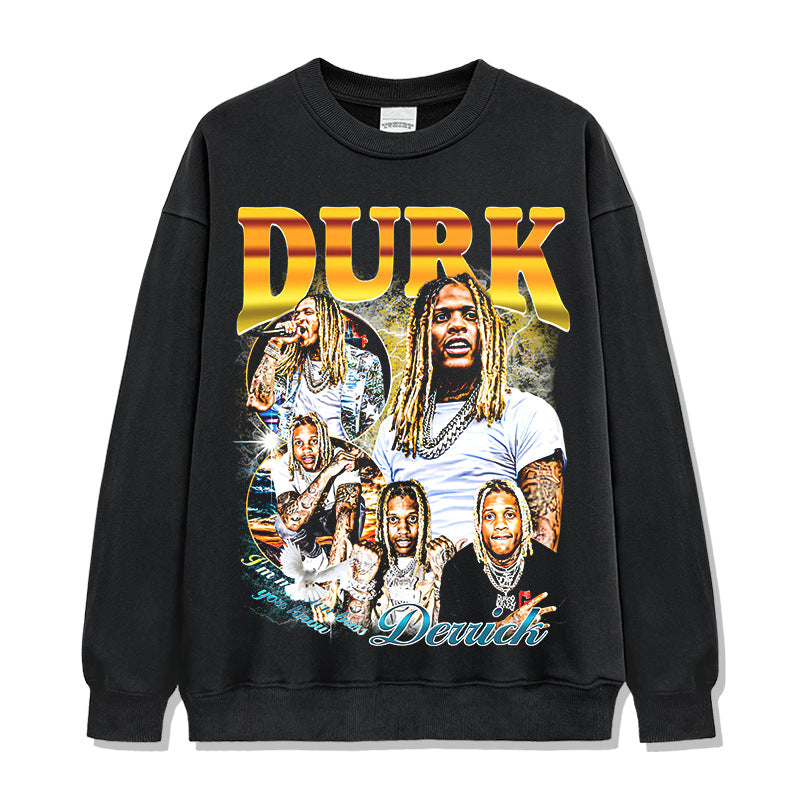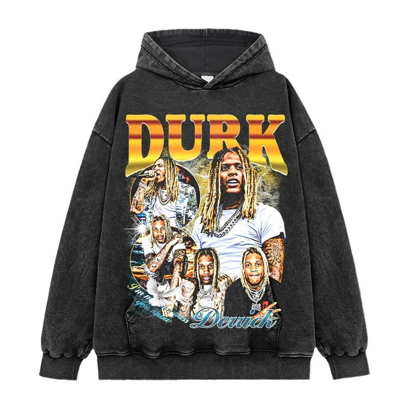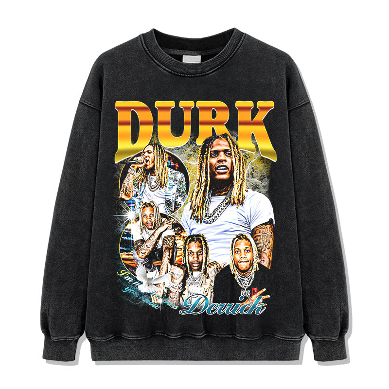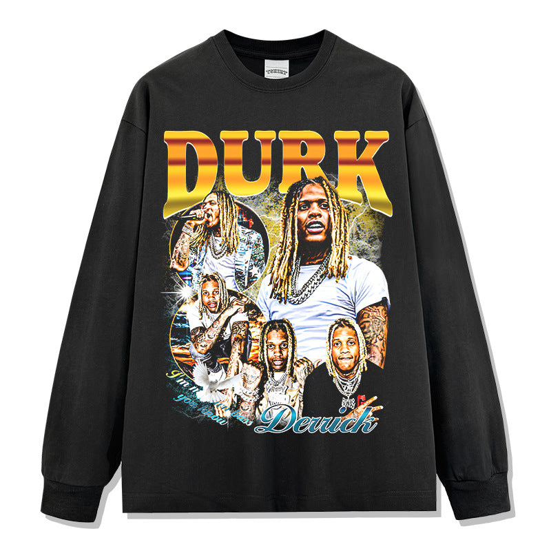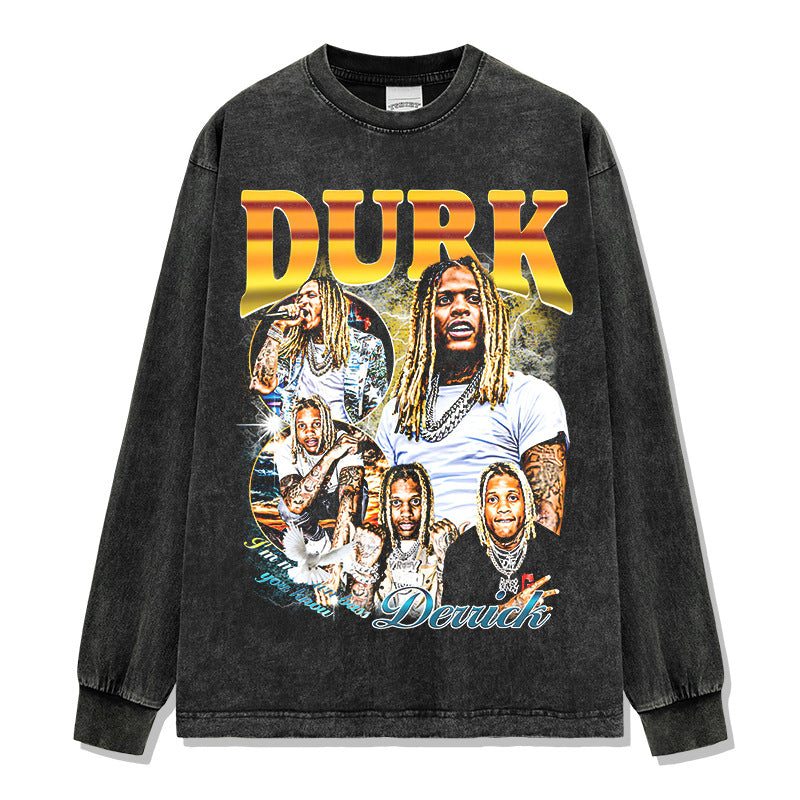 Lil Durk Print Washed Short Sleeve T-Shirt Crew Neck Long Sleeve Hooded Sweater Men