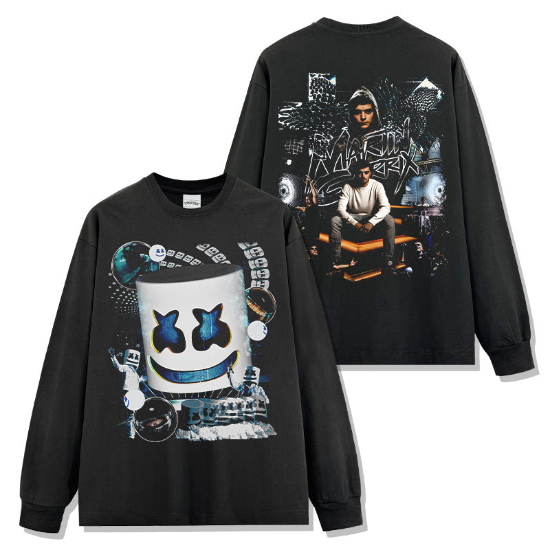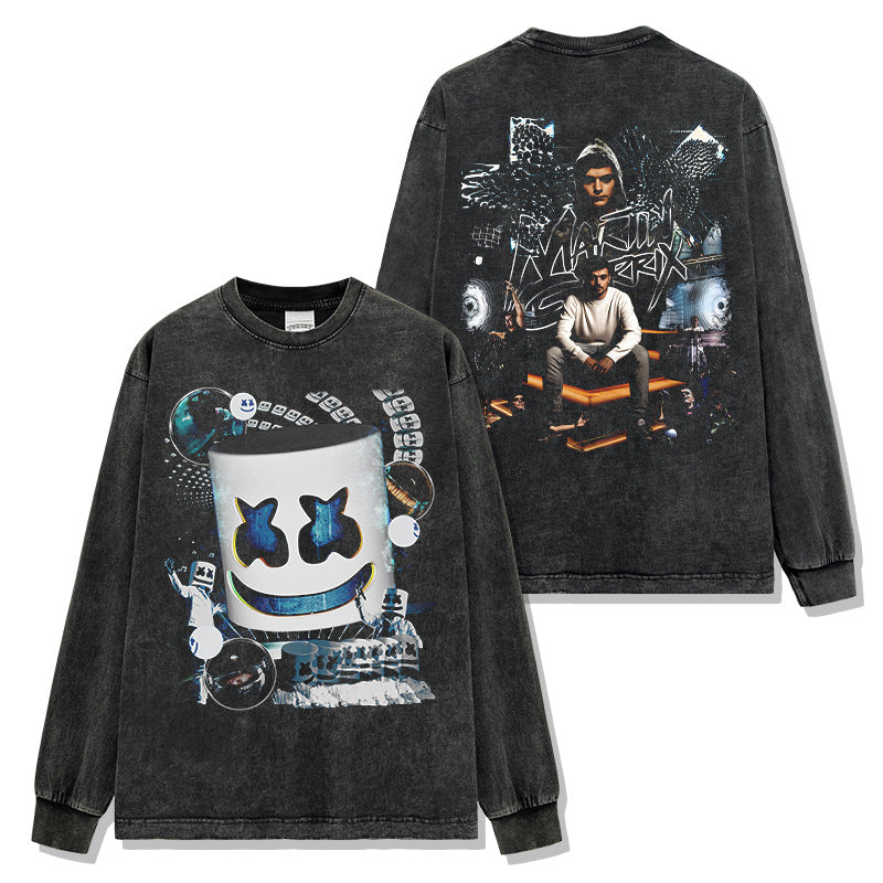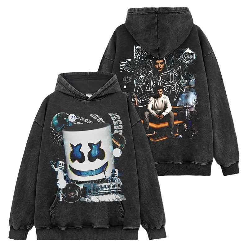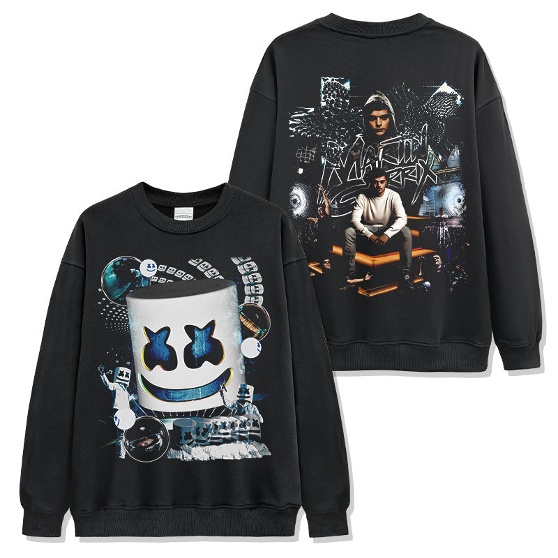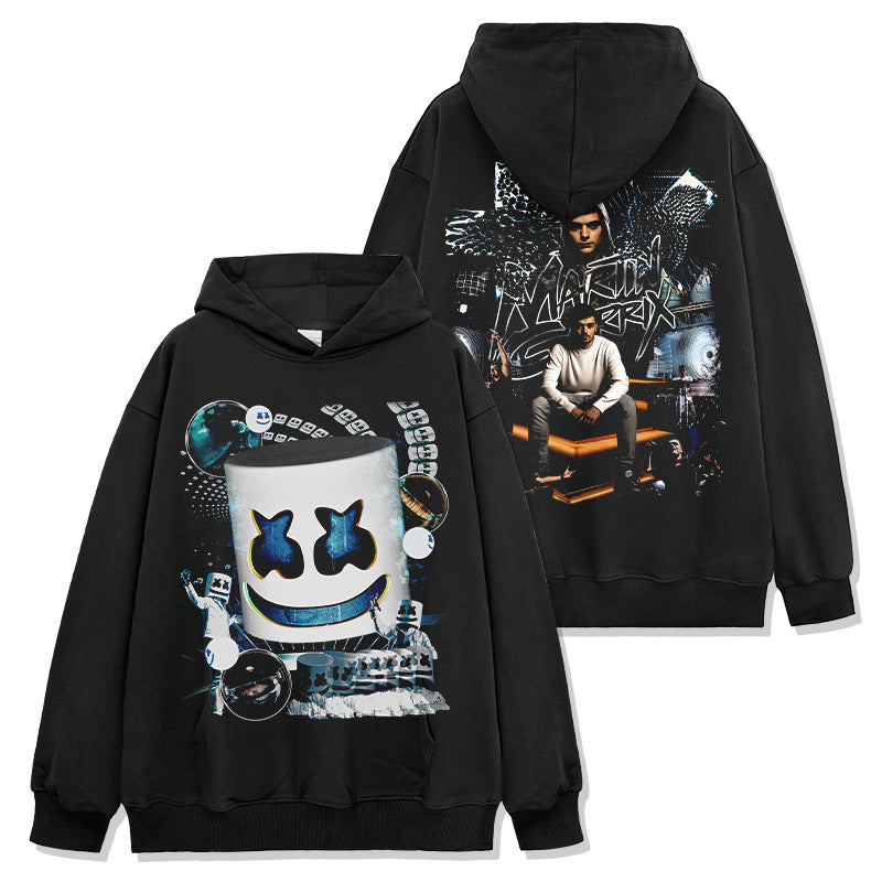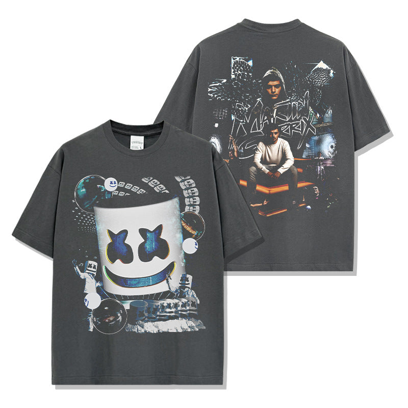 Marshmallow MARSHMELLO printed washed short-sleeved T-shirt casual crew neck hooded sweater
