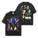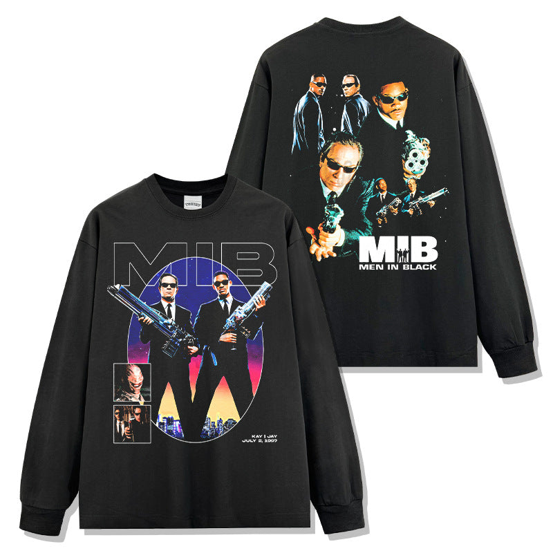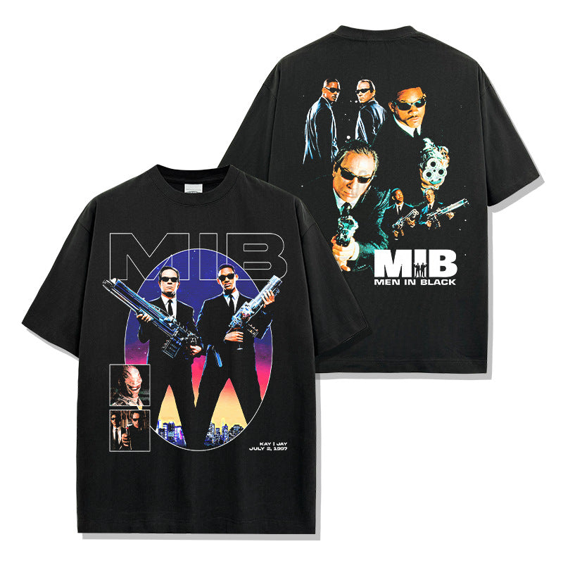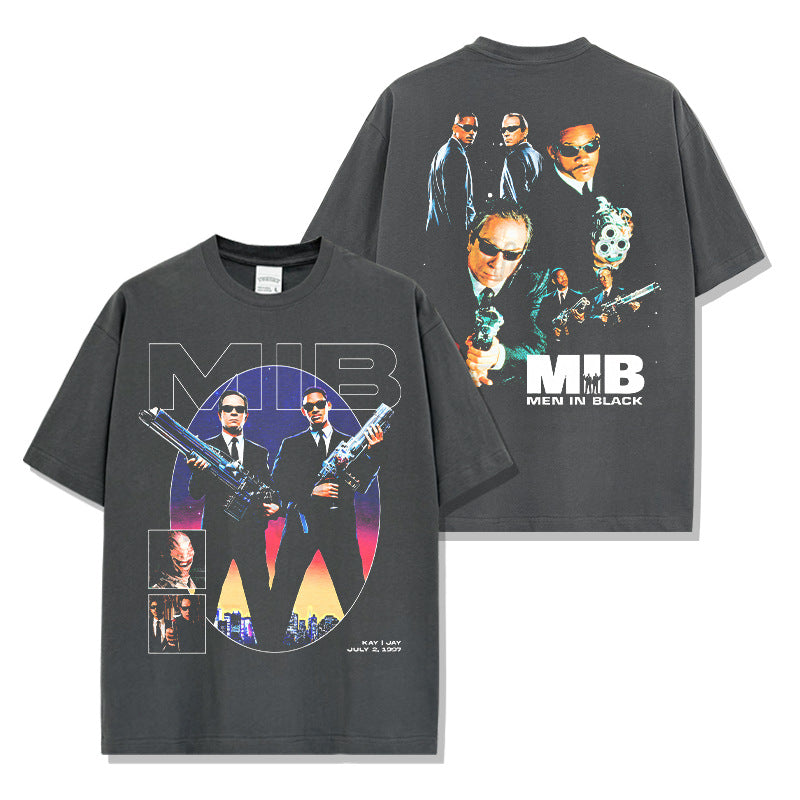Men in Black Printed Washed Short Sleeve T-Shirt Casual Crew Neck Hooded Sweater Men