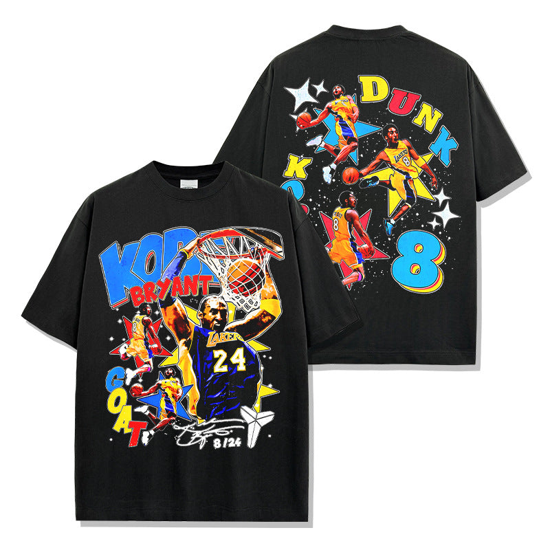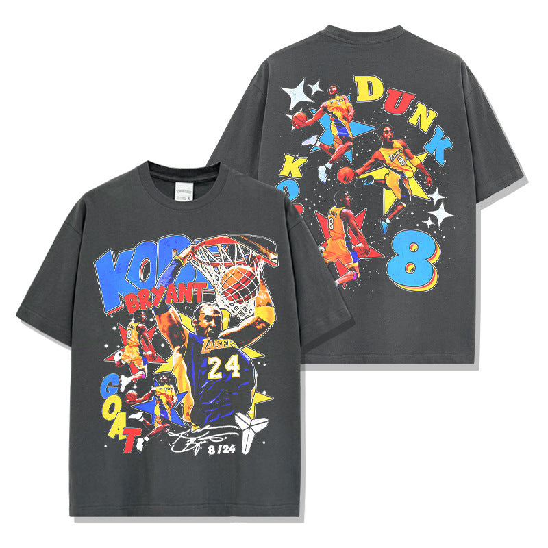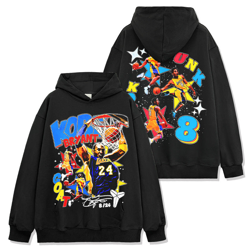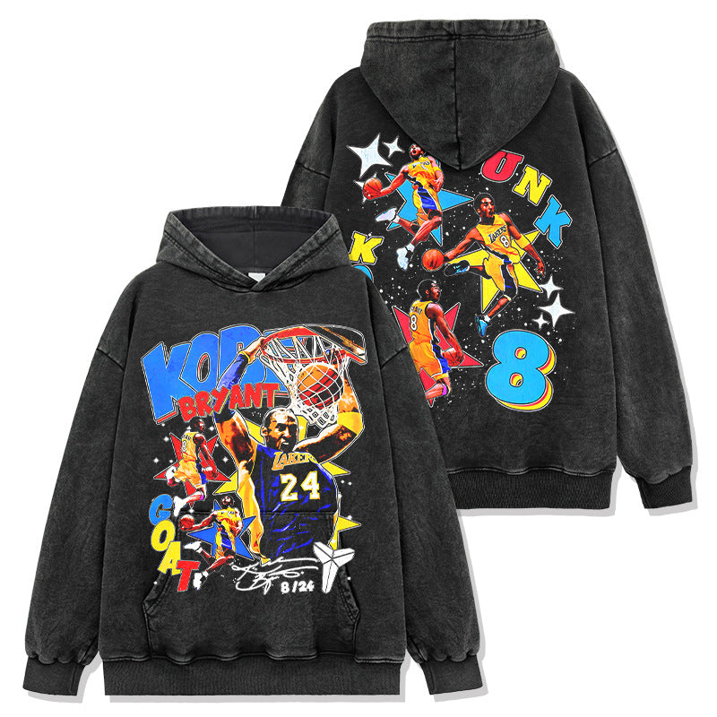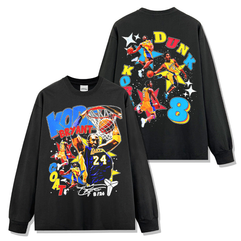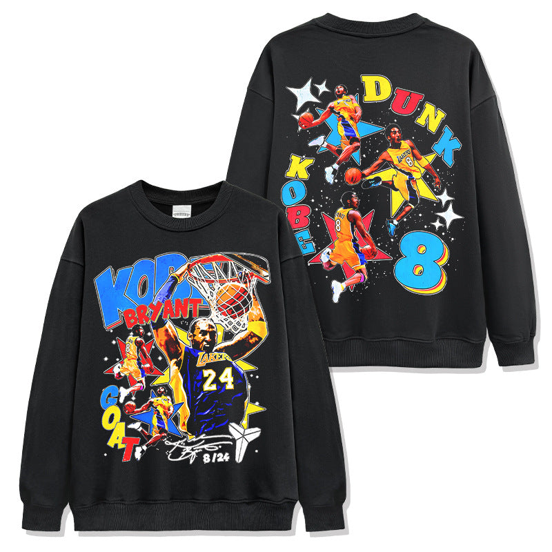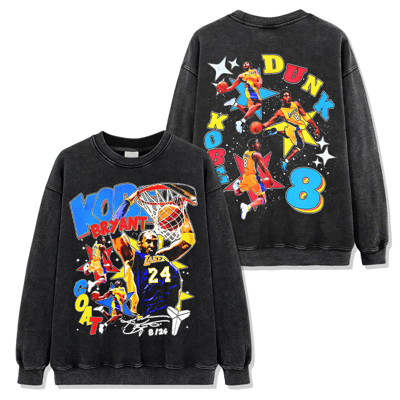 Retro star KOBE printed short-sleeved T-shirt washed and old heavy long-sleeved crew neck NBA hooded sweater men