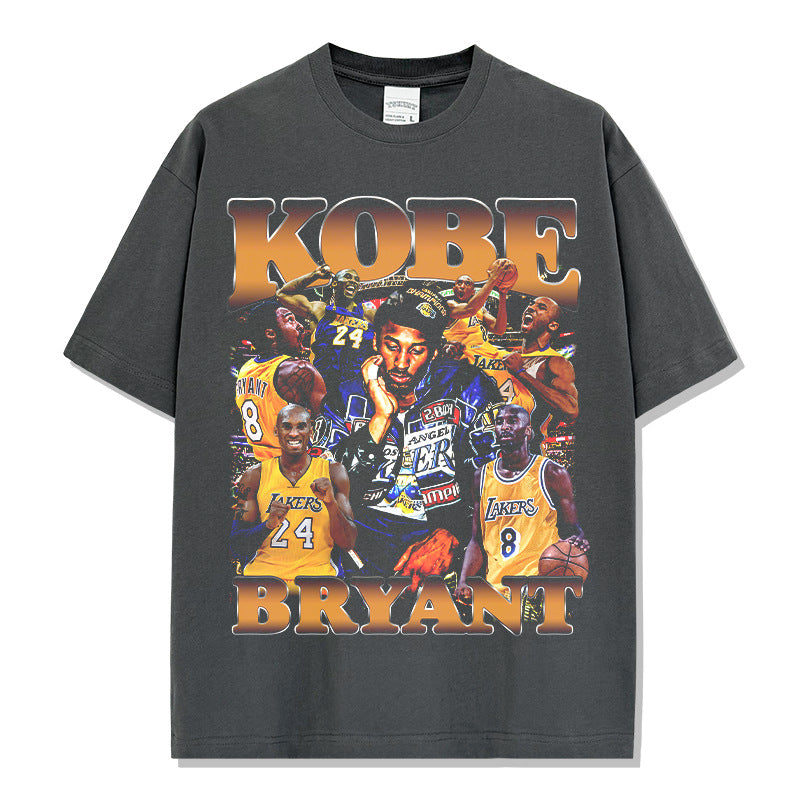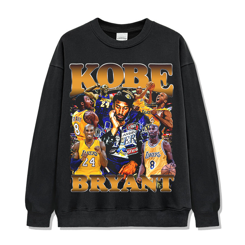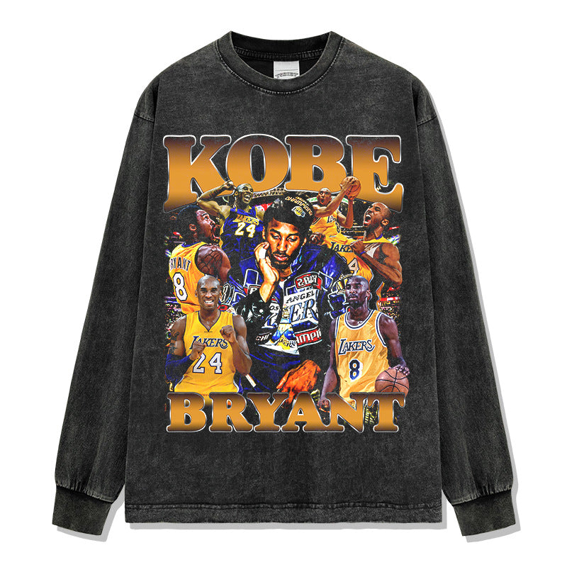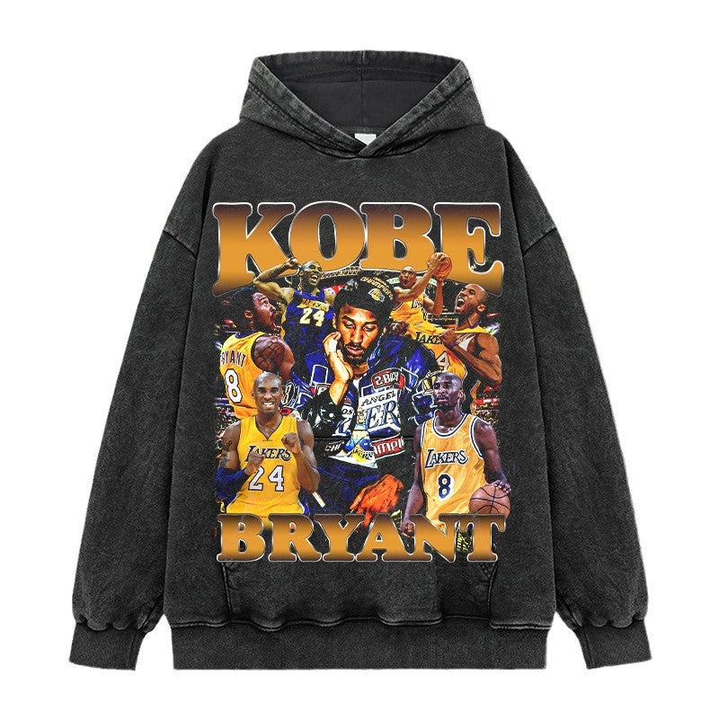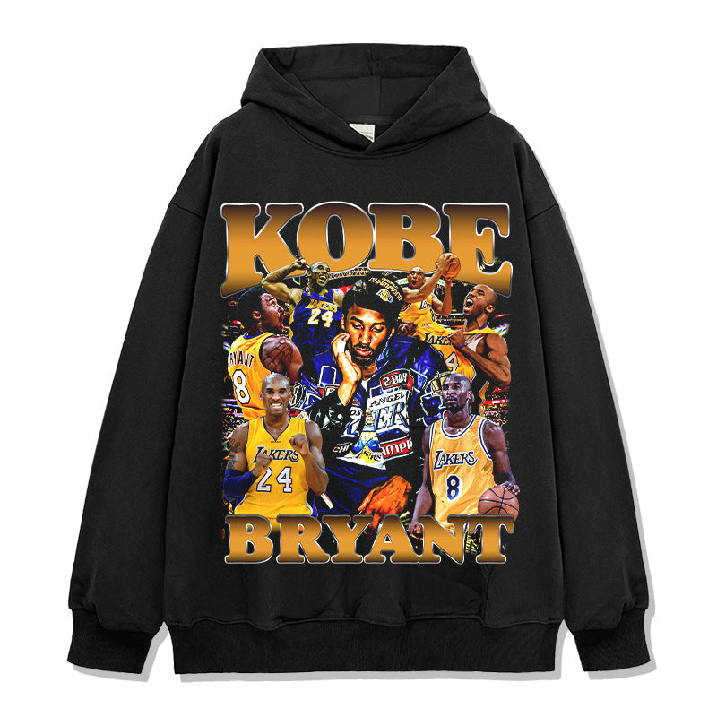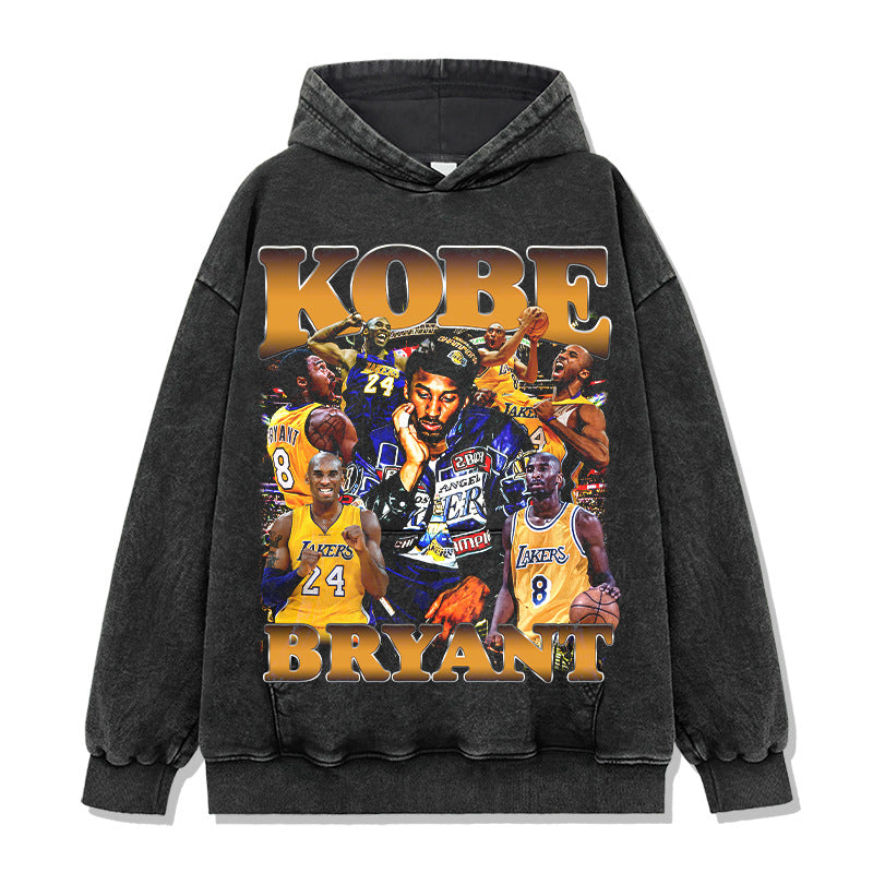 Retro trendy kobe printed short-sleeved t-shirt washed and old long-sleeved loose hooded sweater for men
