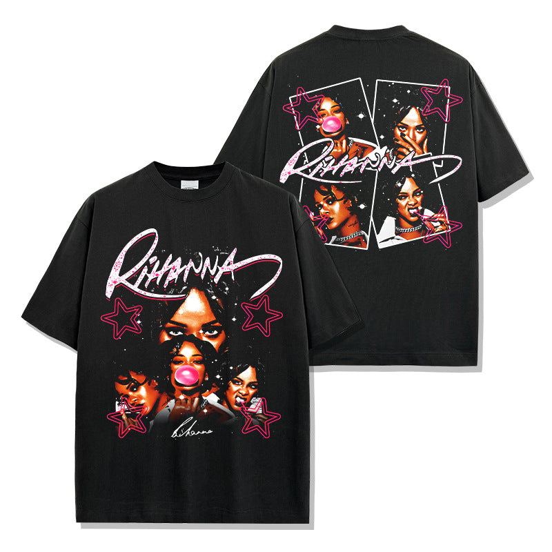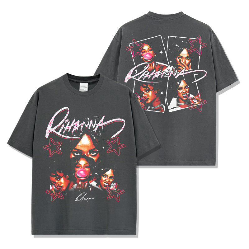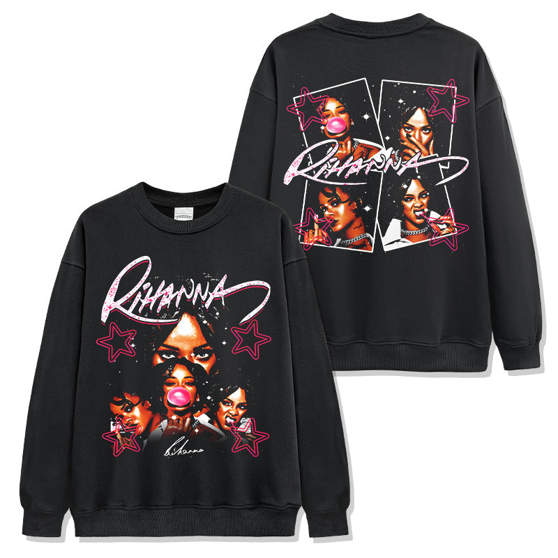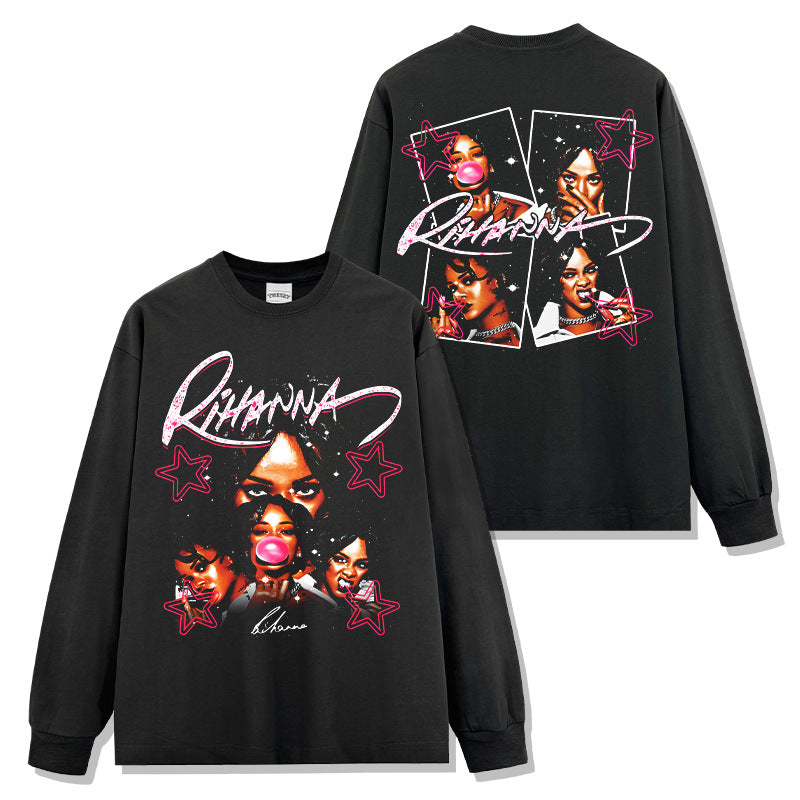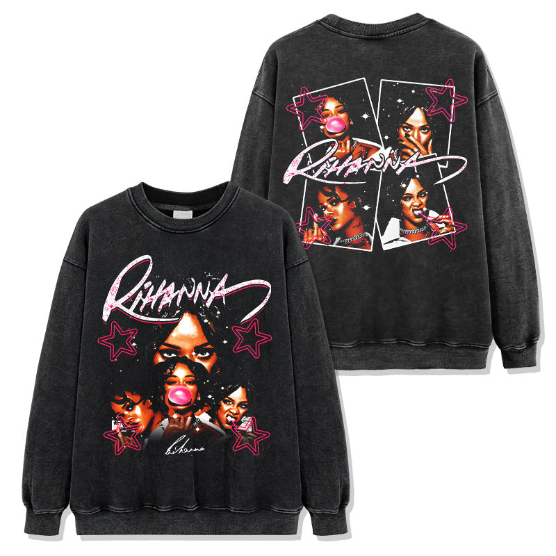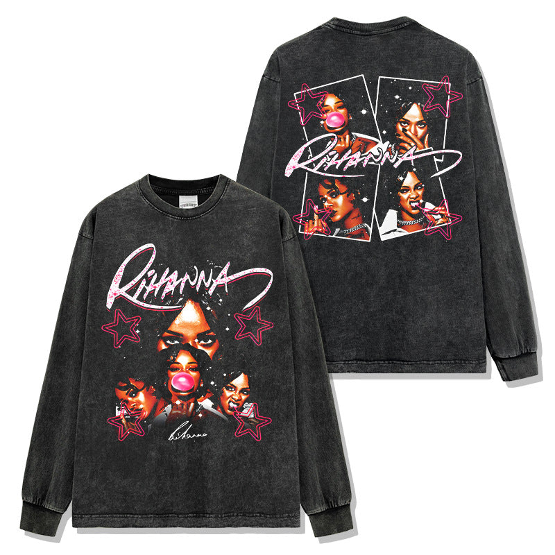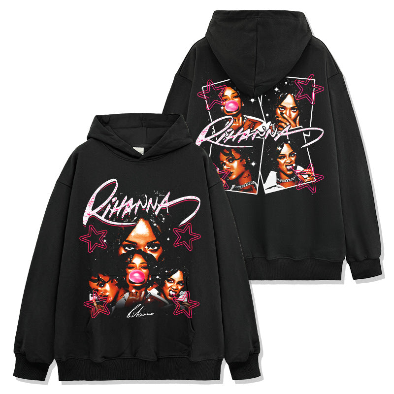 Rihanna print short-sleeved t-shirt washed long-sleeved loose hooded sweater men's casual