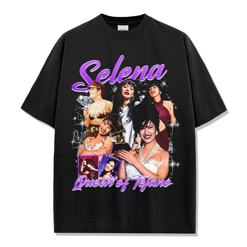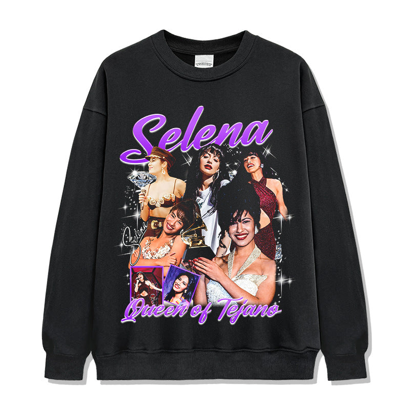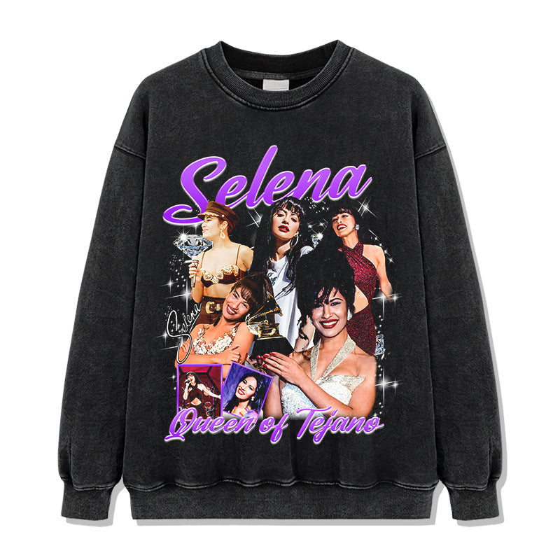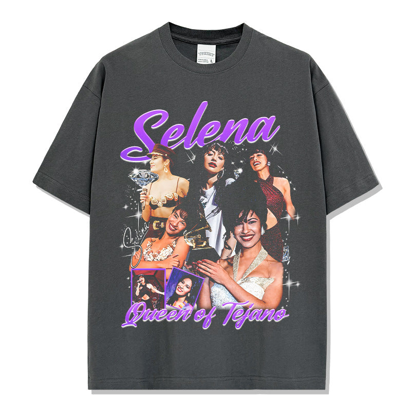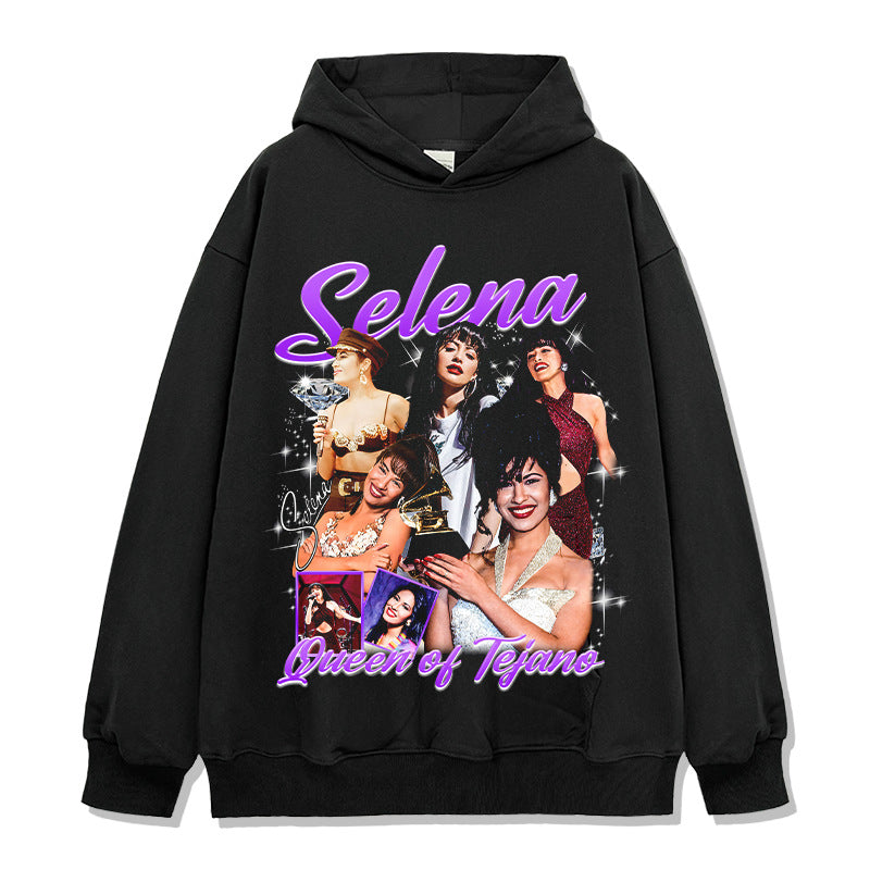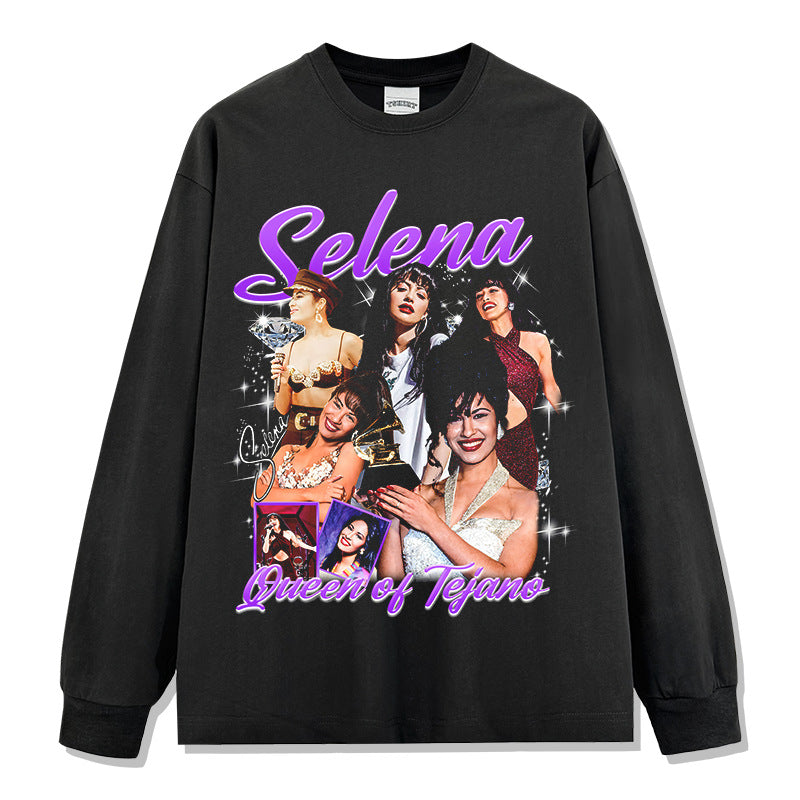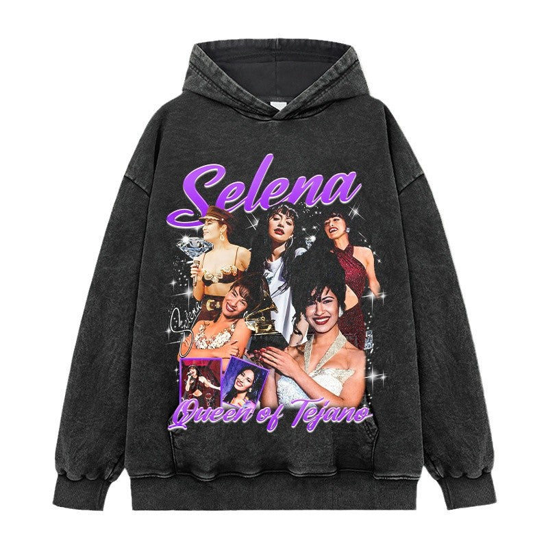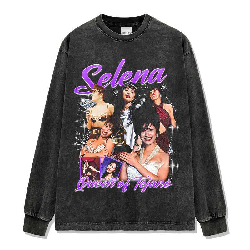 Selena Printed Short Sleeve T-Shirt Washed Old Long Sleeve Loose Casual Heavy Hooded Sweater Men