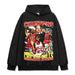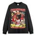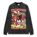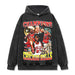 Retro-inspired graffiti letter prints and patch decoration at hem.