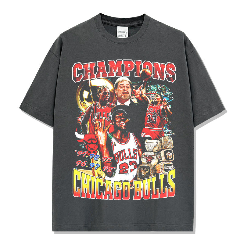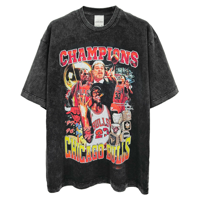 Simple Phil Jackson Zen Printed T-Shirt Vintage Wash Loose Casual Short Sleeve