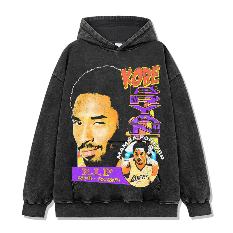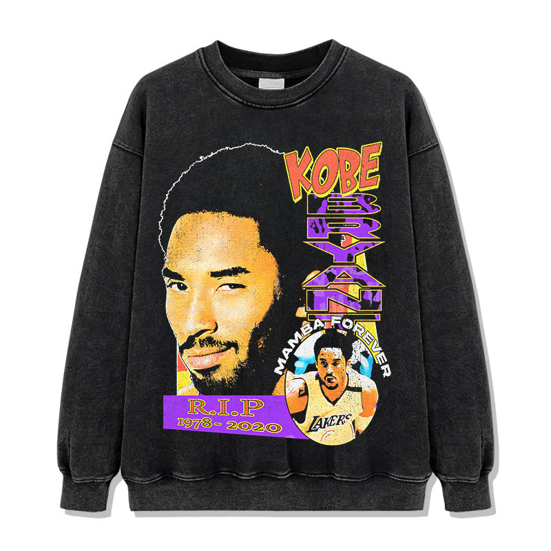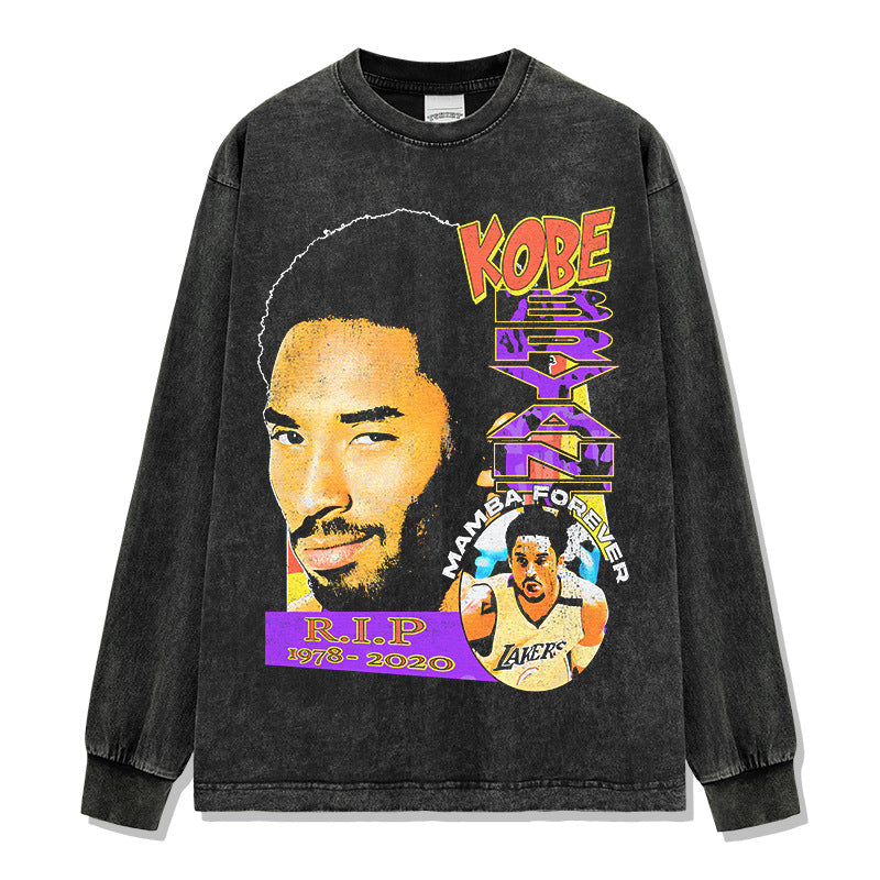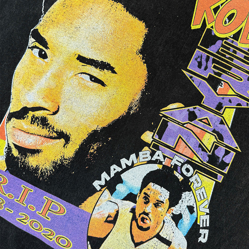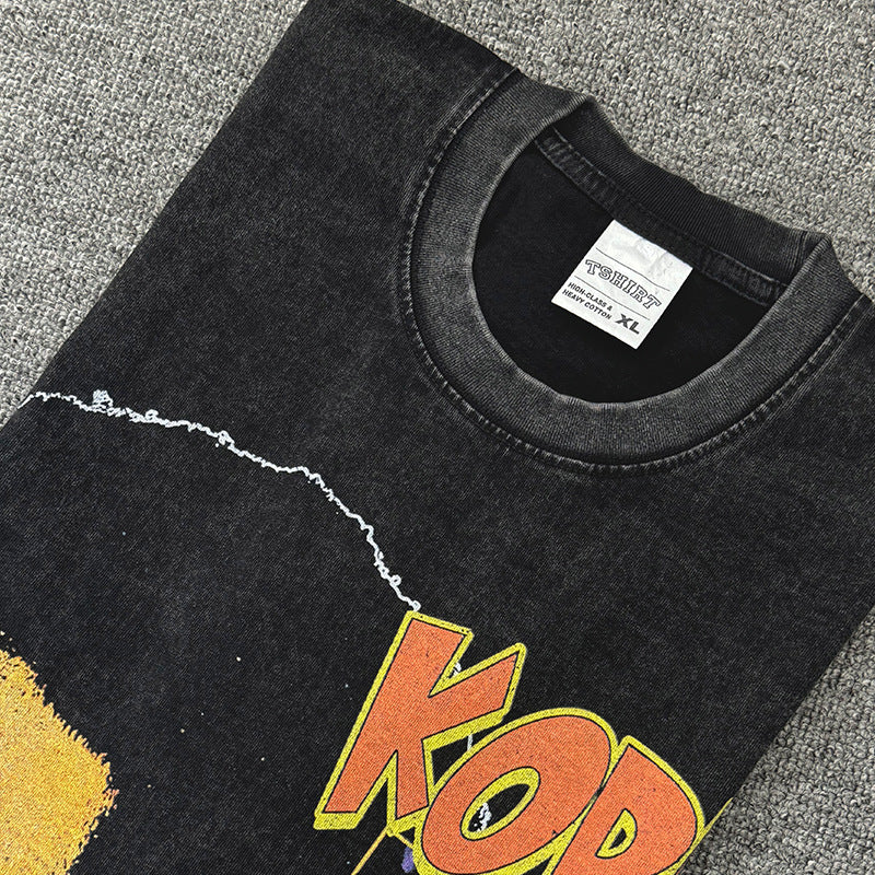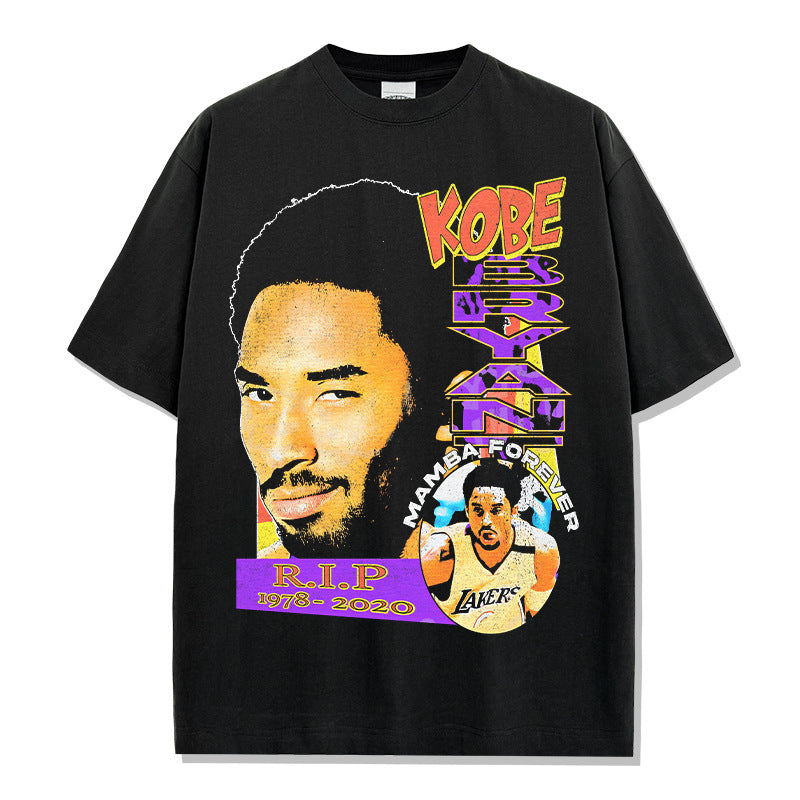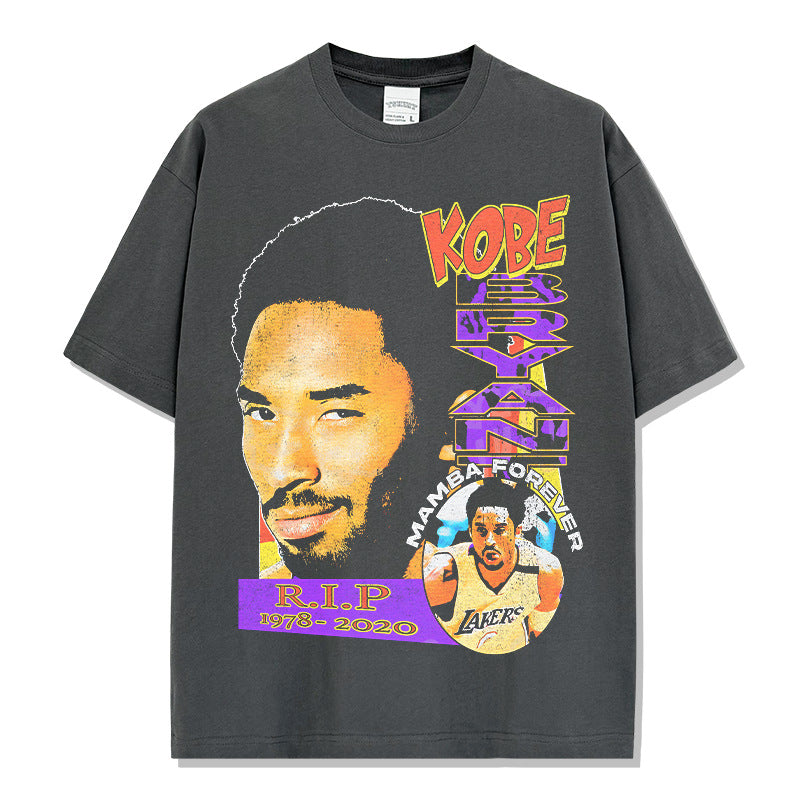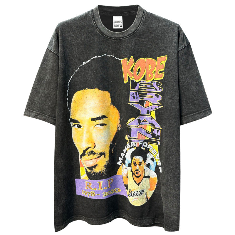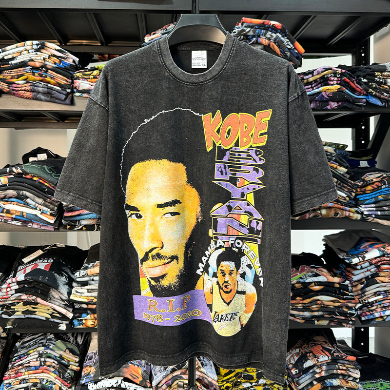 Simple retro Kobe printed short-sleeved T-shirt g high street washed loose heavy cotton small neckline t