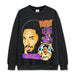 Retro-inspired graffiti letter prints and patch decoration at hem.