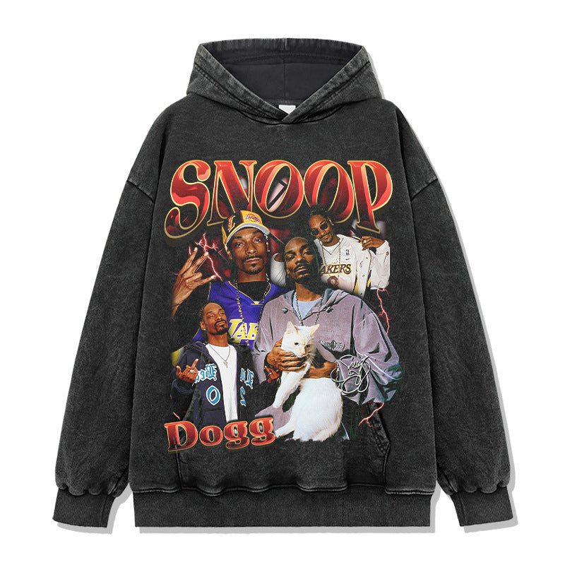Snoop Dogg Printed Short Sleeve T-Shirt Washed Long Sleeve Loose Hooded Sweater
