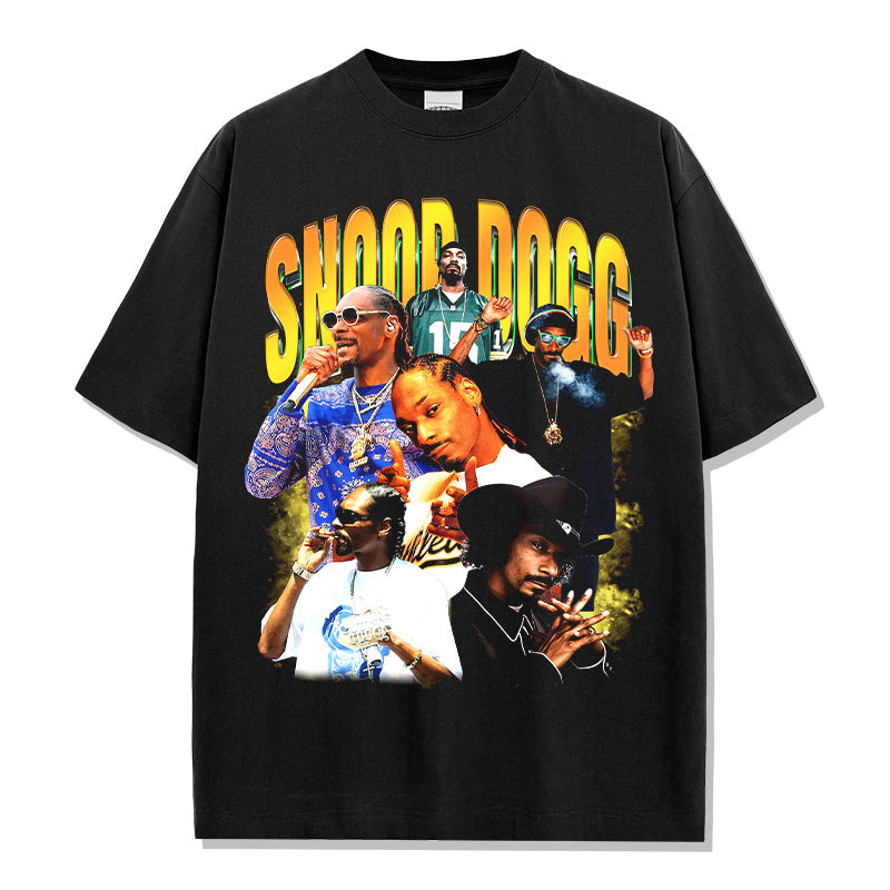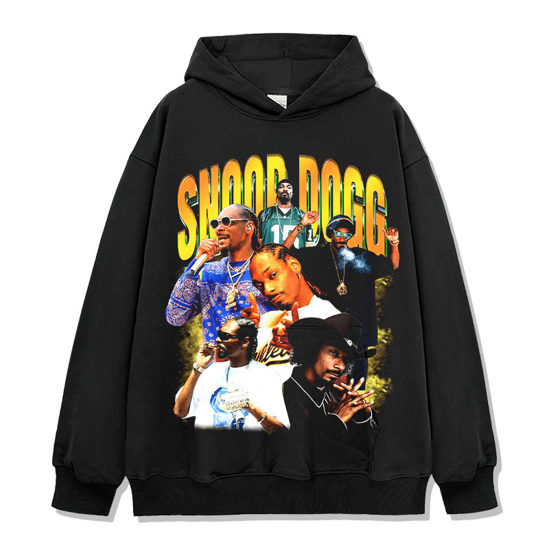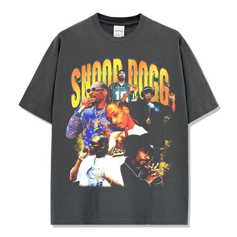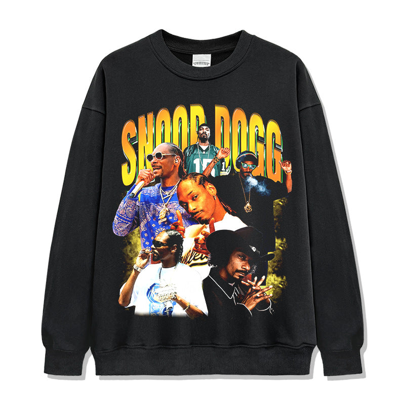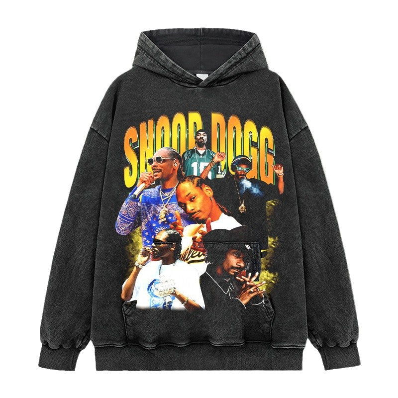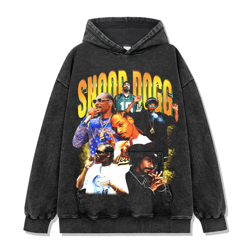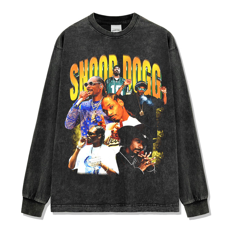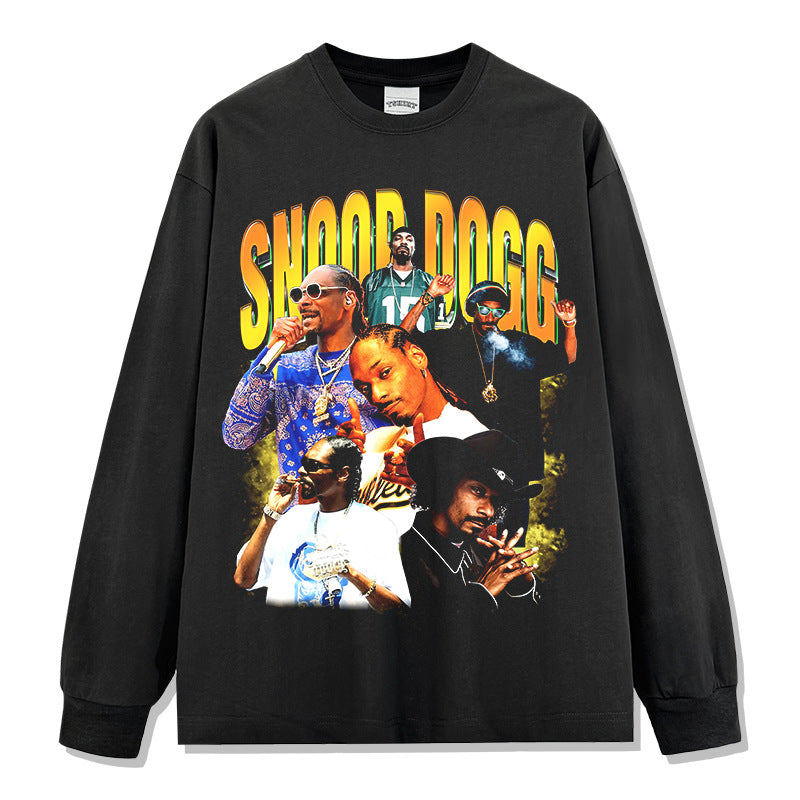 Snoop Dogg Printed Washed Short Sleeve T-Shirt Crew Neck Long Sleeve Hooded Sweater