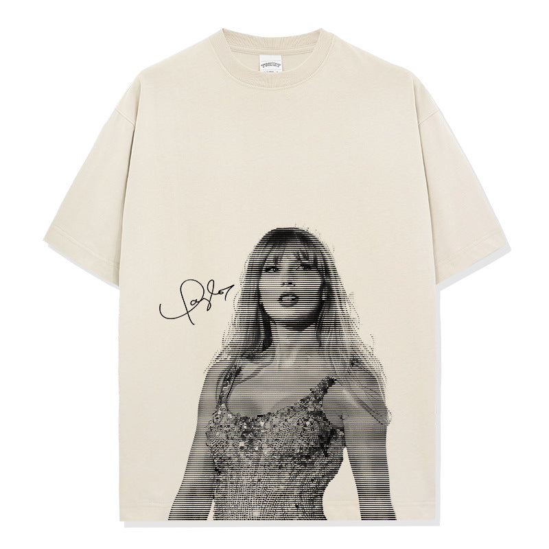Taylor Swift Mildew Printed Short Sleeve T-Shirt Men's and Women's Summer Casual Loose Vintage Tide