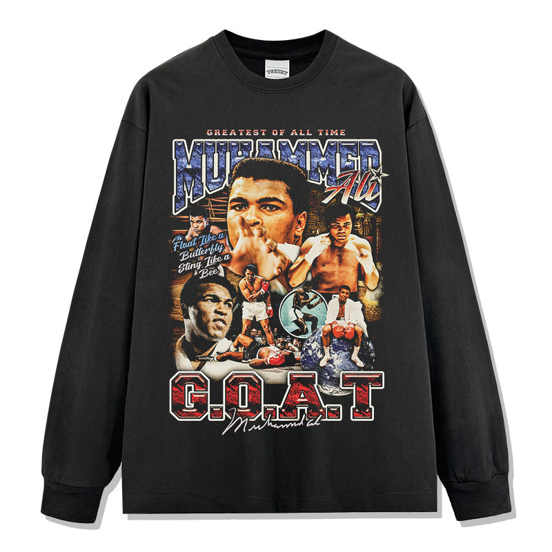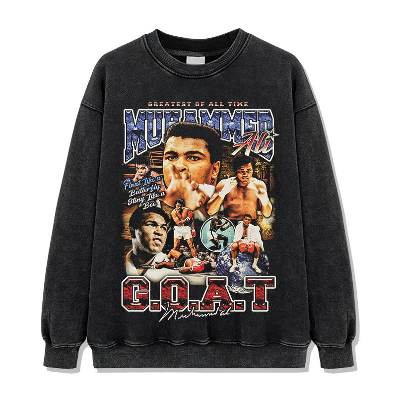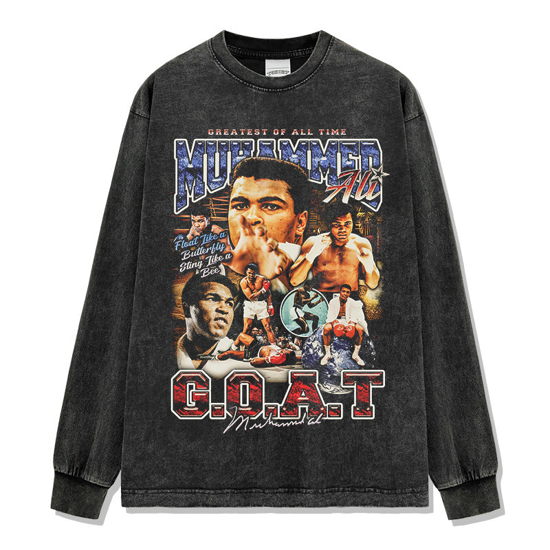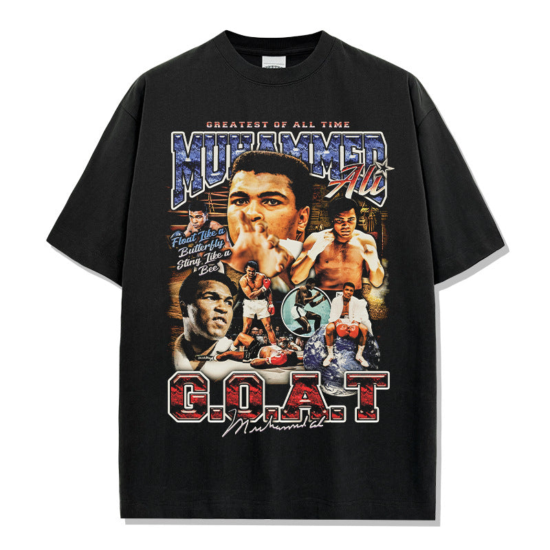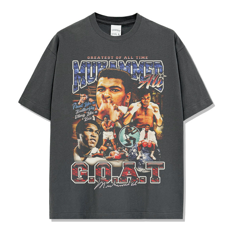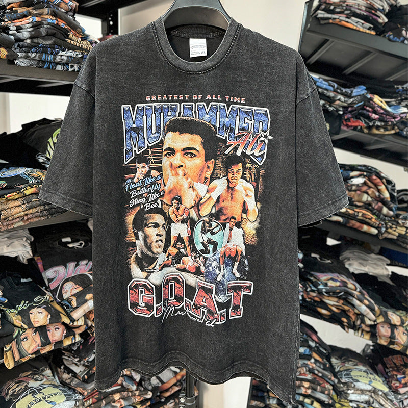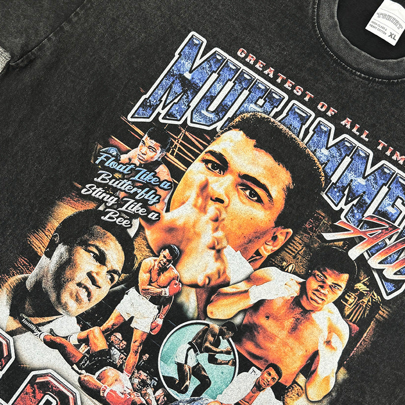 Vintage Ali Muhammad Ali Printed Short Sleeve T-Shirt Washed Heavy Cotton Vintag Tide T