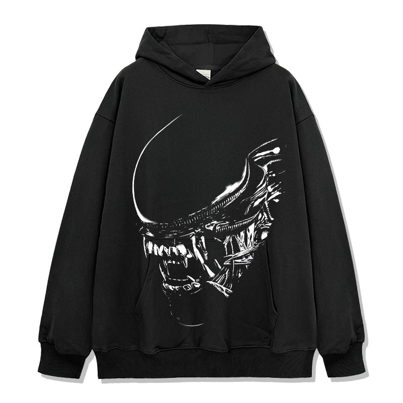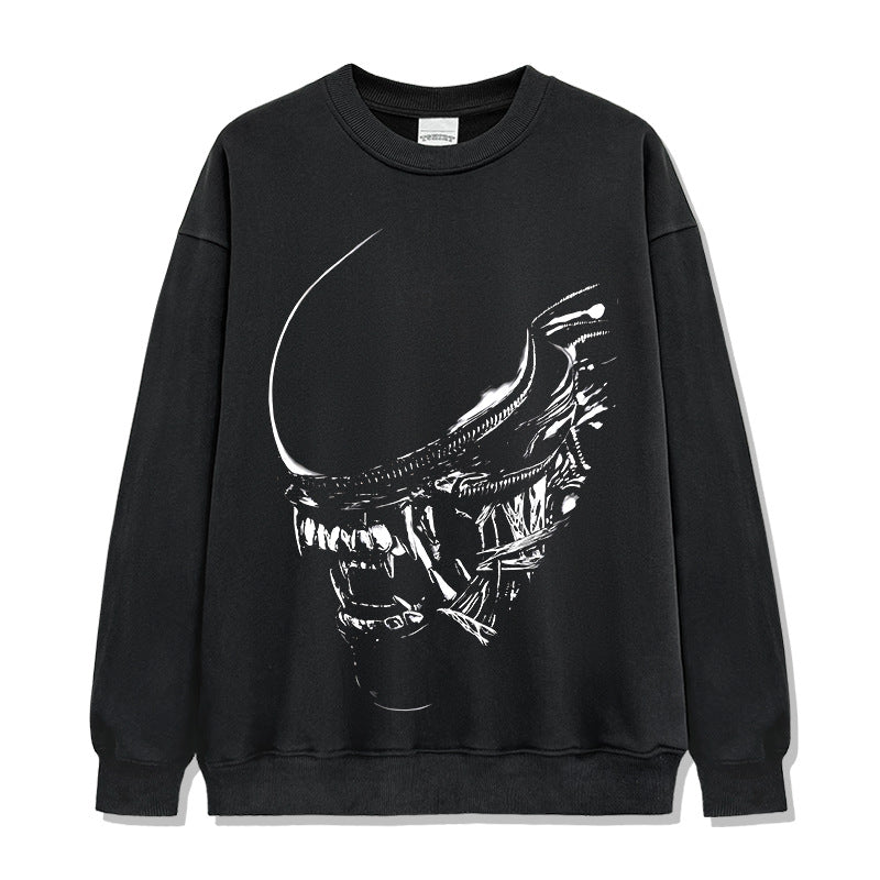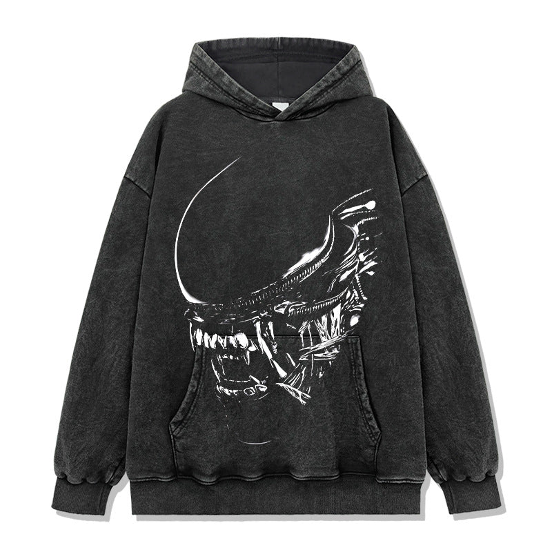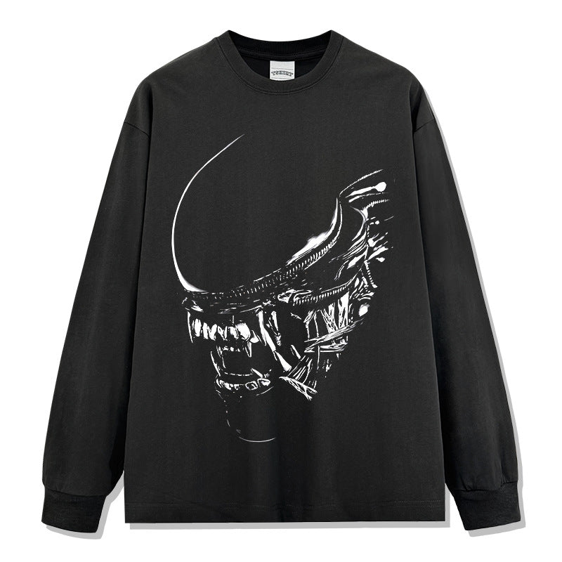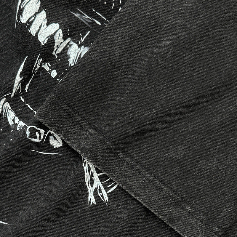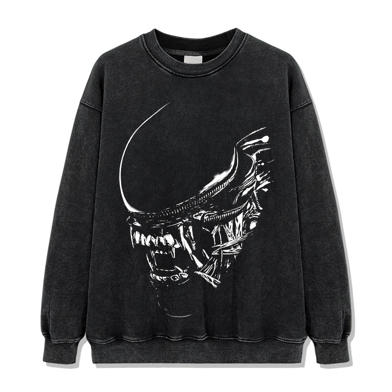 Vintage Alien Xenomorph Printed T-Shirt Vintage Washed Loose Heavy Crew Neck Short Sleeve