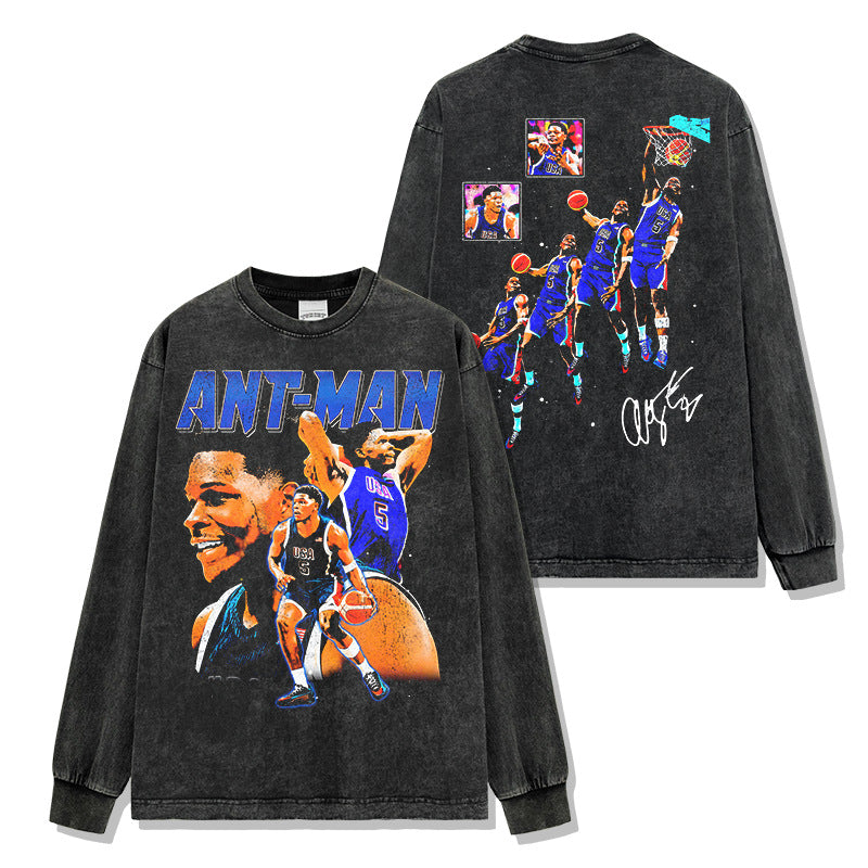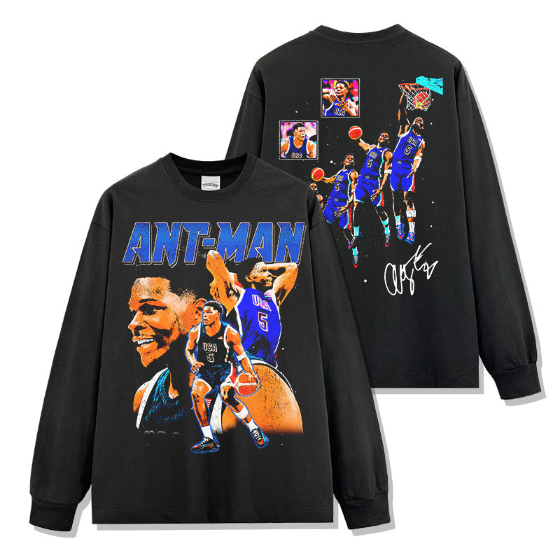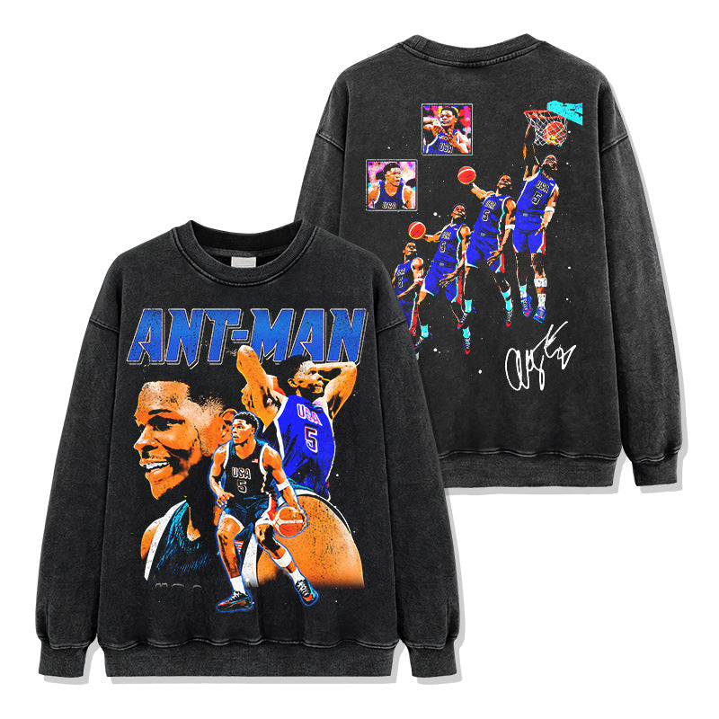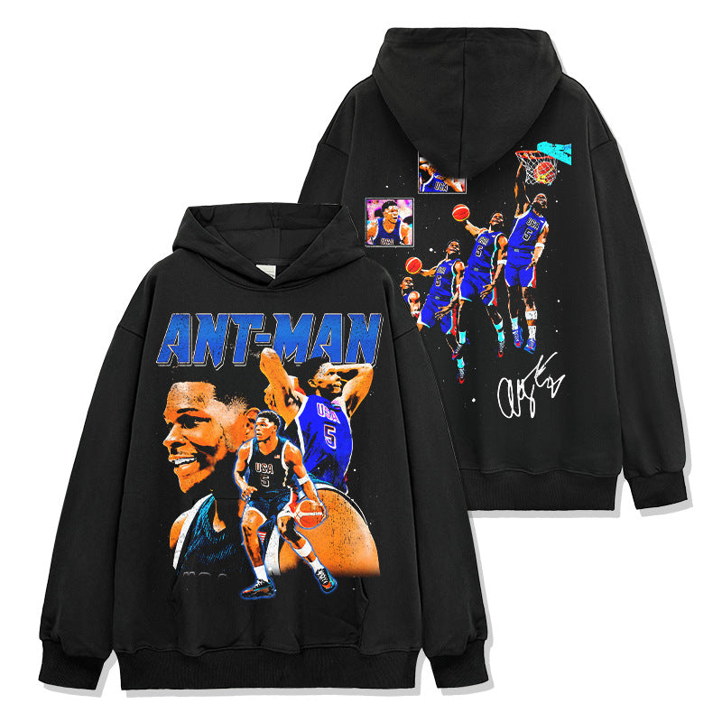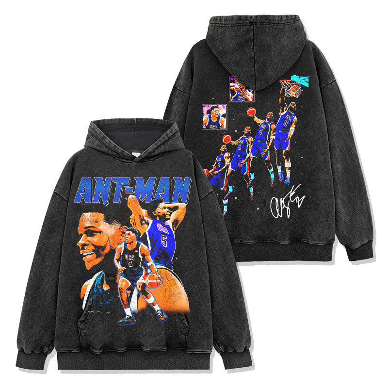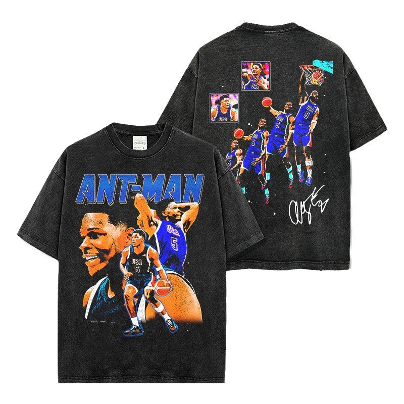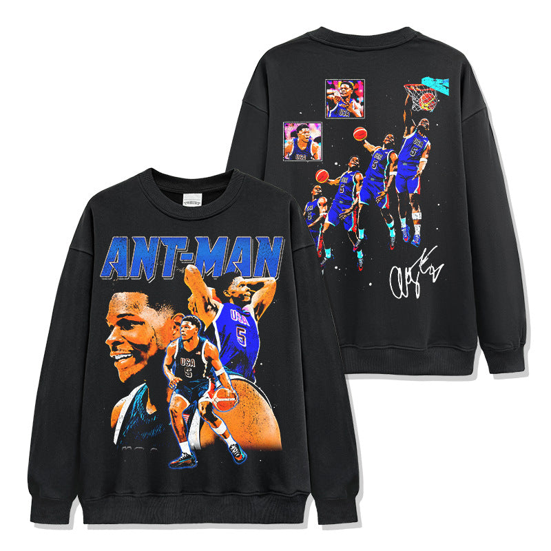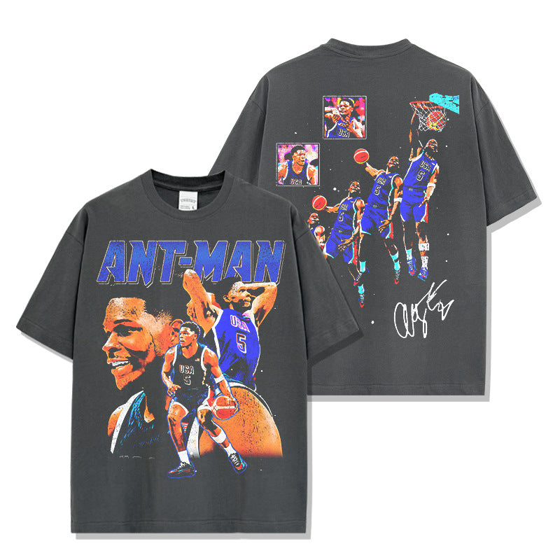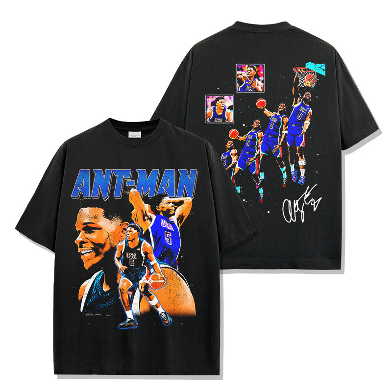 Vintage Anthony Edwards Printed Short Sleeve T-Shirt Crew Neck Hooded Sweater Men