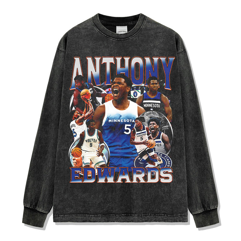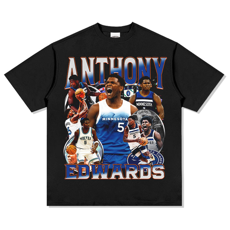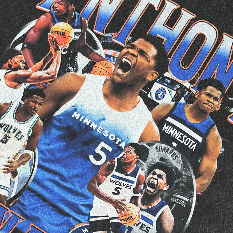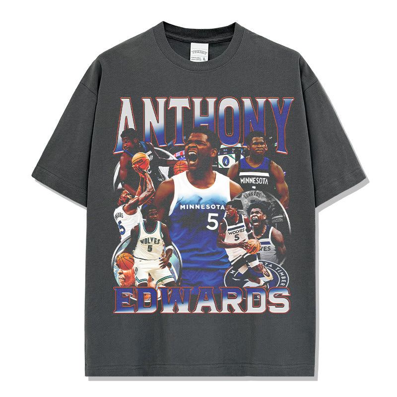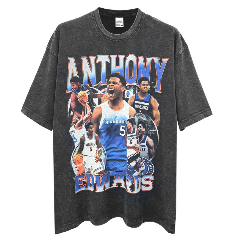 Vintage Anthony Edwards Printed T-Shirt Washed Loose Heavy Small Neckline T