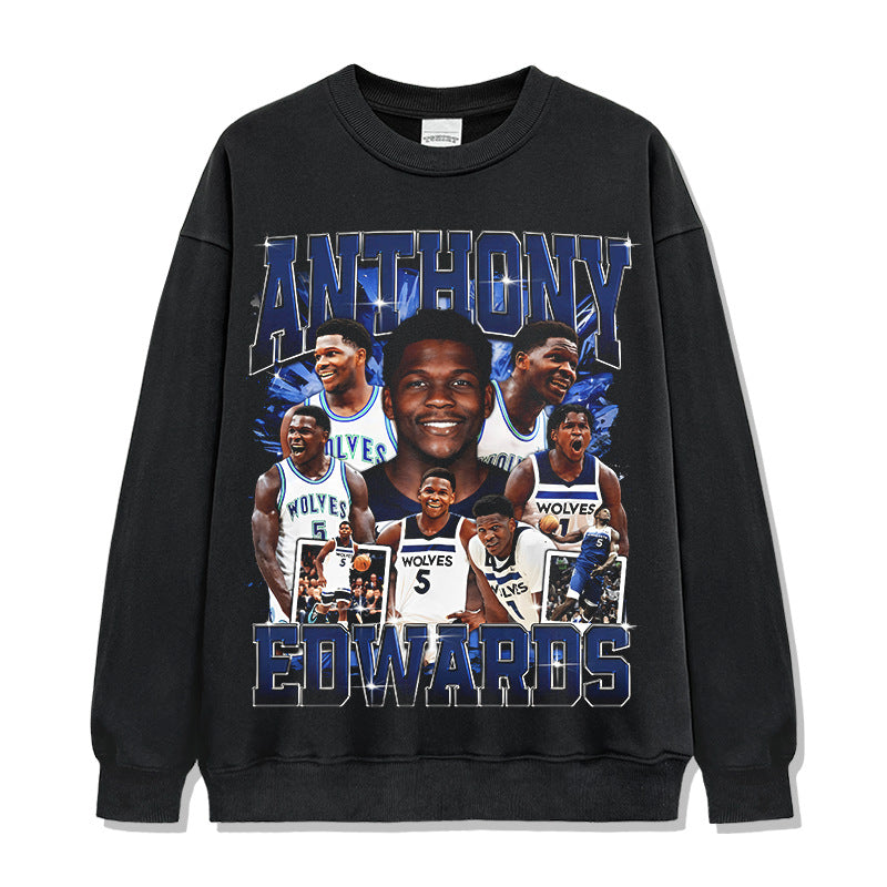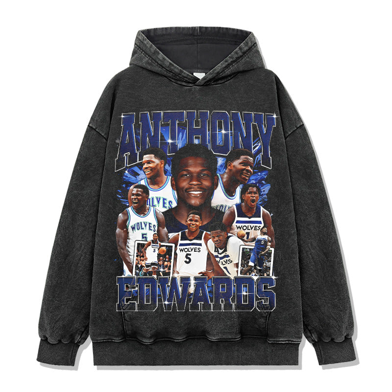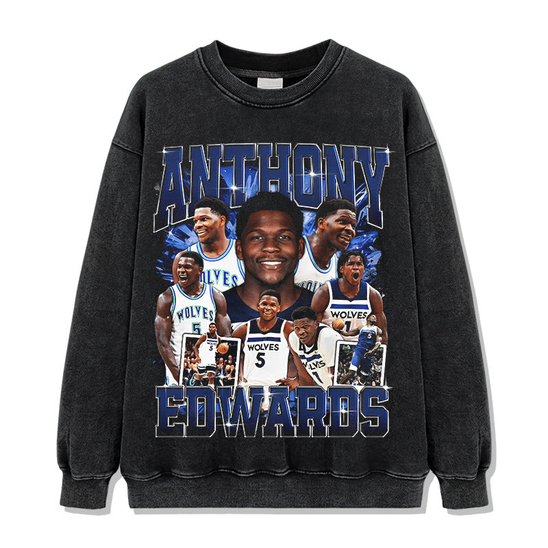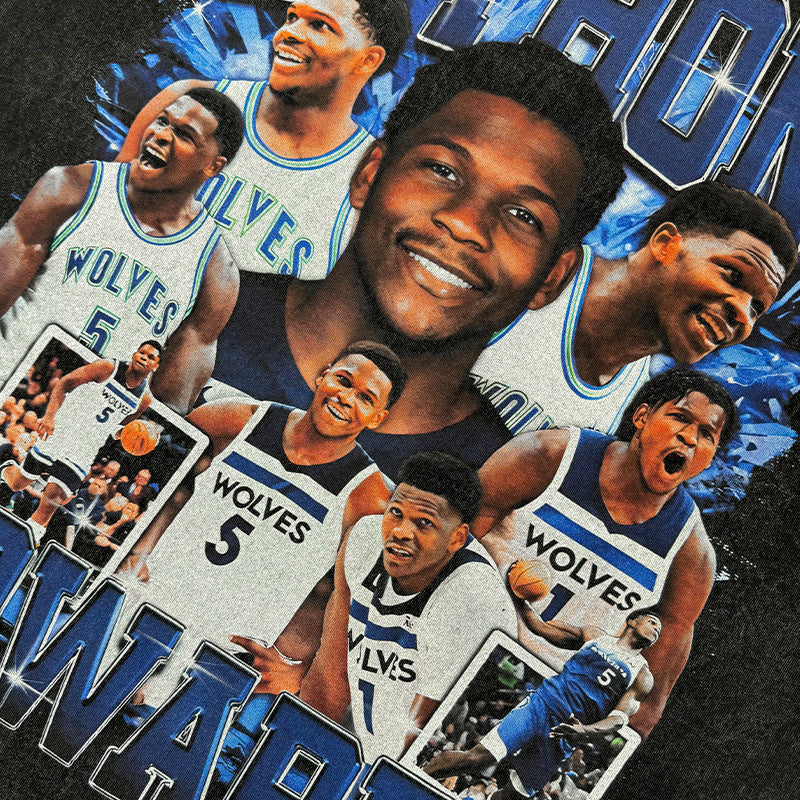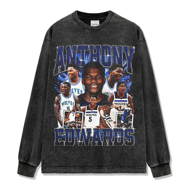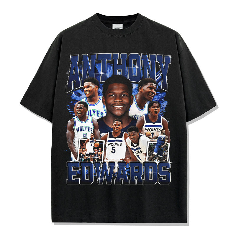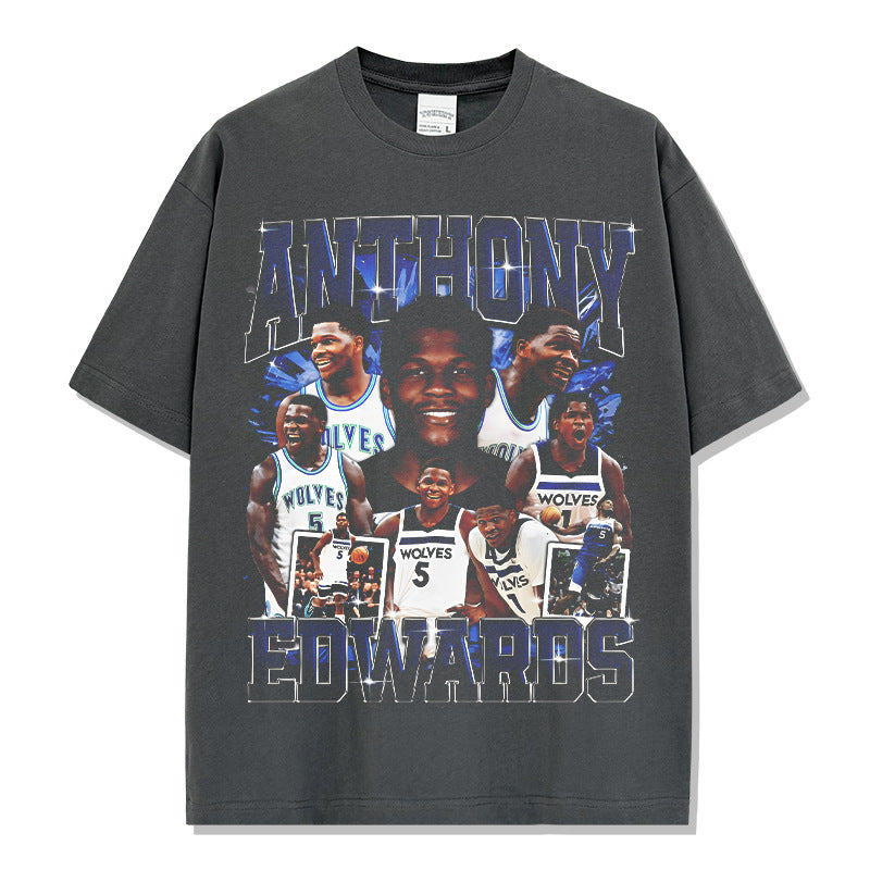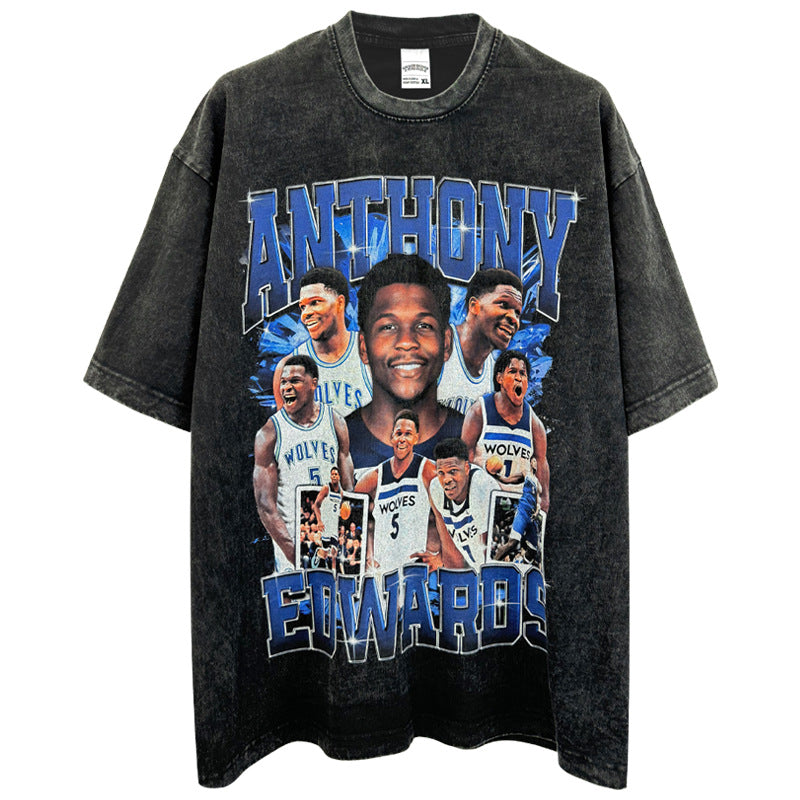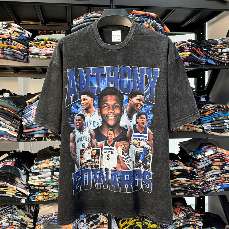 Vintage Anthony Printed Short Sleeve T-Shirt Vintage Washed Loose Heavyweight Crew Neck T