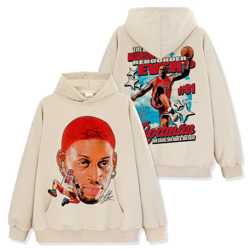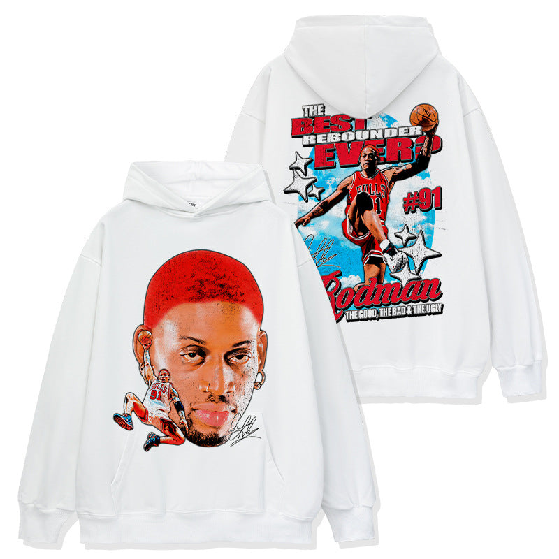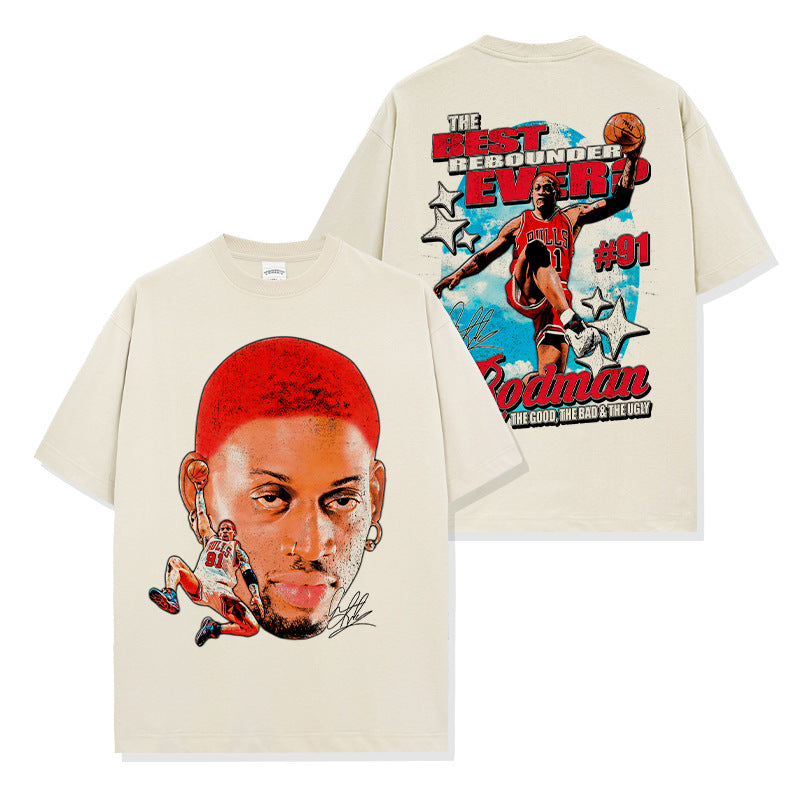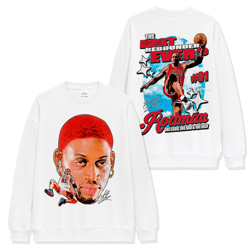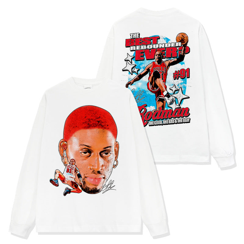Vintage Big Bug Rodman Printed Short Sleeve T-Shirt Heavy Cotton Long Sleeve Crew Neck Hooded Sweater