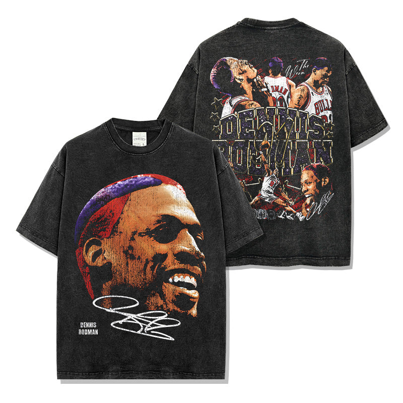 Vintage Big Bug Rodman Printed Short Sleeve T-Shirt Washed Long Sleeve Loose Hooded Sweater