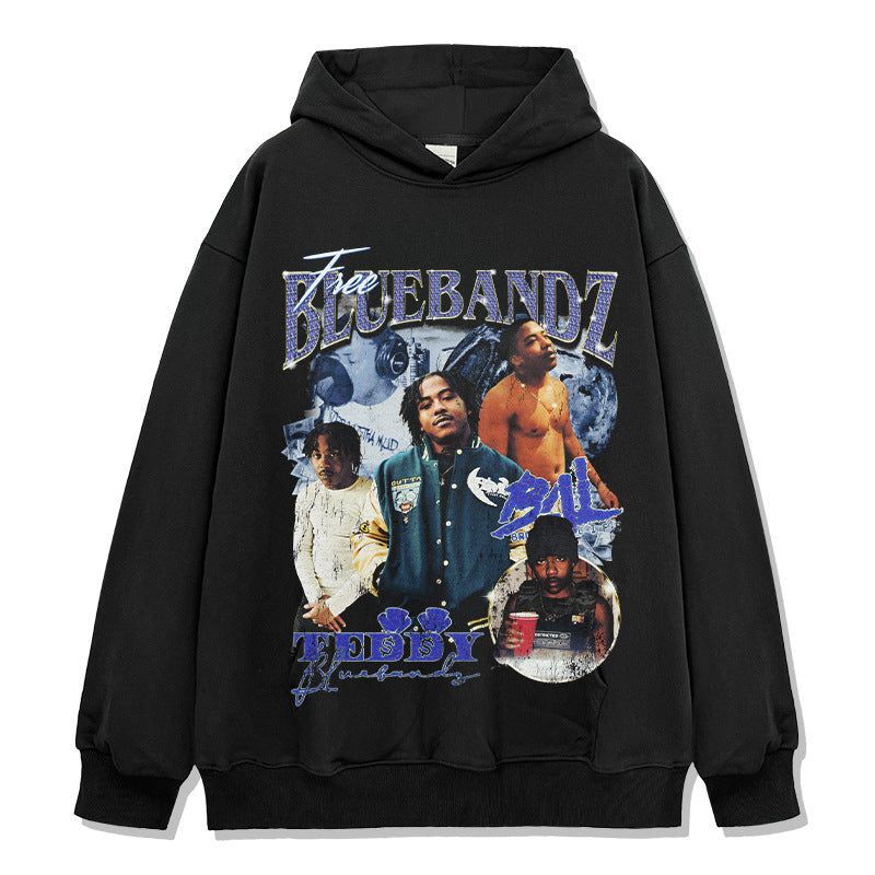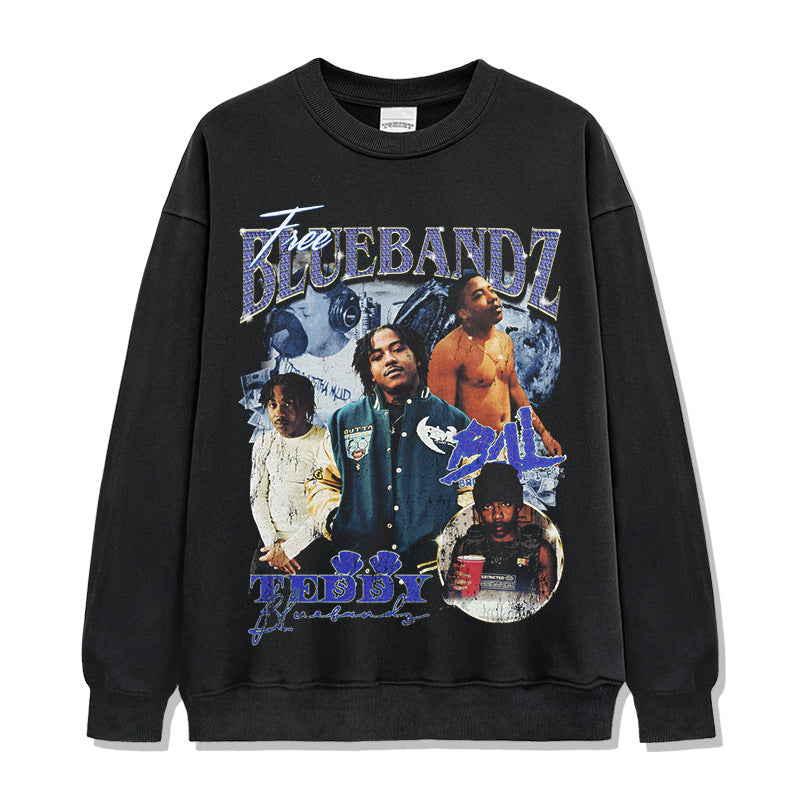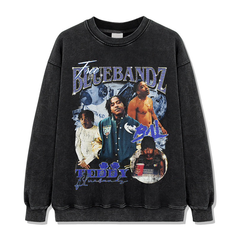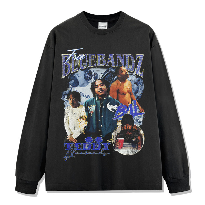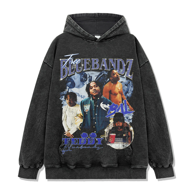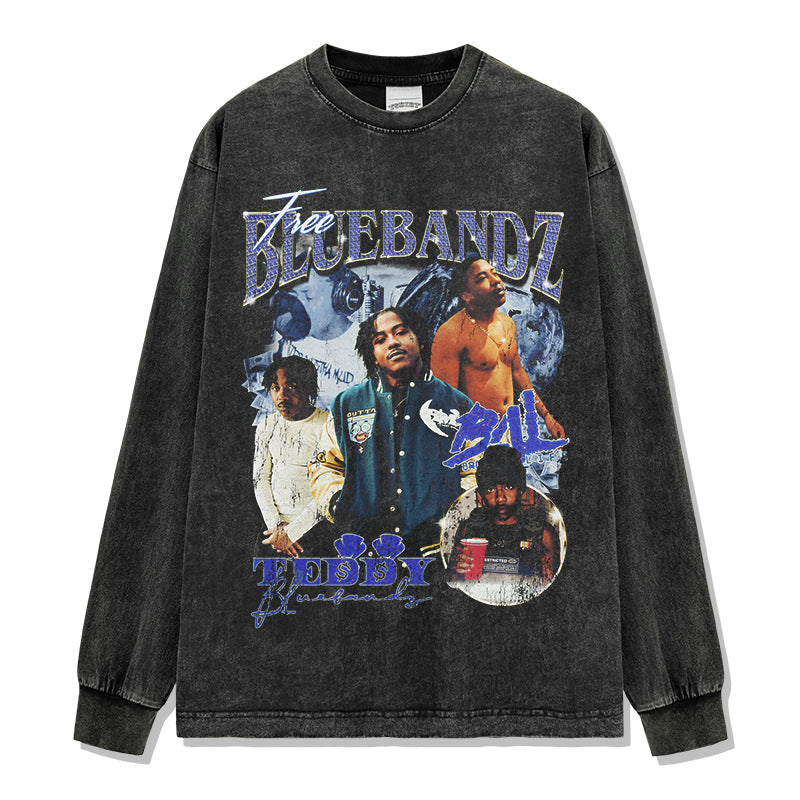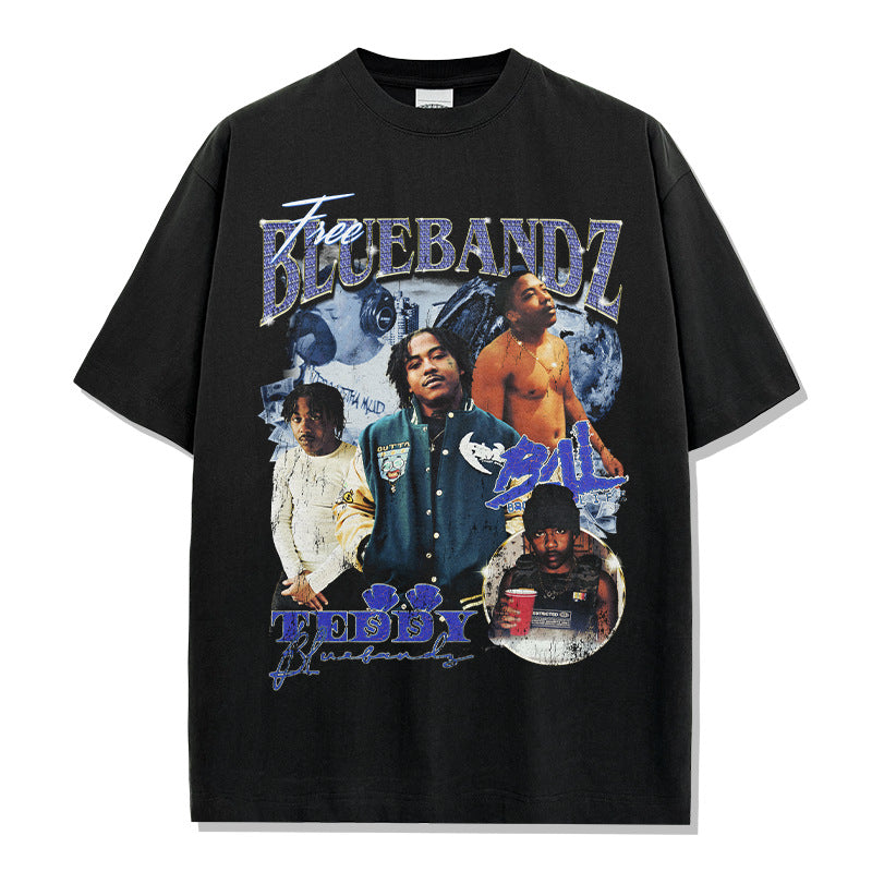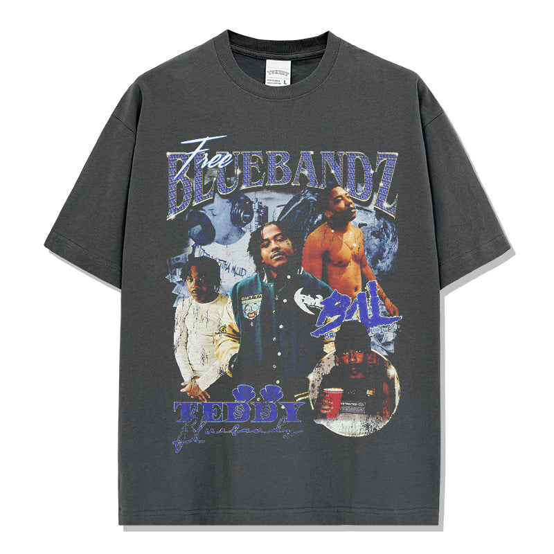 Vintage BluebandzE Printed T-Shirt Vintage Washed Loose Heavy Cotton Crew Neck Short Sleeve