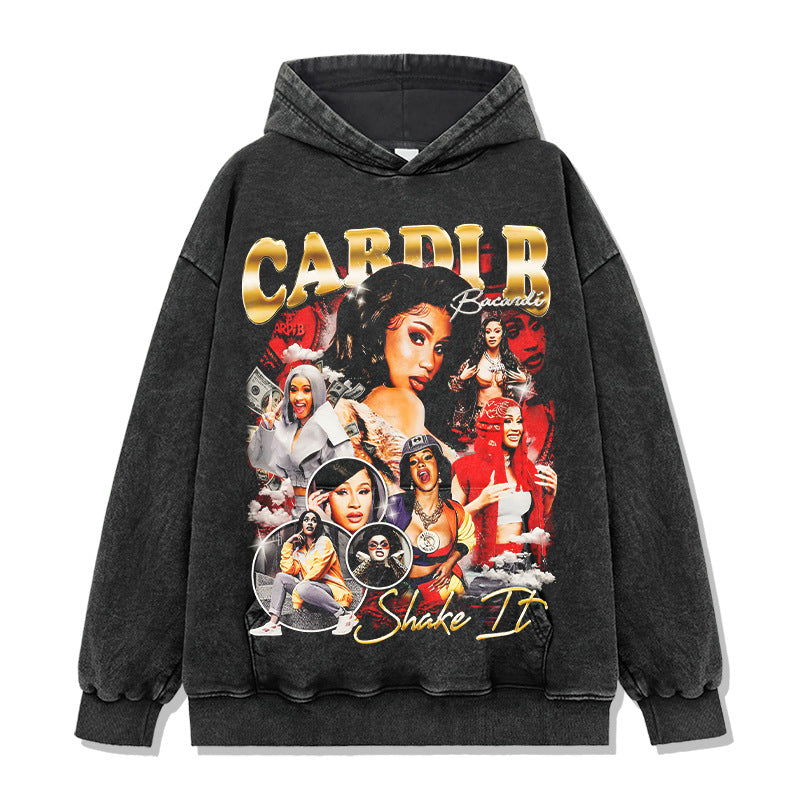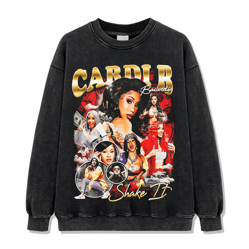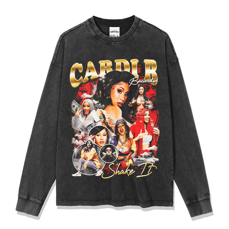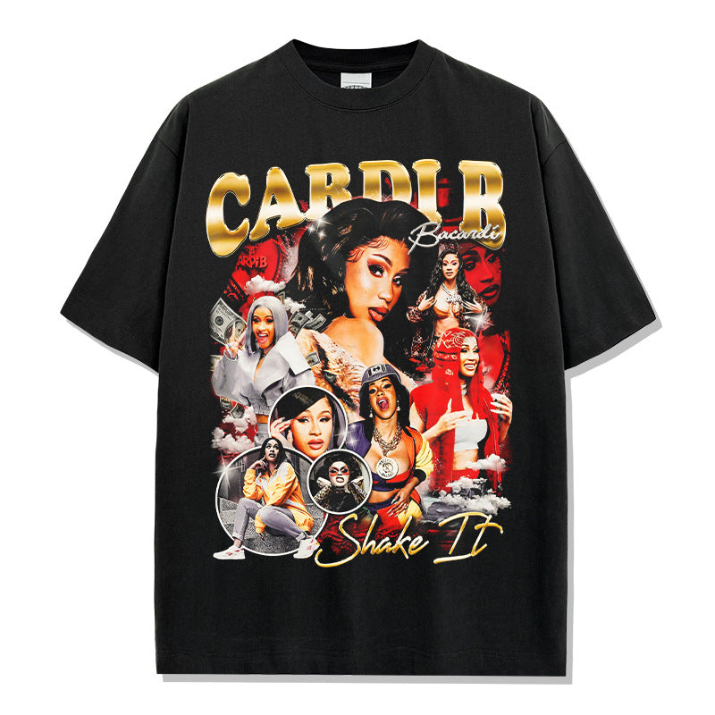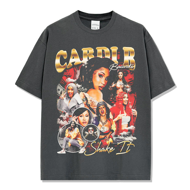 Vintage Cardi B Cardi B Printed Short Sleeve T-Shirt vintage washed heavy cotton tide t