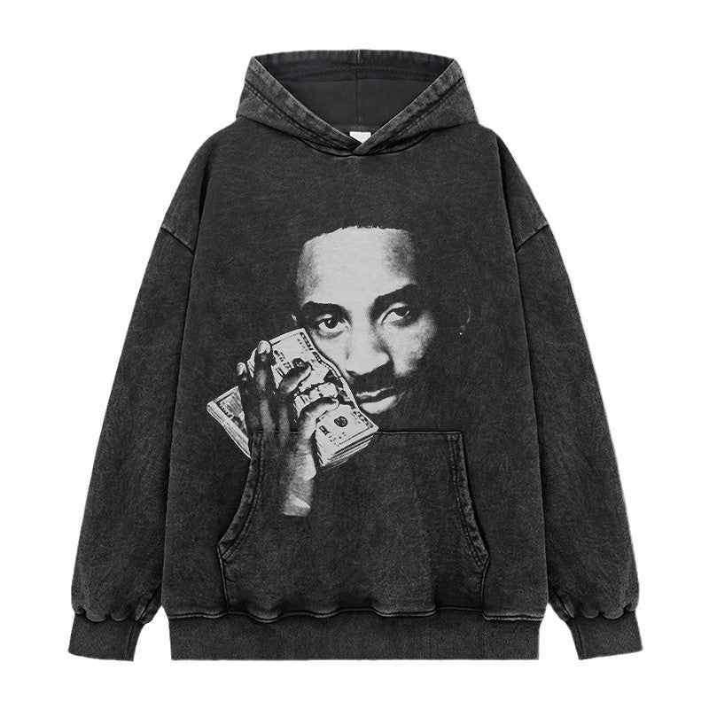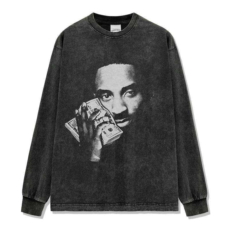 Vintage Celebrity KOBE Printed Short Sleeve T-Shirt Washed Long Sleeve Loose Casual Crew Neck Hooded Sweater