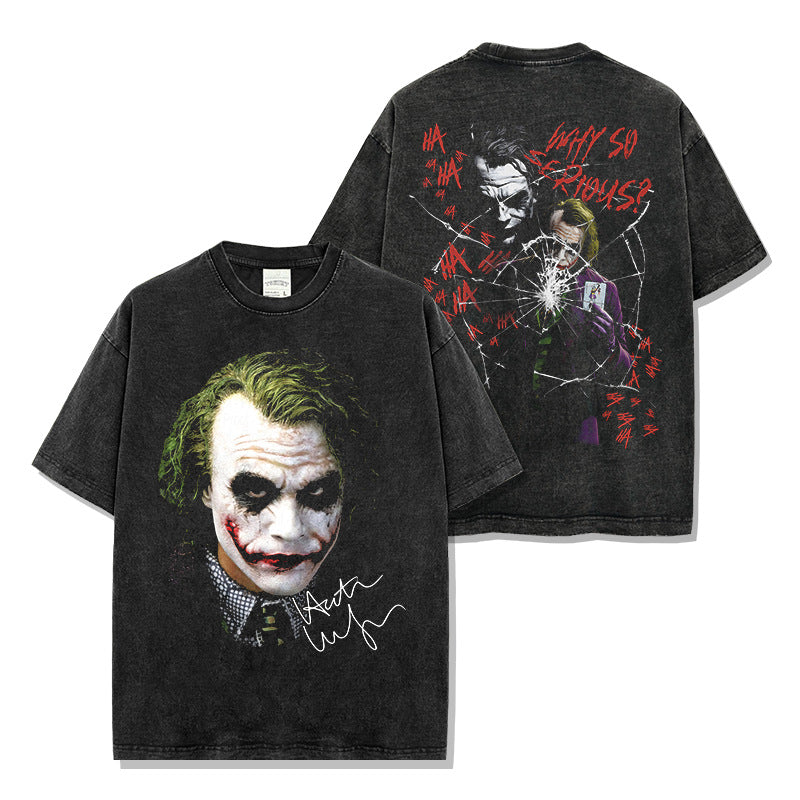 Vintage Clown JOKER Printed Washed Old Loose Short Sleeve T-Shirt Heavy Crew Neck Hooded Sweater