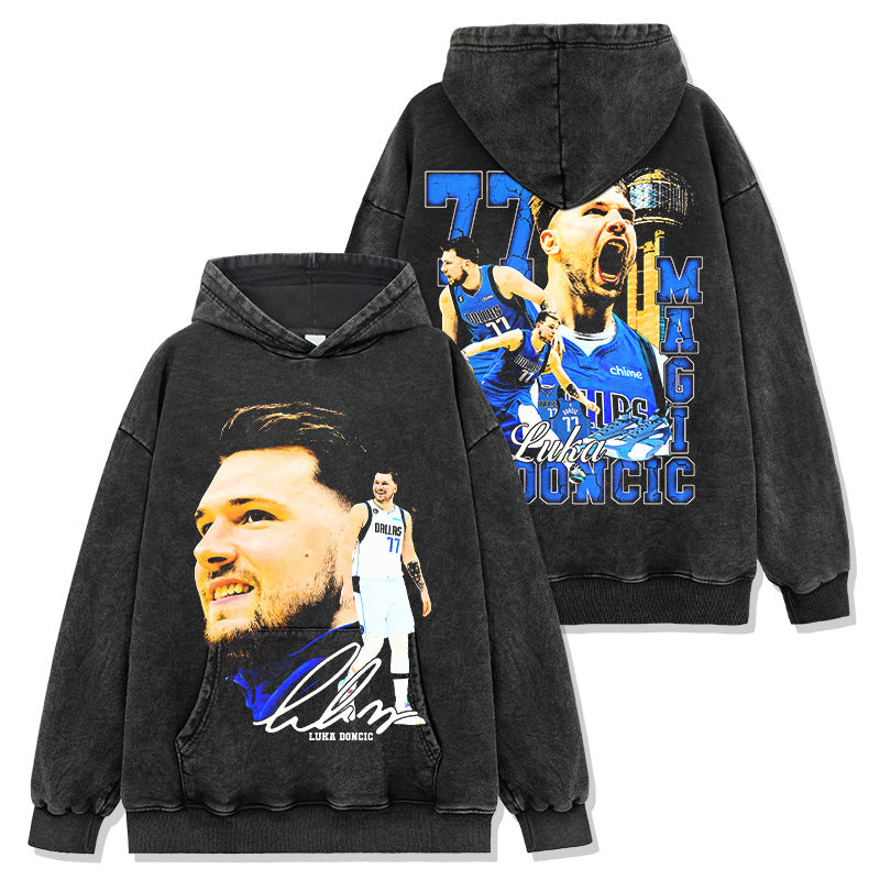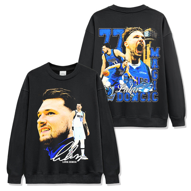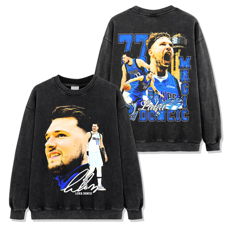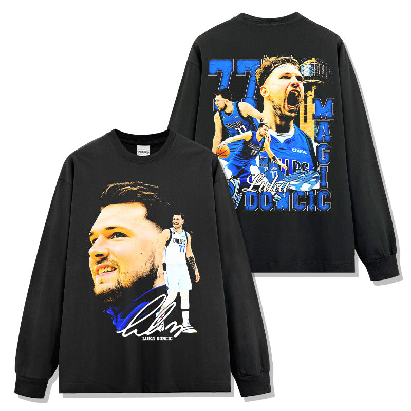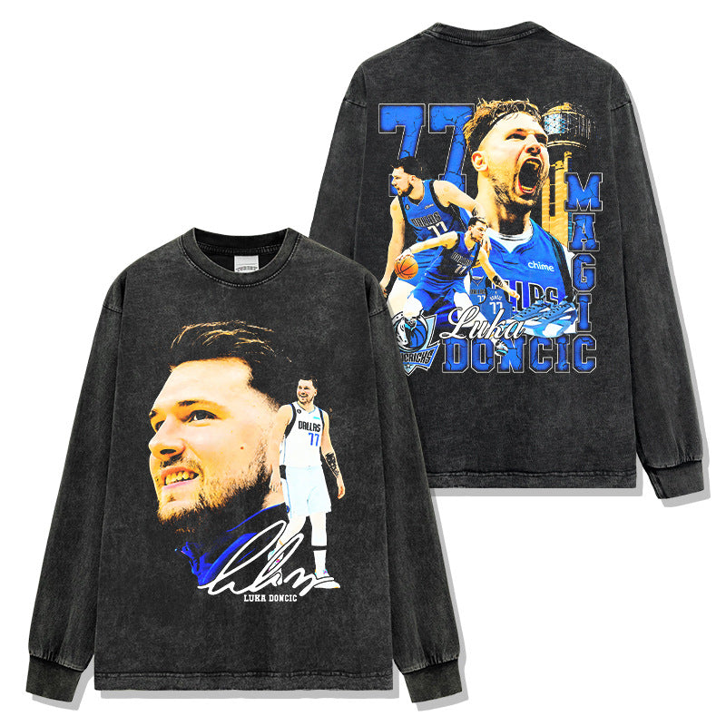 Vintage Doncic reversible print short sleeve T-shirt heavy cotton long sleeve crewneck hooded sweatshirt