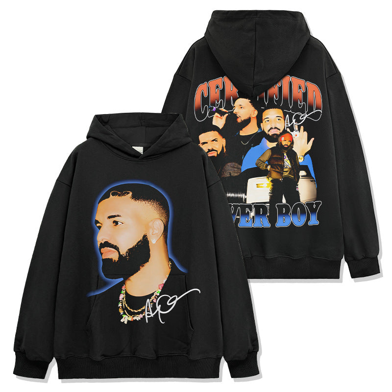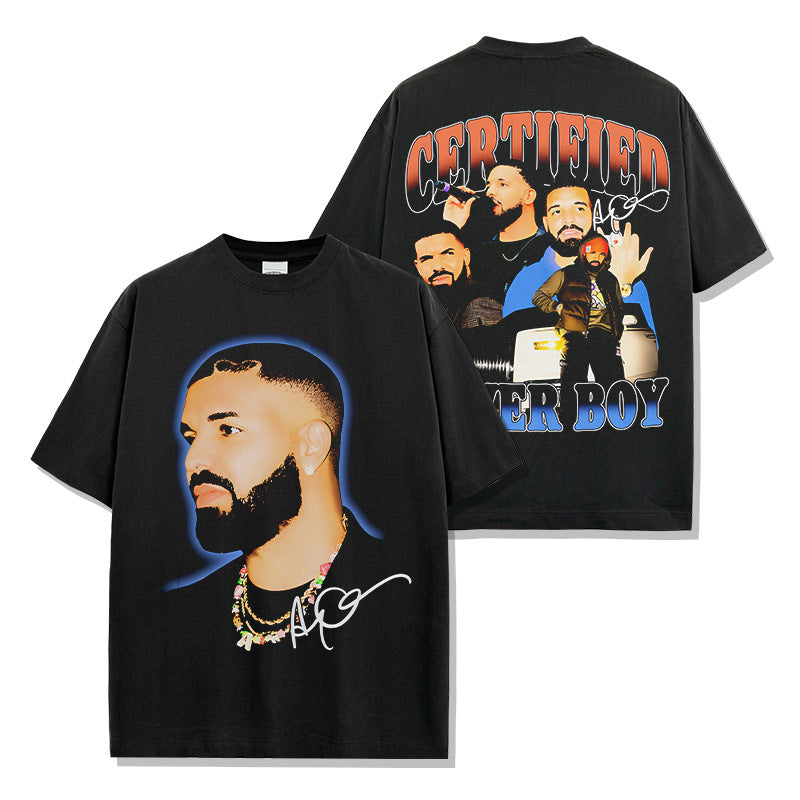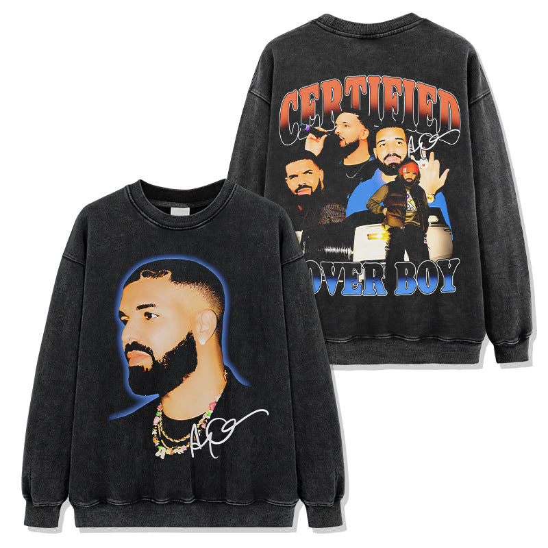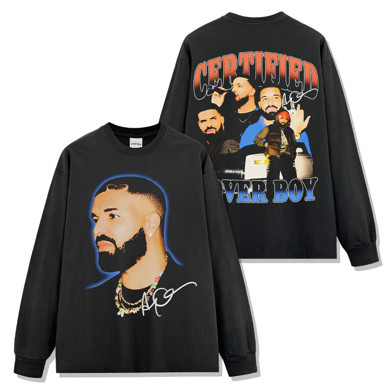 Vintage Drake DRAKE Printed Short Sleeve T-Shirt Washed Long Sleeve Crew Neck Casual Hooded Sweater Men