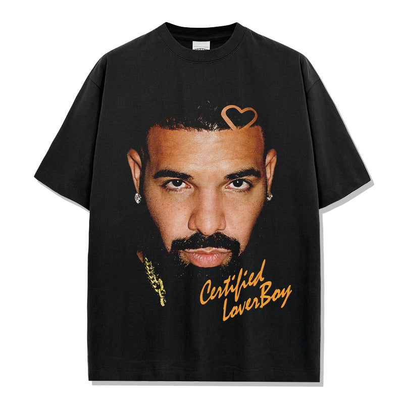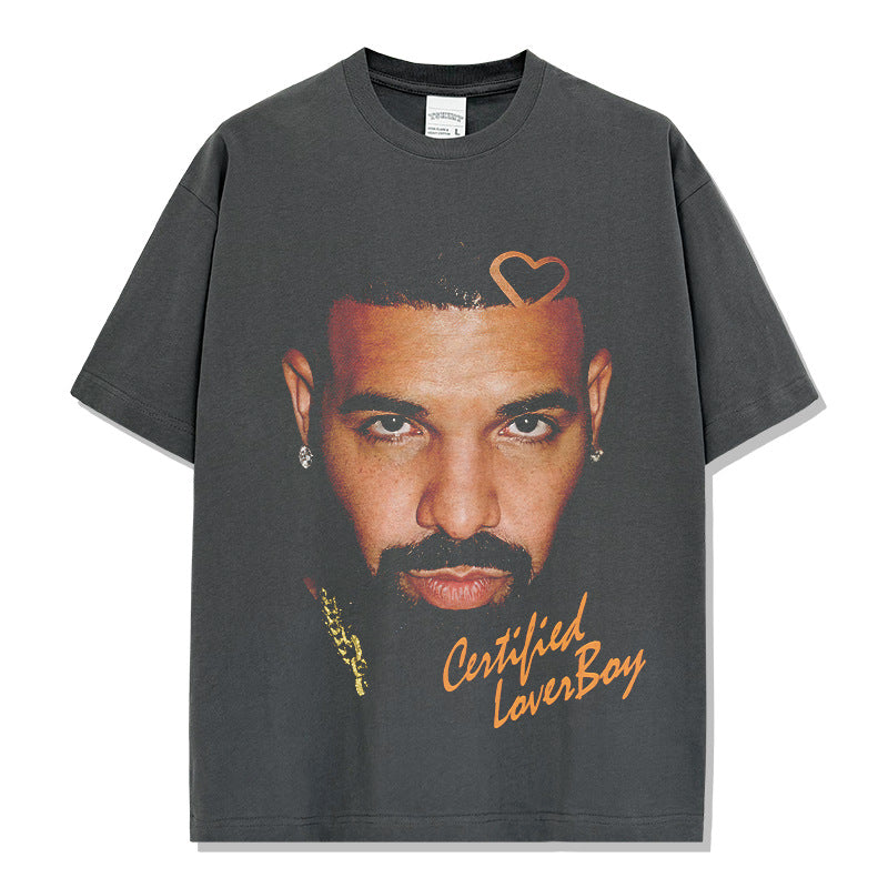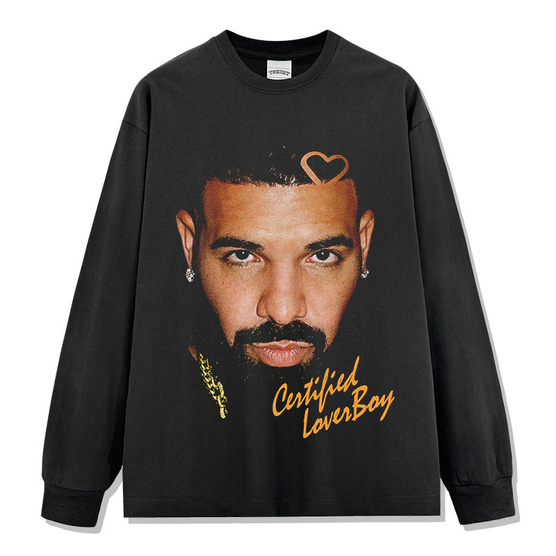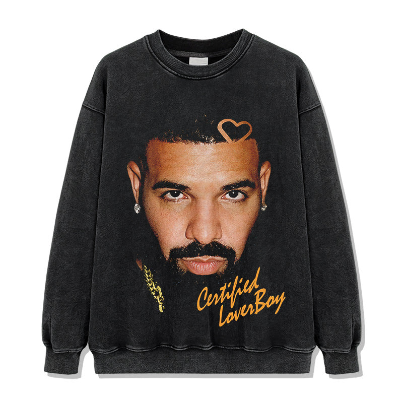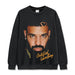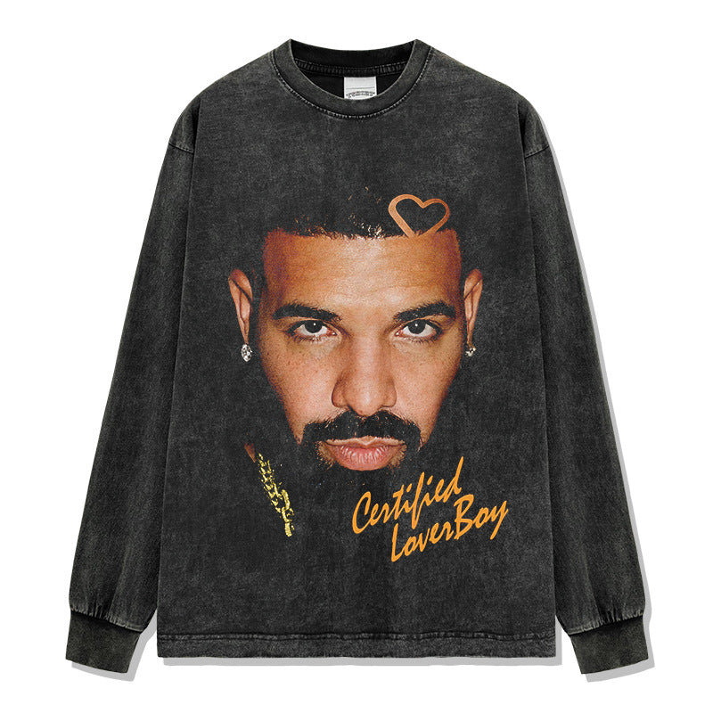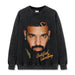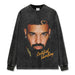 Vintage Drake Printed Short Sleeve T-Shirt Washed Old Long Sleeve Loose Hooded Sweater Men