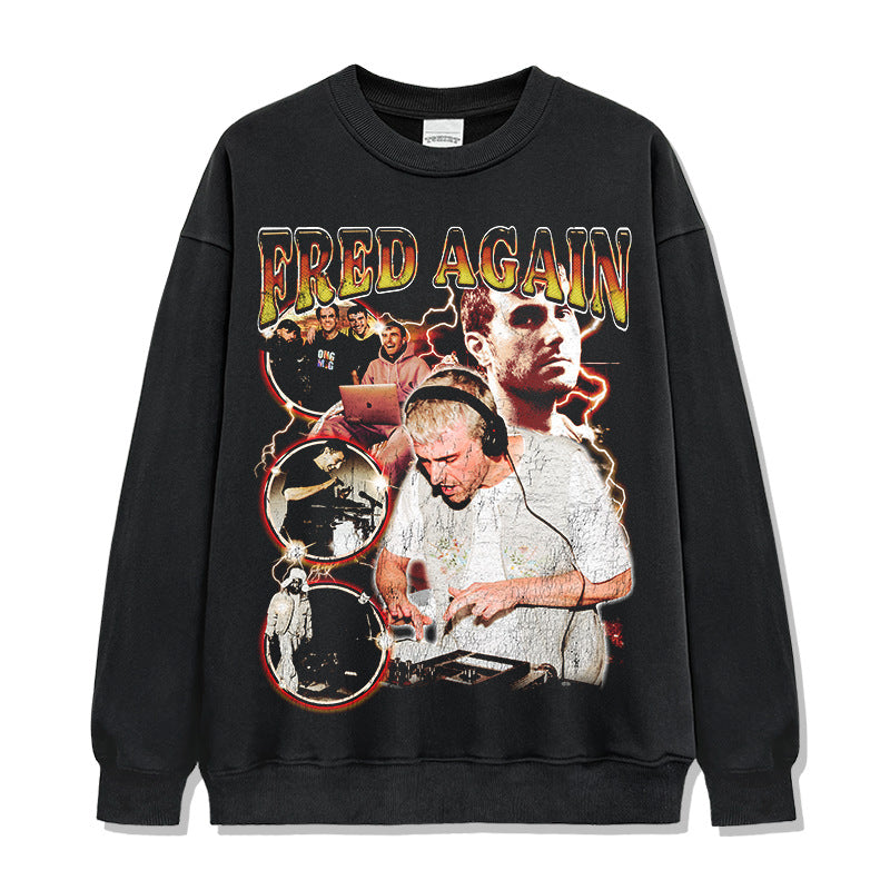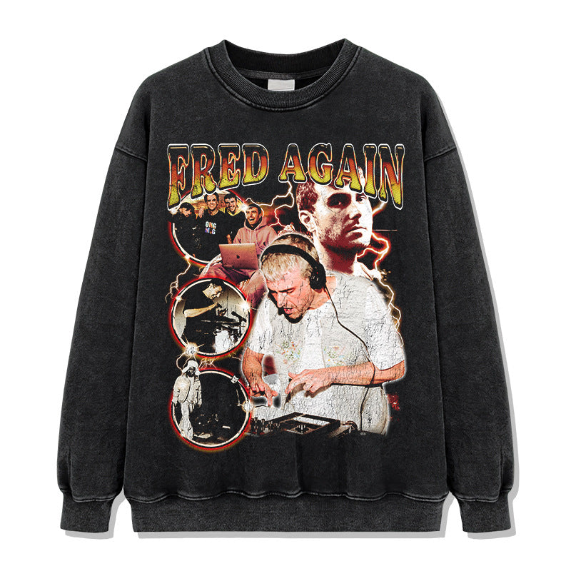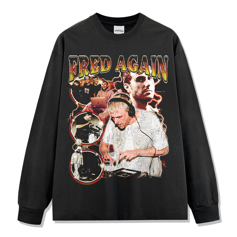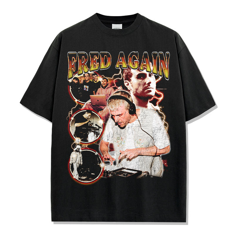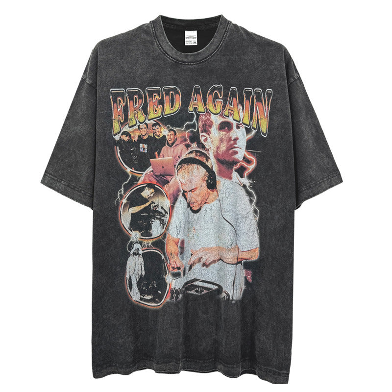 Vintage Fred Again Printed Short Sleeve T-Shirt Vintage Washed Loose Heavy Cotton Crew Neck