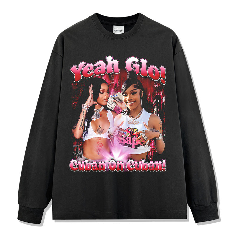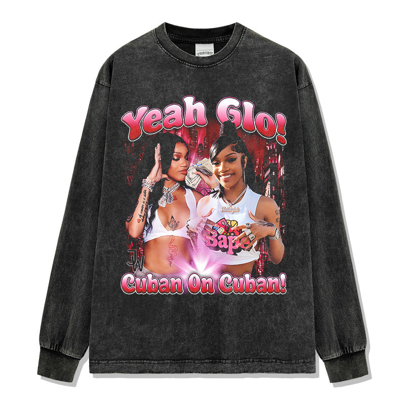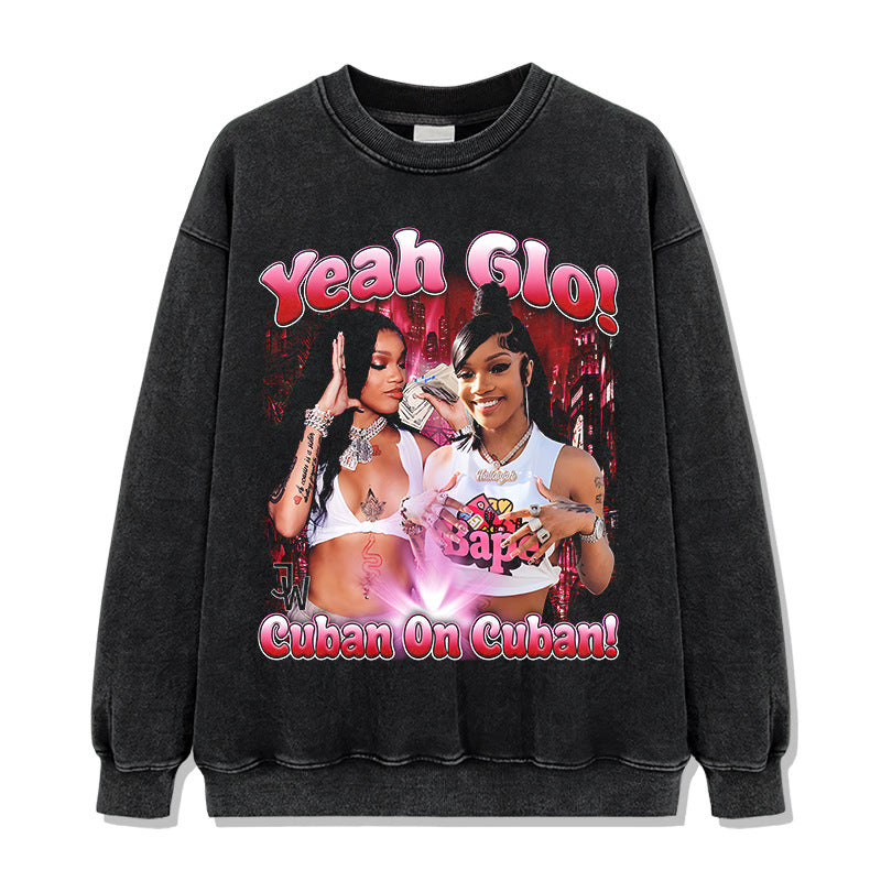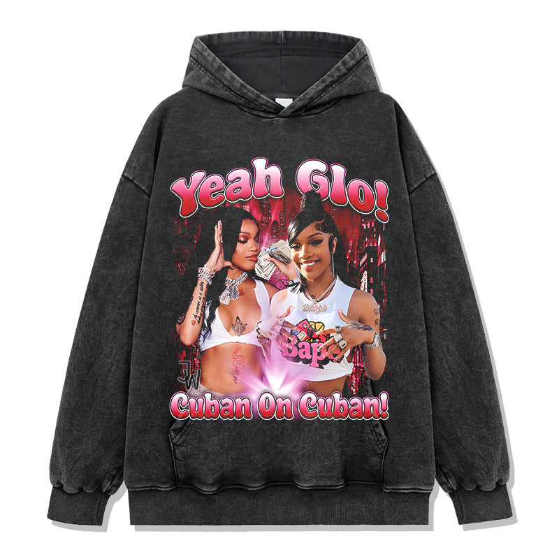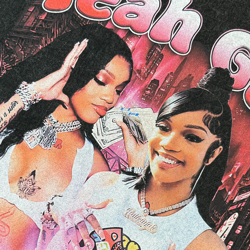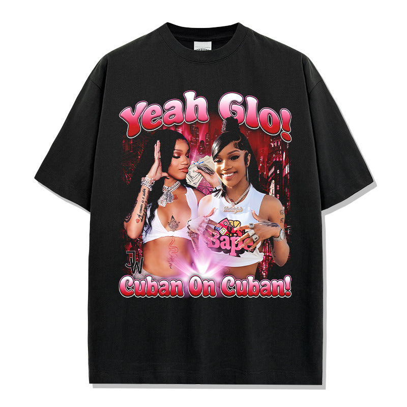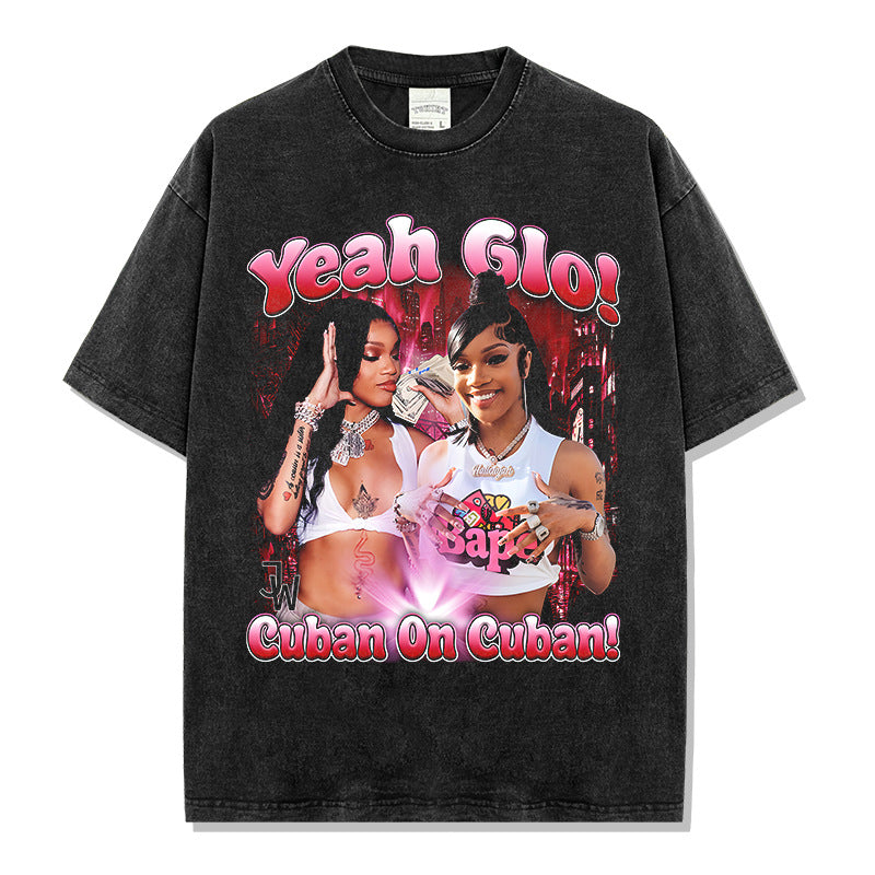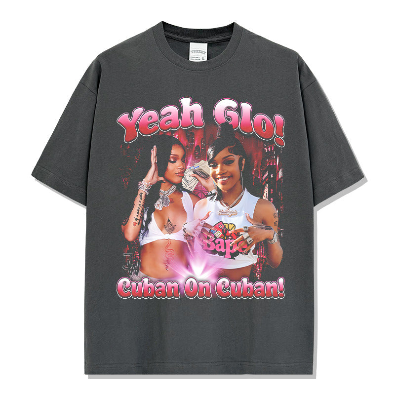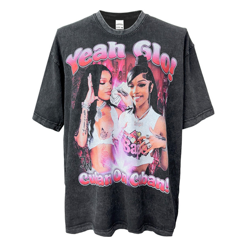 Vintage GloRilla Printed Short Sleeve T-Shirt Washed Heavy Cotton Small Neckline Tide T
