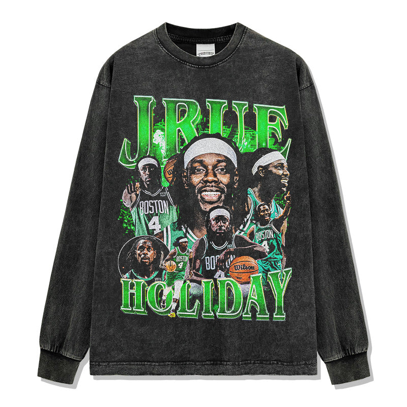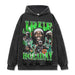 Vintage Halle Wear Holiday Printed Short Sleeve T-Shirt Washed Casual Long Sleeve Crew Neck Hooded Sweater