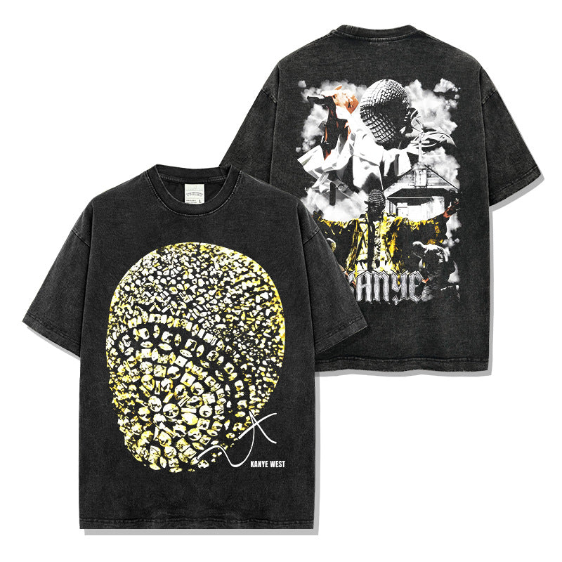 Vintage Hip Hop Kanye Kanye Printed Short Sleeve T-Shirt Washed Long Sleeve Loose Hooded Sweater