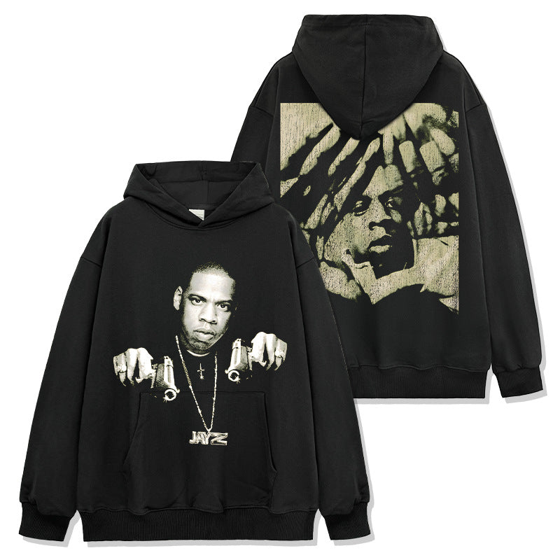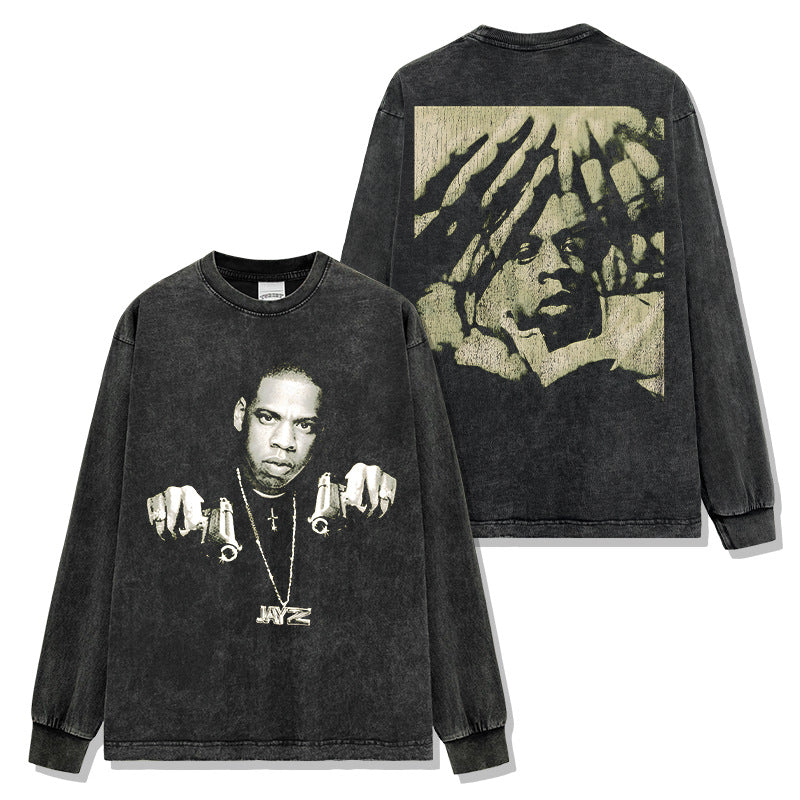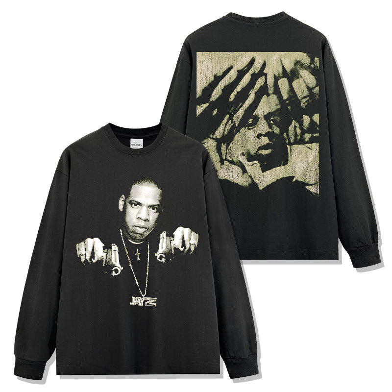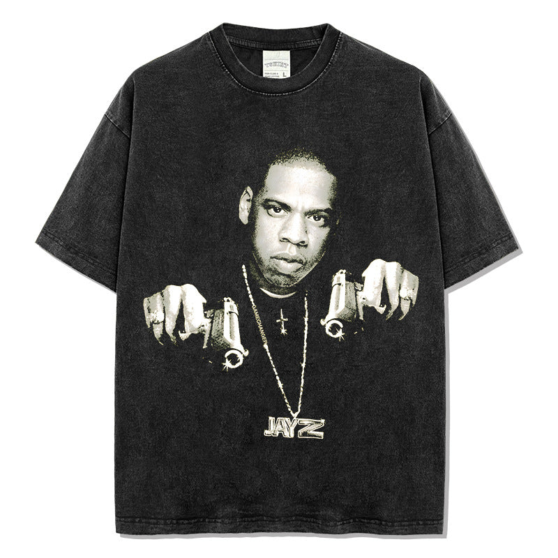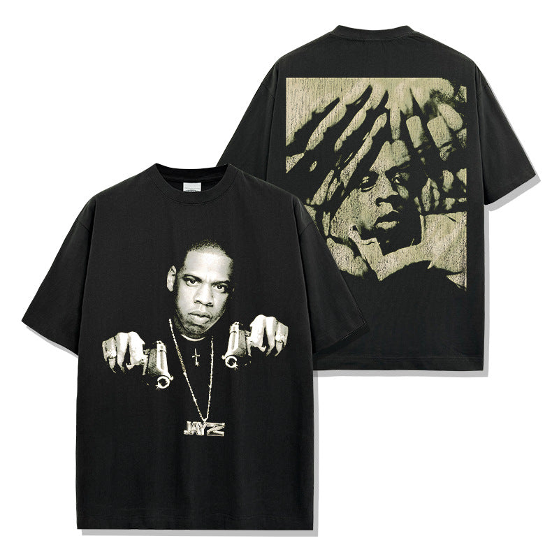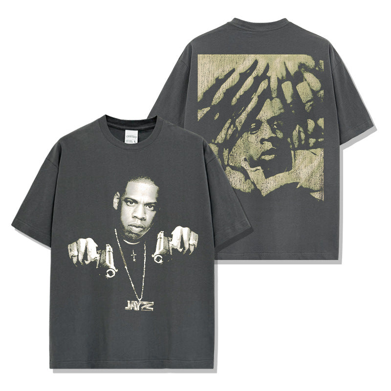 Vintage hip-hop rap Jay-Z printed short-sleeved T-shirt washed heavy cotton small neckline top trendy