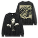 Retro-inspired graffiti letter prints and patch decoration at hem.